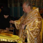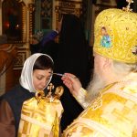 Во время утрени, по прочтении Святого Евангелия, епископ Митрофан совершил помазание духовенства и верующих, собравшихся в храме накануне праздника, освященным елеем.