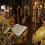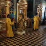 Его Преосвященству сослужили: иеромонах Амвросий (Макаров), врио. секретаря Епархиального Управления; клирик собора и руководитель епархиального отдела религиозного образования и катехизации иерей Александр Федин; иеродиакон Иннокентий (Ганин); диакон Владимир Эрекайкин, диакон Илия Кошолкин.