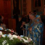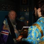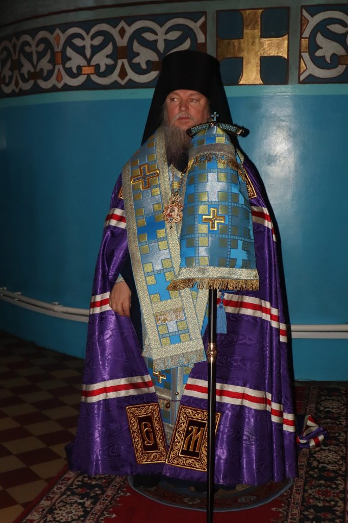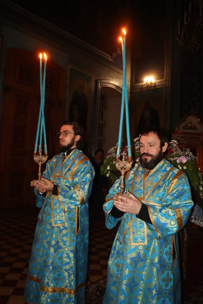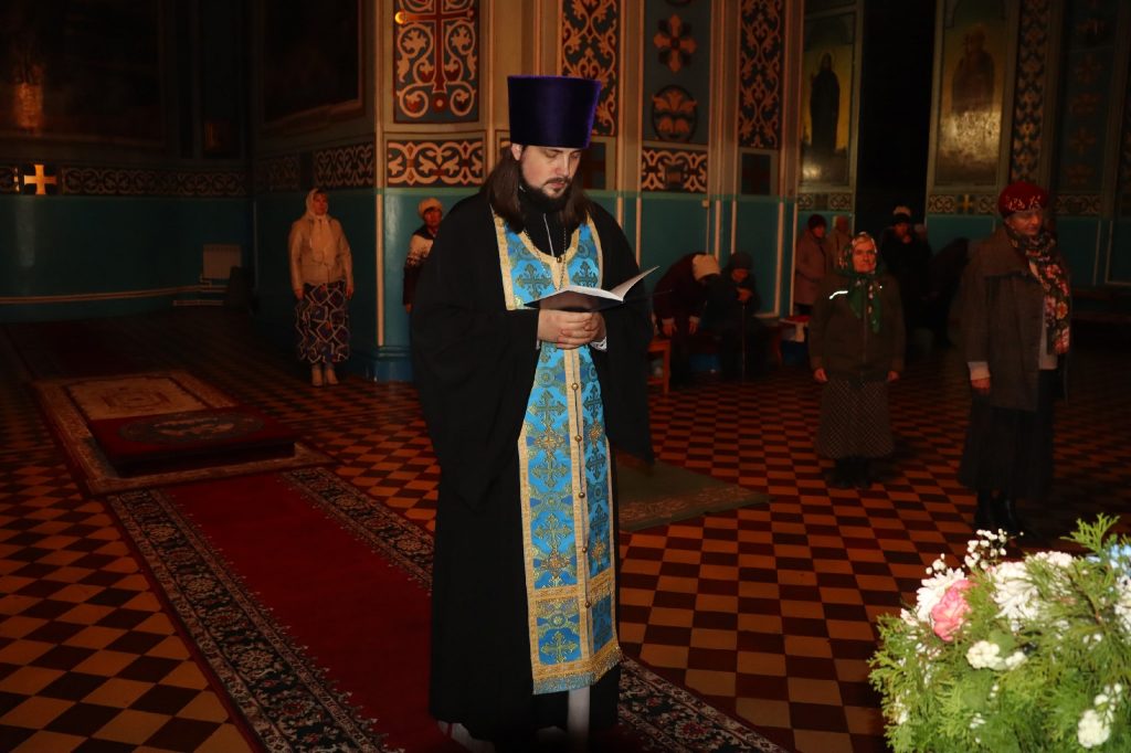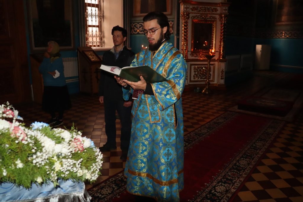 Его Преосвященству сослужили: ключарь кафедрального собора Архангела Михаила г.Сердобска, епархиальный древлехранитель иерей Роман Турецких; клирик собора и руководитель епархиального отдела религиозного образования и катехизации иерей Александр Федин; диакон Владимир Эрекайкин.