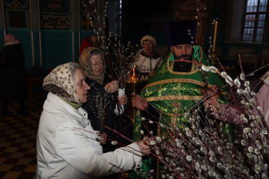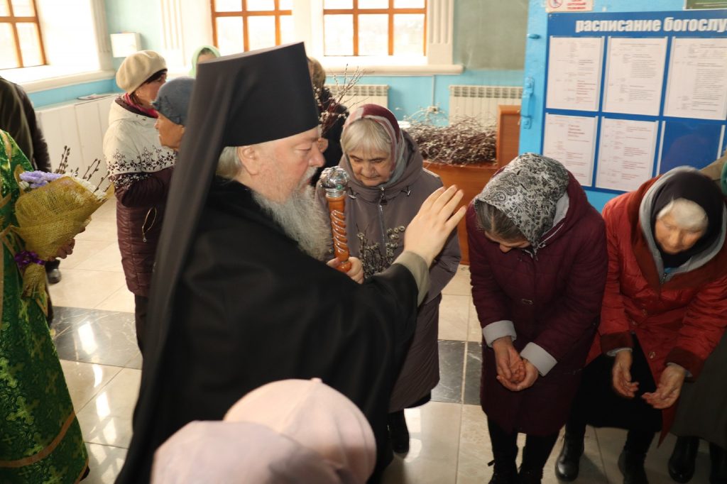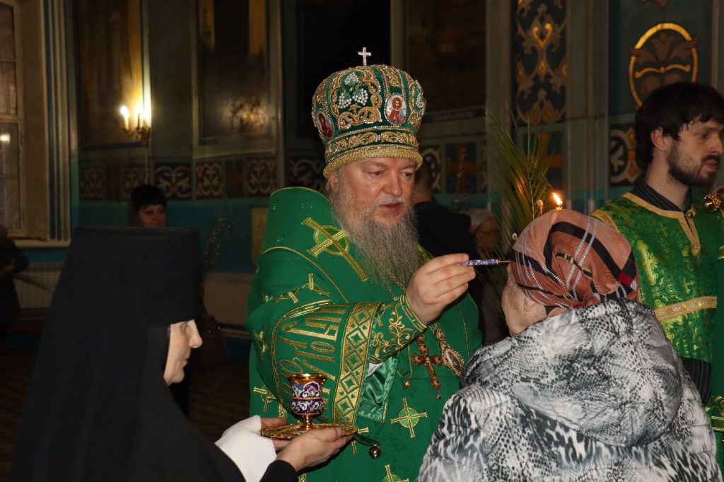 Во время утрени, по прочтении Святого Евангелия, глава Сердобской епархии совершил помазание освященным елеем верующих, собравшихся в храме накануне праздника, после чего им были подарены веточки вербы.
