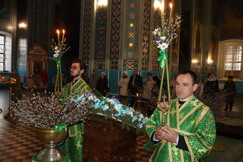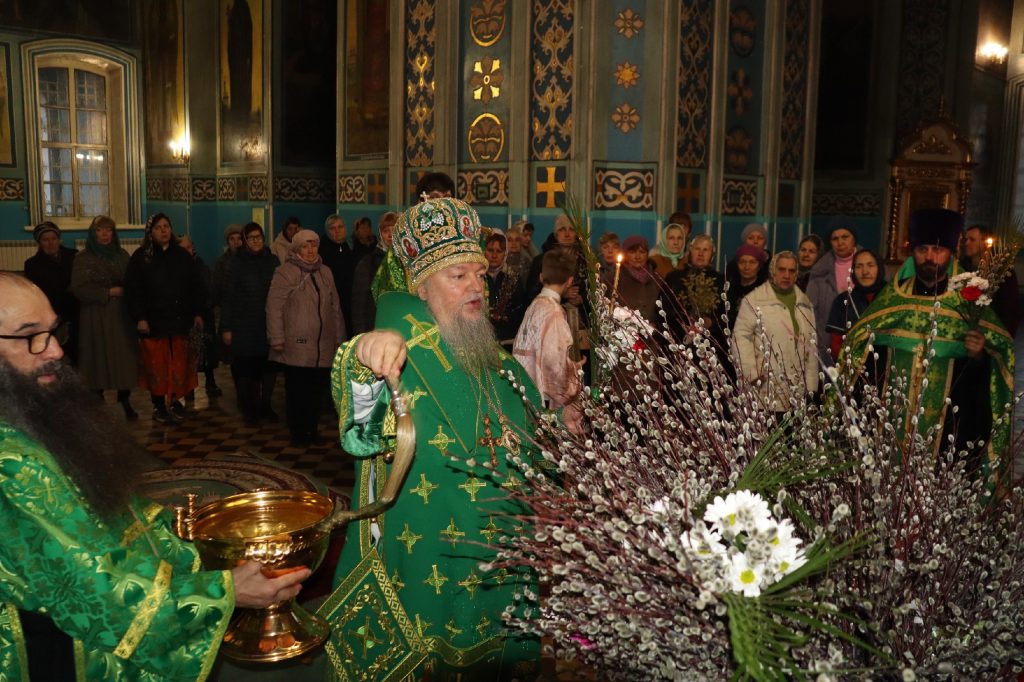 После прочтения Святого Евангелия епископ Сердобский и Спасский Митрофан совершил традиционное освящение вербных ветвей (ваий).