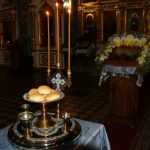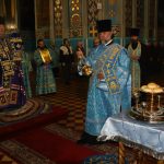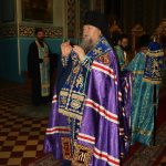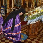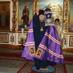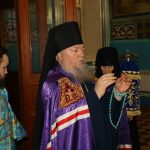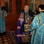 Во время вечерни епископ Митрофан совершил литию с освящением хлебов, пшеницы, вина и елея.