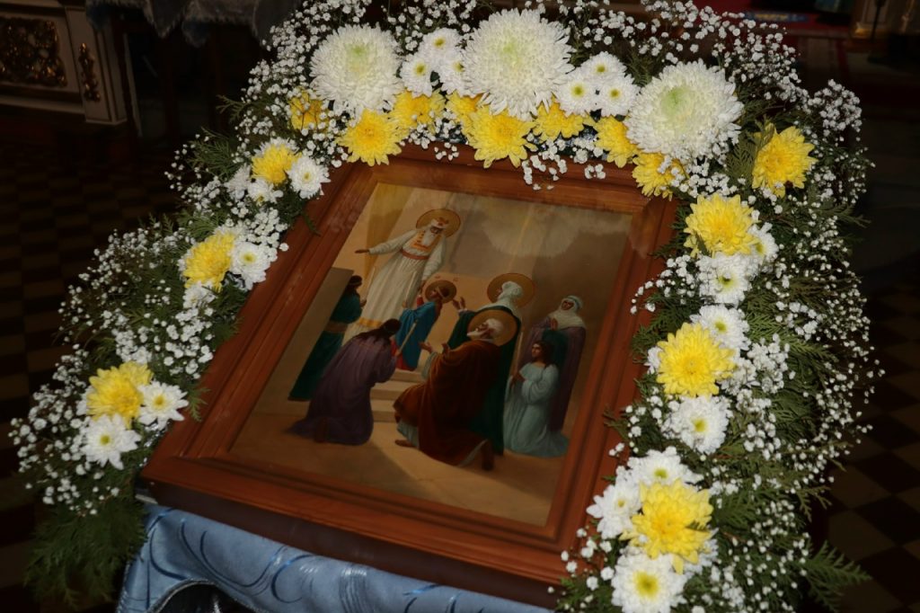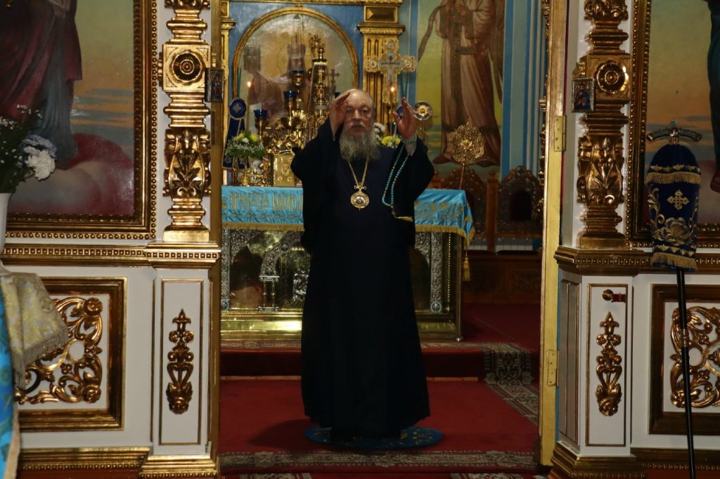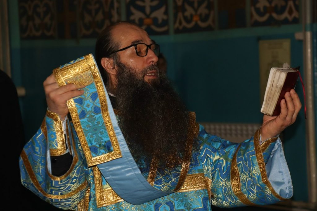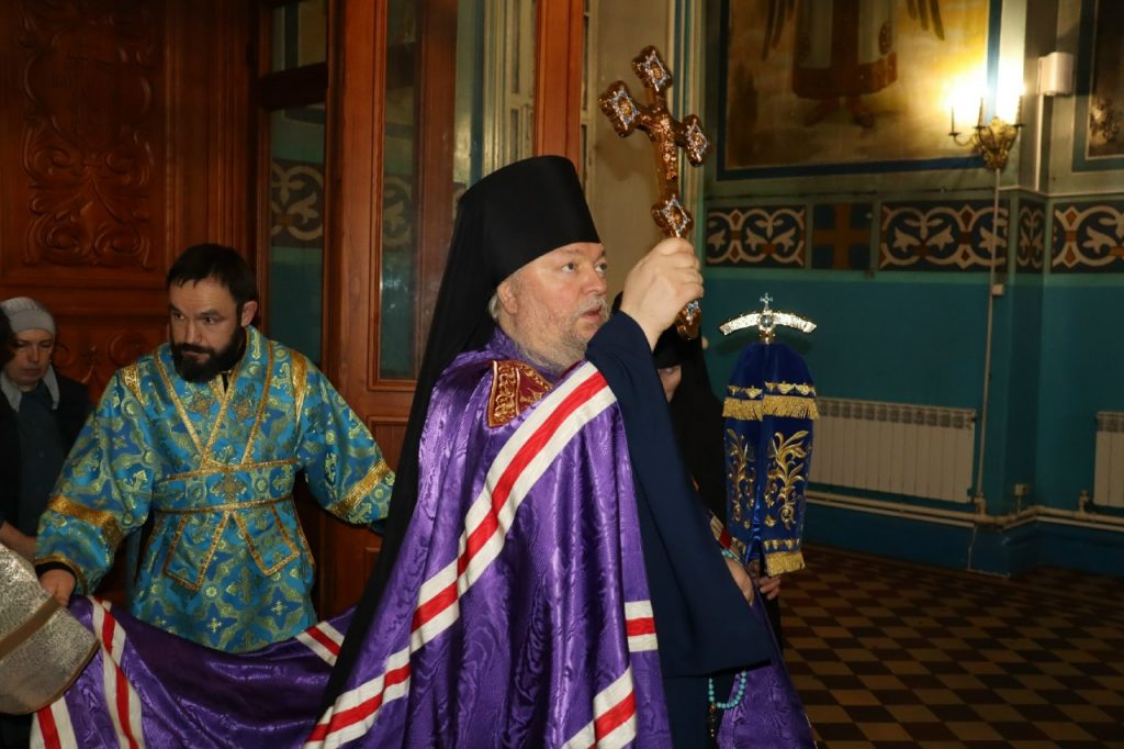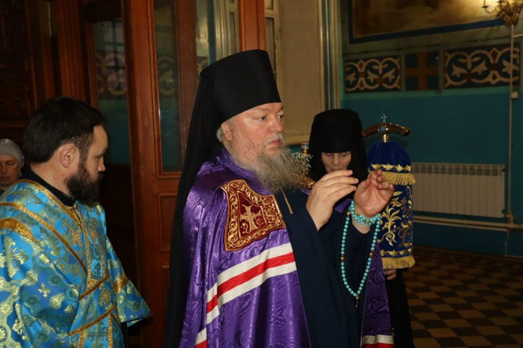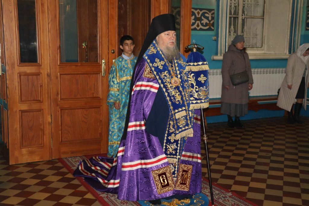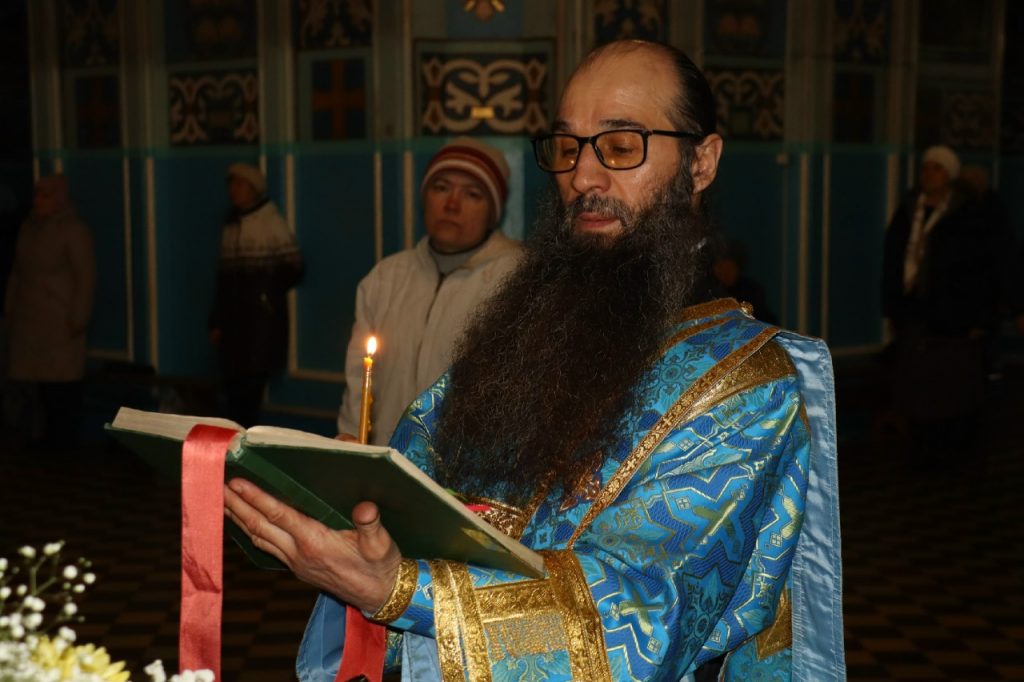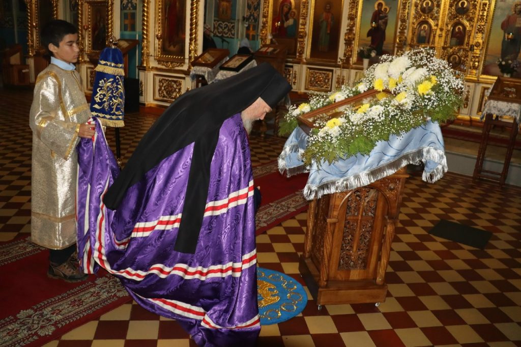 Во время вечерни епископ Митрофан совершил литию с освящением хлебов, пшеницы, вина и елея.