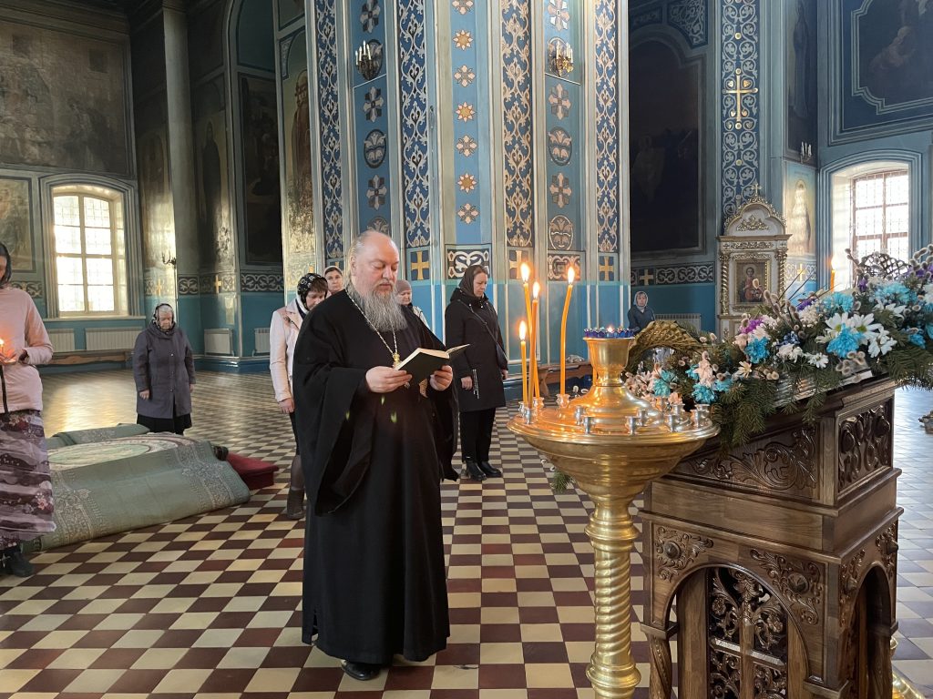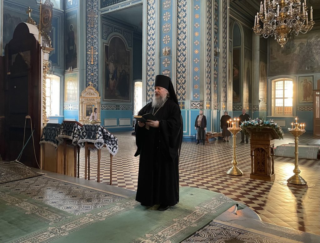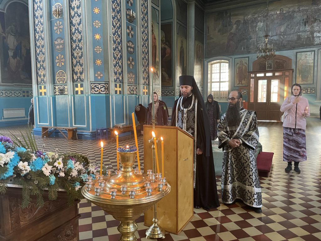 Вечером 15 апреля 2025 года, в канун среды* Страстной седмицы, епископ Сердобский и Спасский Митрофан молился в кафедральном соборе Архангела Михаила г.Сердобска за уставным богослужением — утреней Великой Среды, которую совершил иеромонах Амвросий (Макаров), врио. секретаря Епархиального Управления, в сослужении иеродиакона Иннокентия (Ганина) и диакона Владимира Эрекайкина.