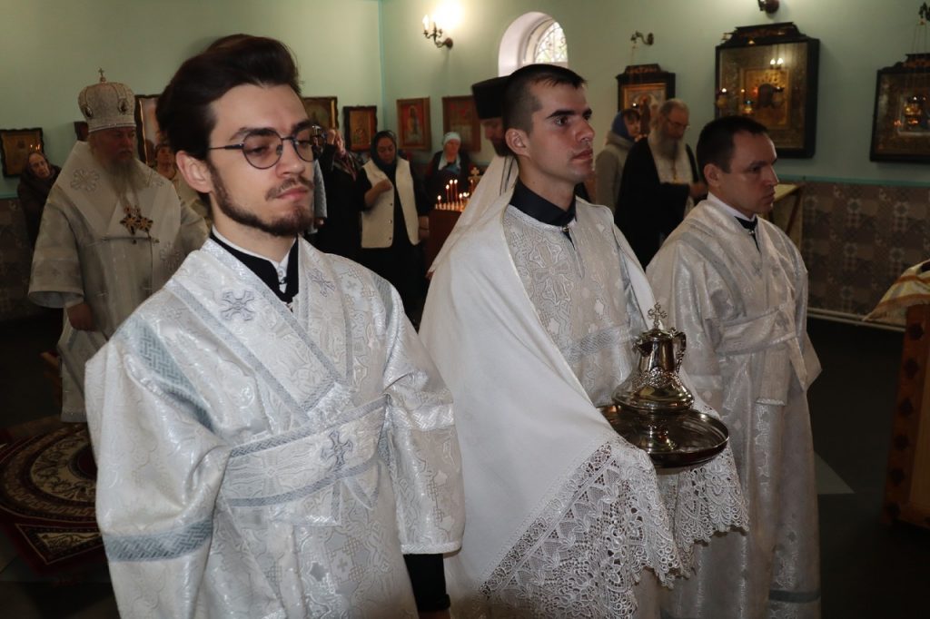 Его Преосвященству сослужили: иеромонах Амвросий (Макаров), врио. секретаря Епархиального Управления; благочинный монастырей Сердобской епархии, настоятель монастыря игумен Михей (Мигунов); клирик кафедрального собора Архангела Михаила г. Сердобска иеродиакон Иннокентий (Ганин).
