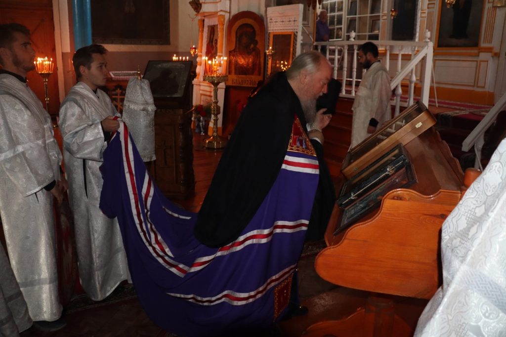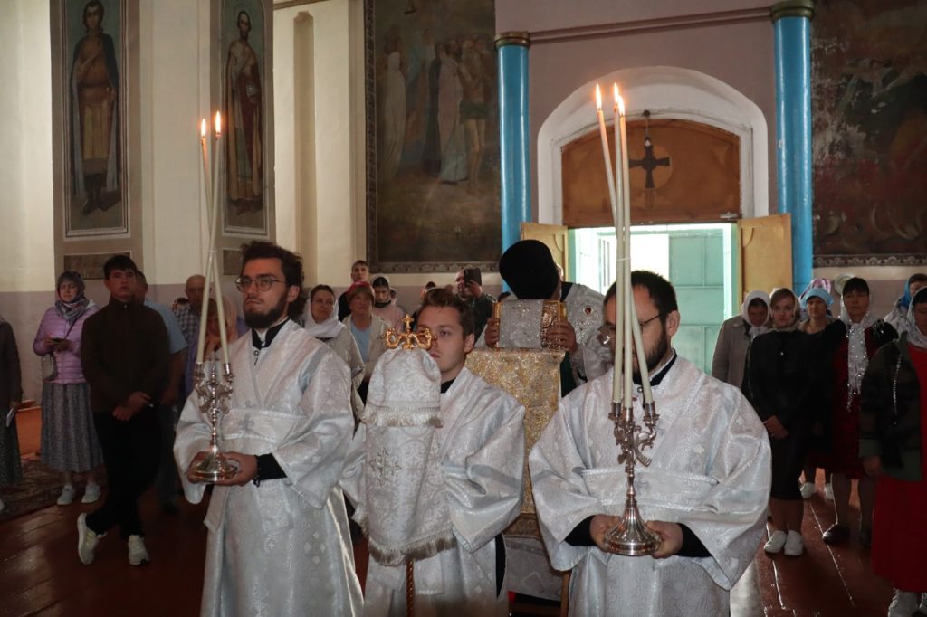 24 августа 2025 года, в Неделю 11-ю по Пятидесятнице, епископ Сердобский и Спасский Митрофан совершил Божественную литургию в Казанской церкви с.Липовка Башмаковского района.