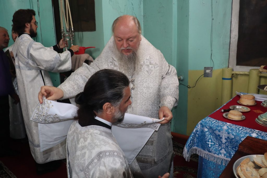 Его Преосвященству сослужили: иеромонах Амвросий (Макаров), врио. секретаря Епархиального Управления; настоятель храма иерей Сергий Ребнев; клирик кафедрального собора Архангела Михаила г.Сердобска иеродиакон Иннокентий (Ганин).