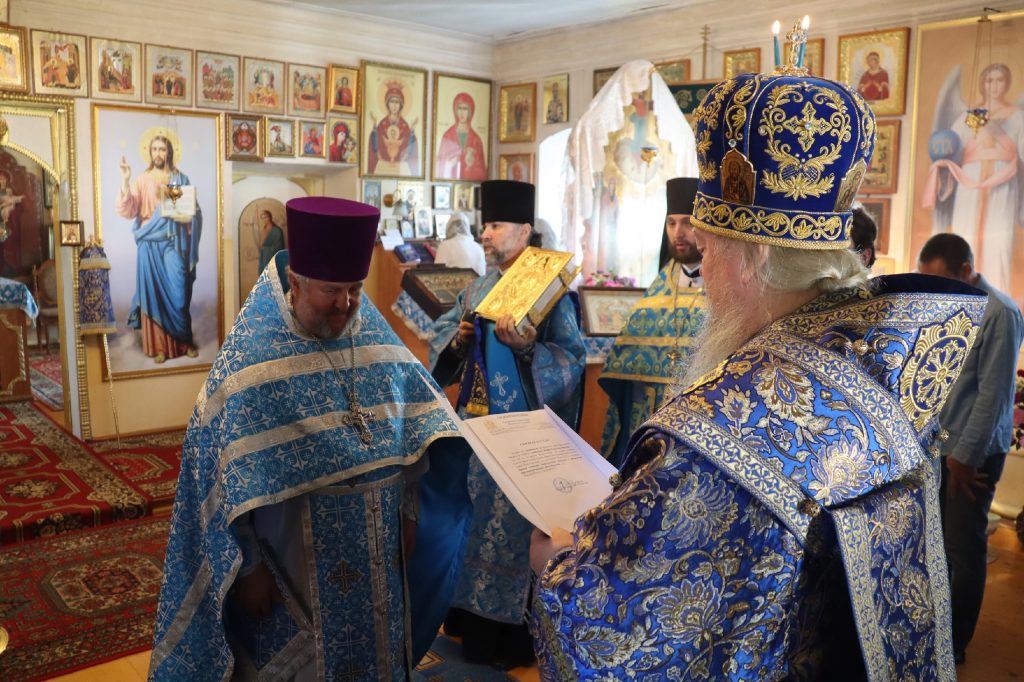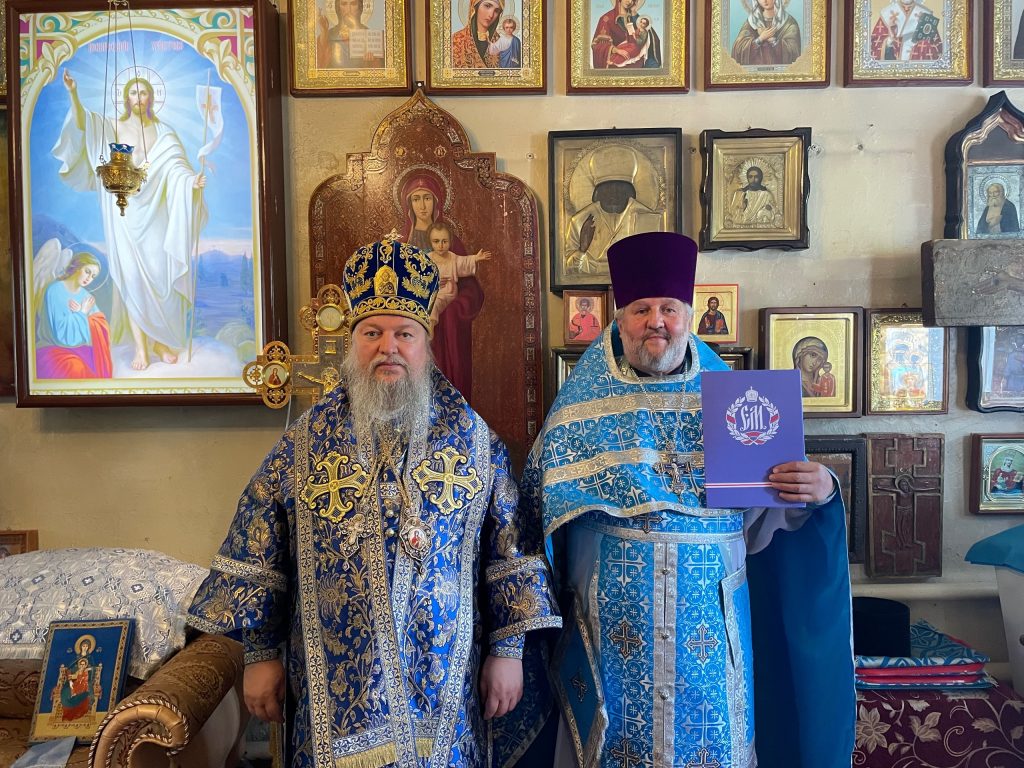 По окончании богослужения настоятель молитвенного дома протоиерей Петр Никулин поблагодарил Владыку Митрофана за визит и совместную молитву.