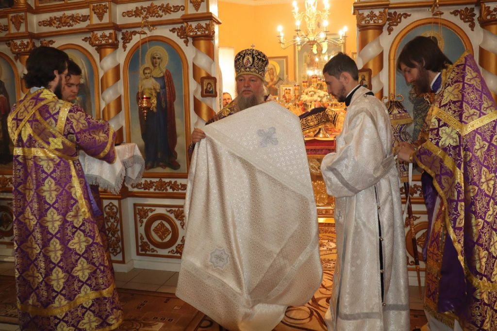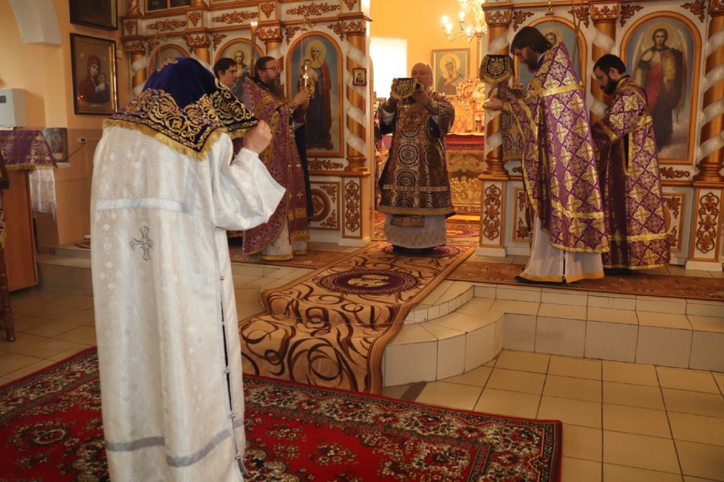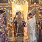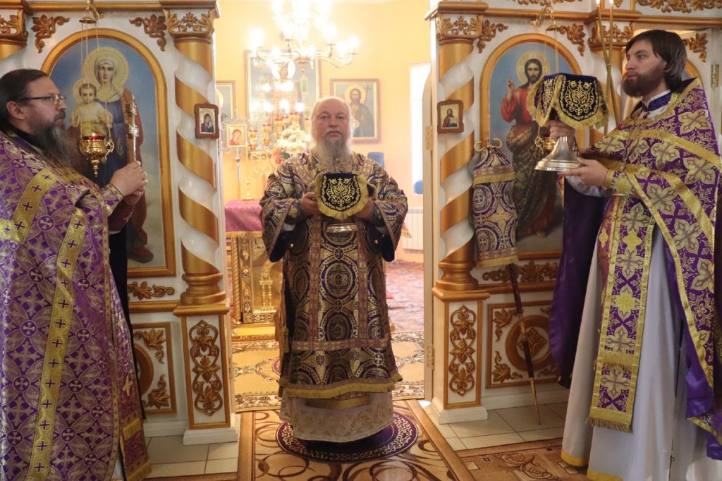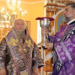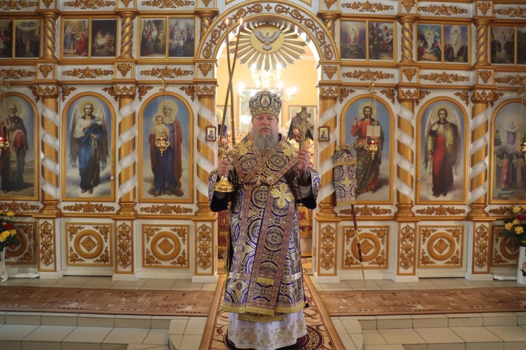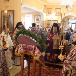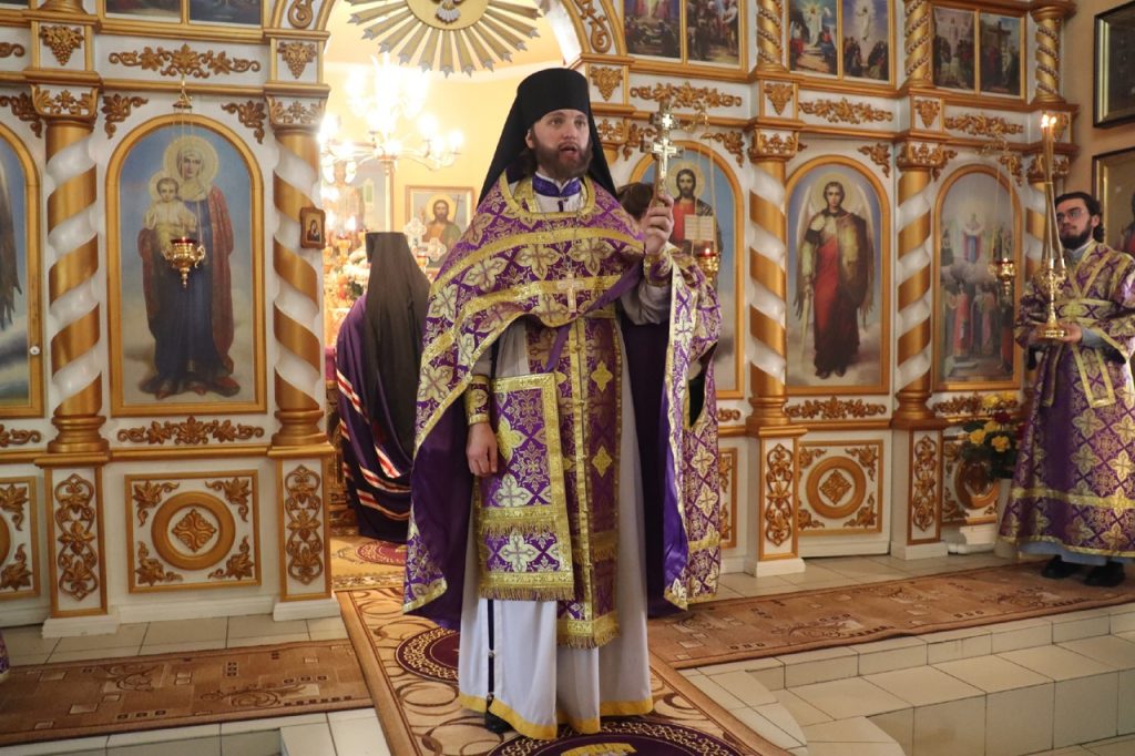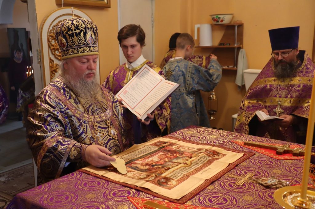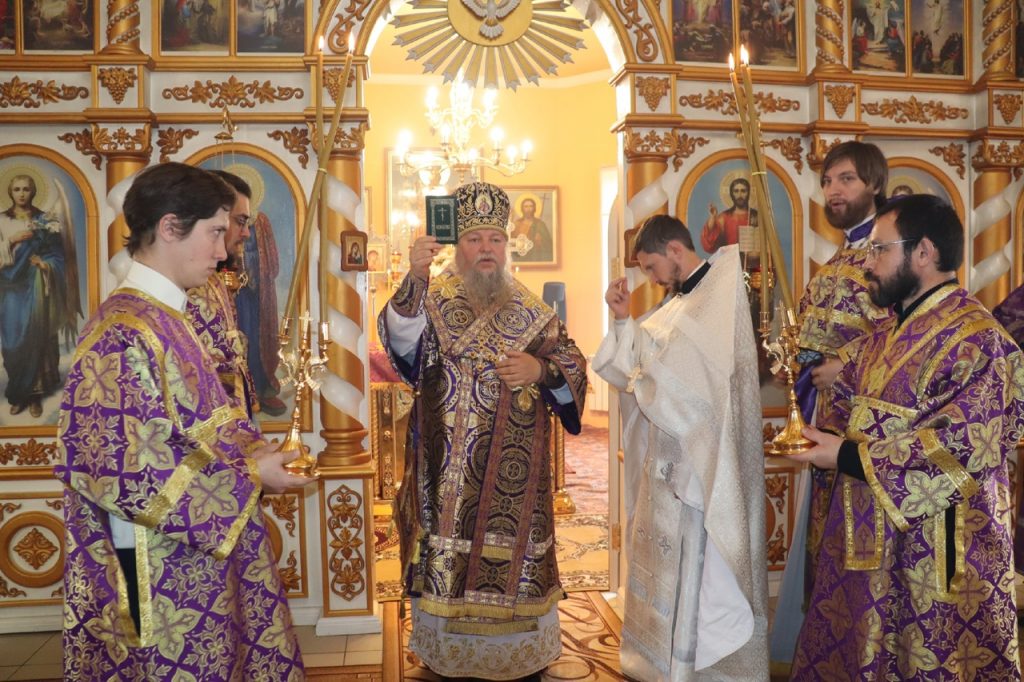 По отпусте литургии было совершено славление и поклонение Честному и Животворящему Кресту Господню, а также провозглашено многолетие.