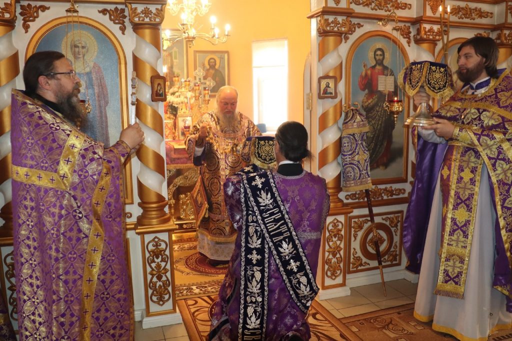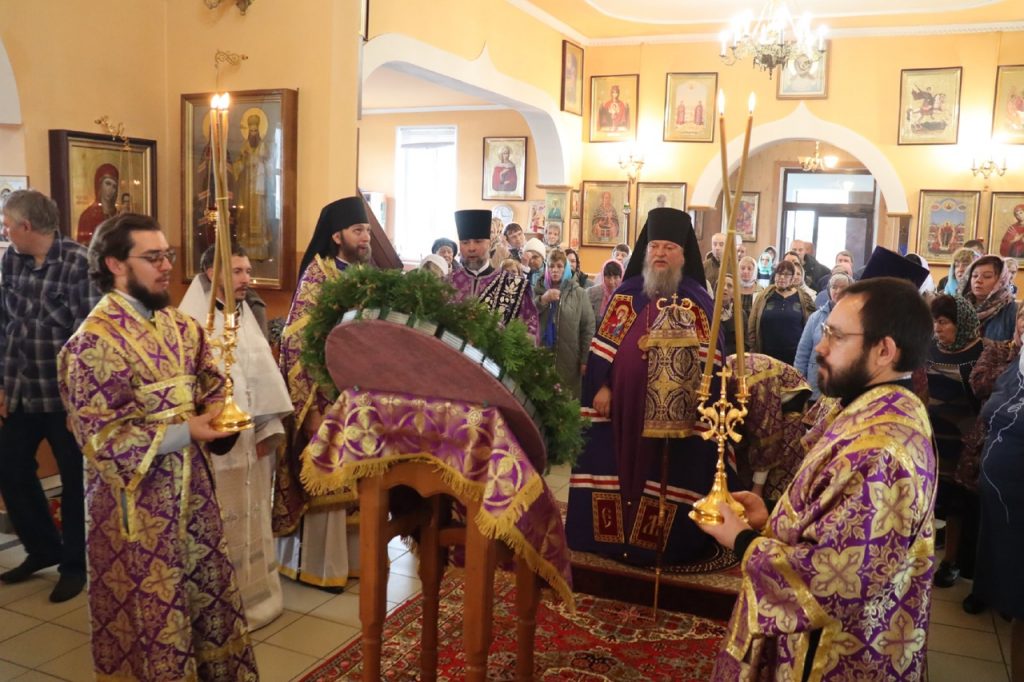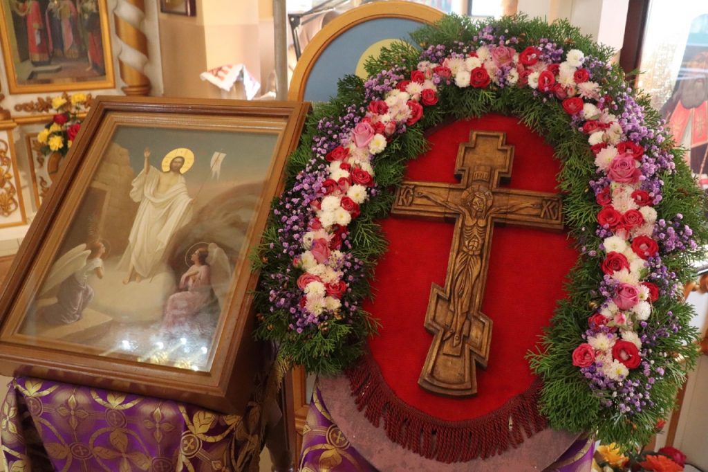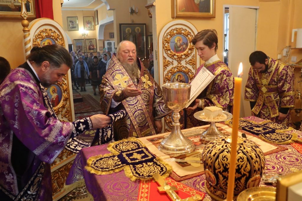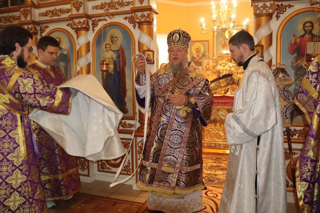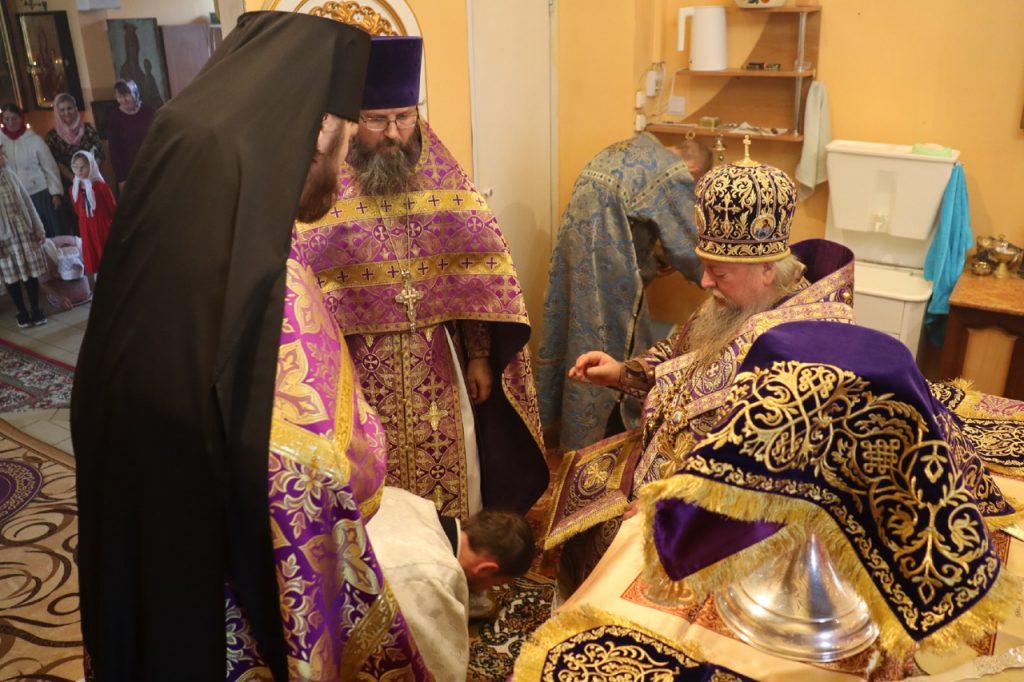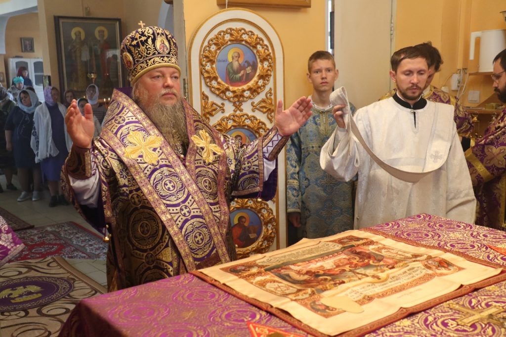 По отпусте литургии было совершено славление и поклонение Честному и Животворящему Кресту Господню, а также провозглашено многолетие.