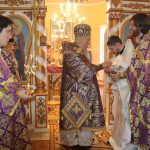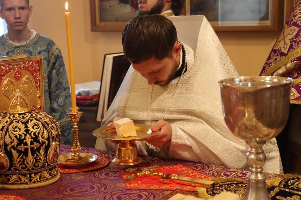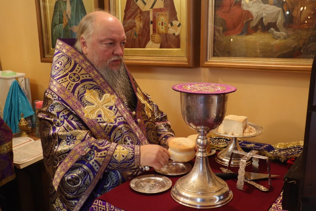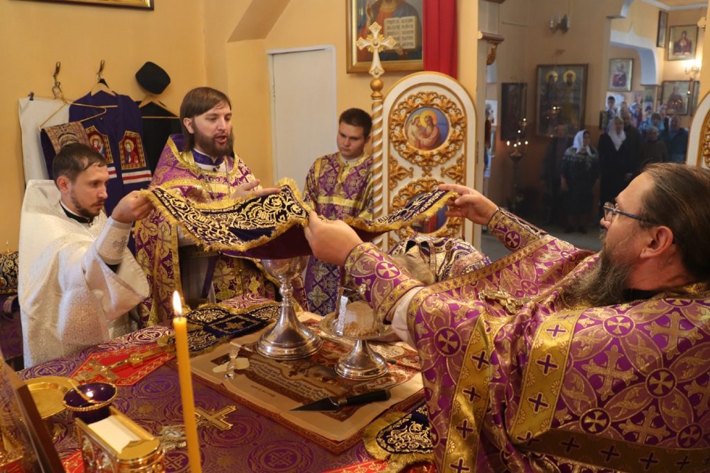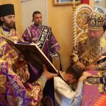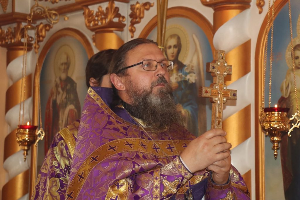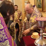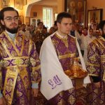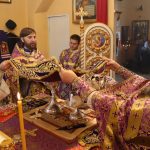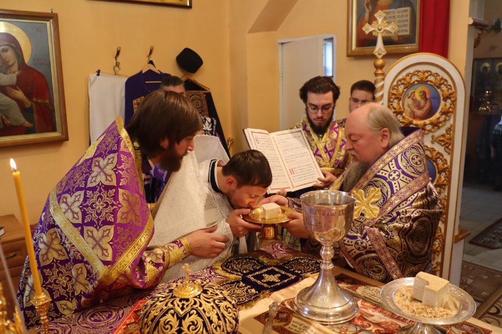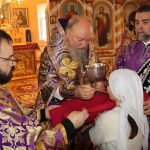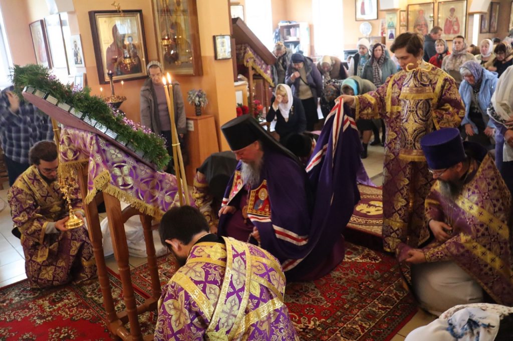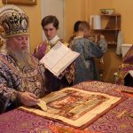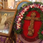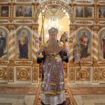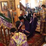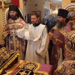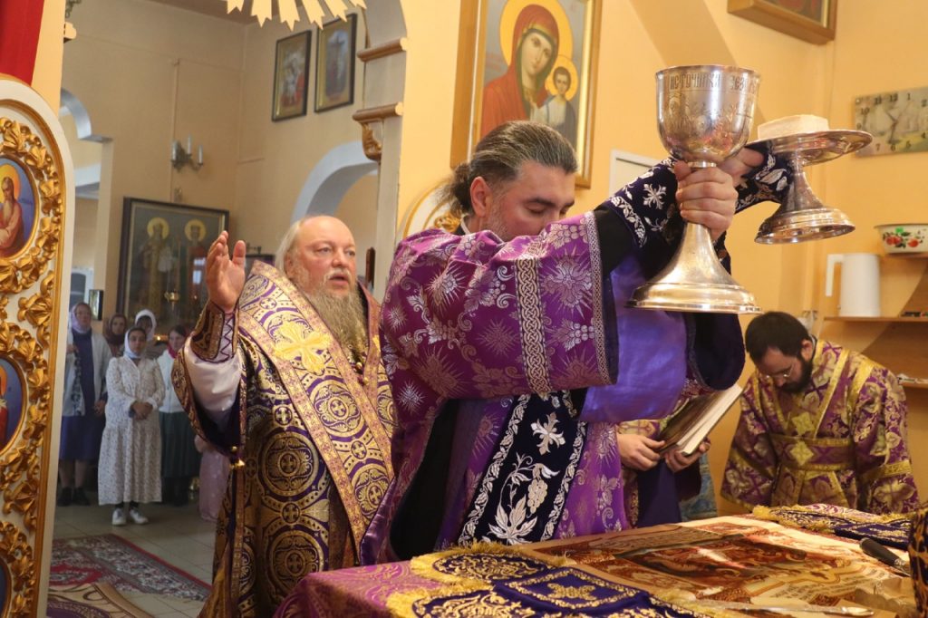 По отпусте литургии было совершено славление и поклонение Честному и Животворящему Кресту Господню, а также провозглашено многолетие.