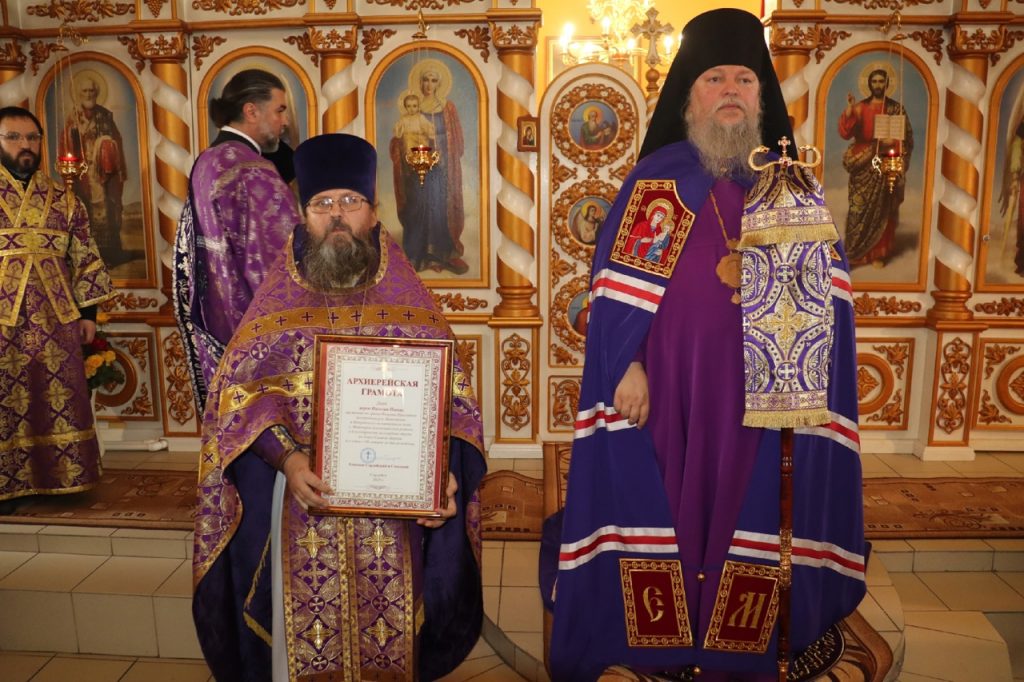 Слова благодарности за богослужение Правящему архипастырю выразил также настоятель храма иерей Николай Попов.