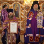 Затем состоялось вручение церковных наград. В благодарность за усердные труды на благо Святой Церкви и в связи с 50-летием со дня рождения настоятель церкви Покрова Пресвятой Богородицы р.п.Башмаково иерей Николай Попов был удостоен Архиерейской грамоты.