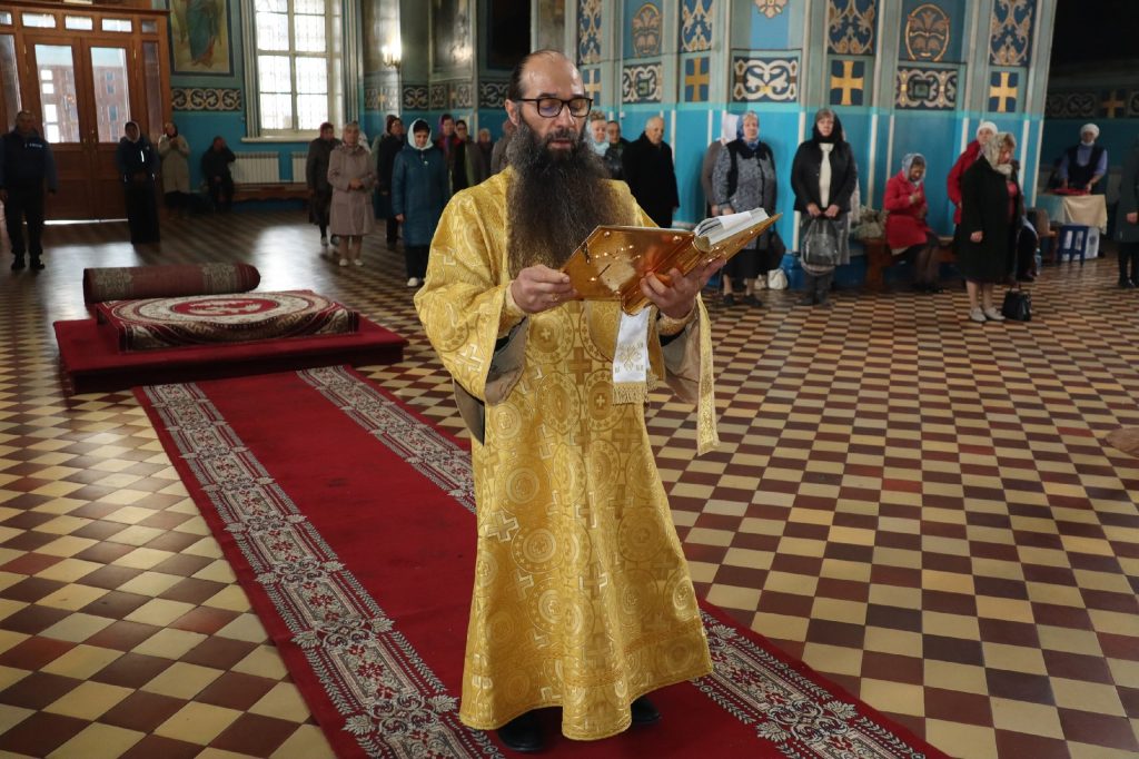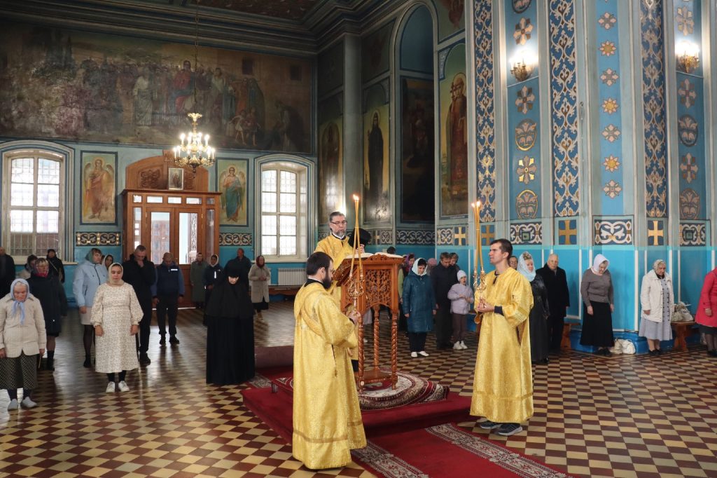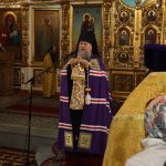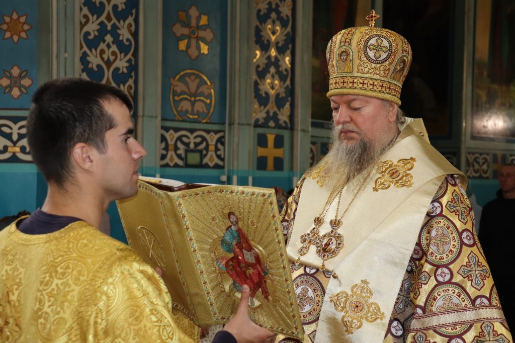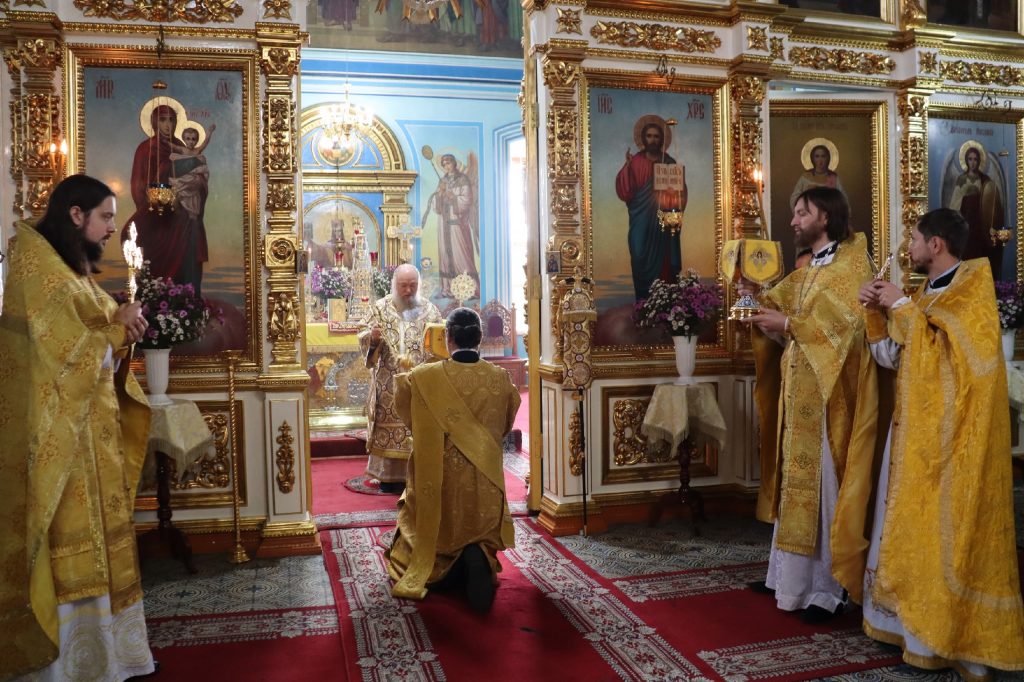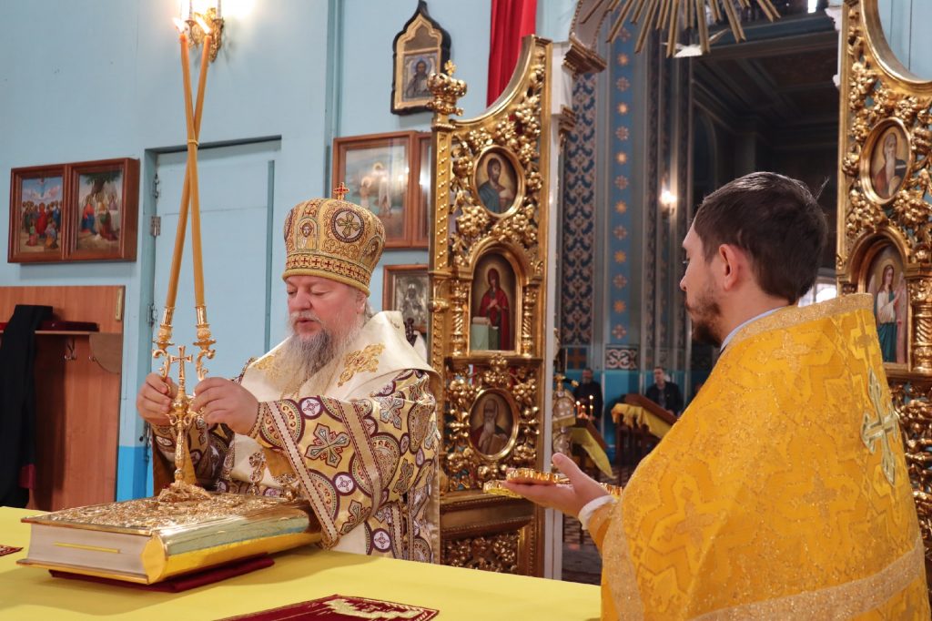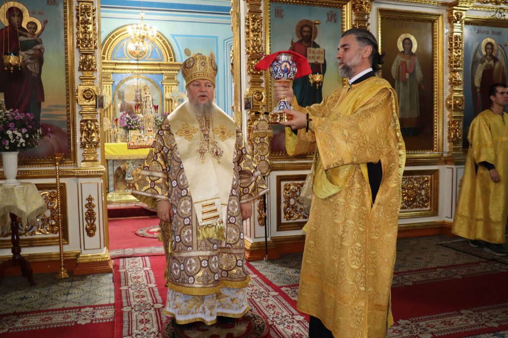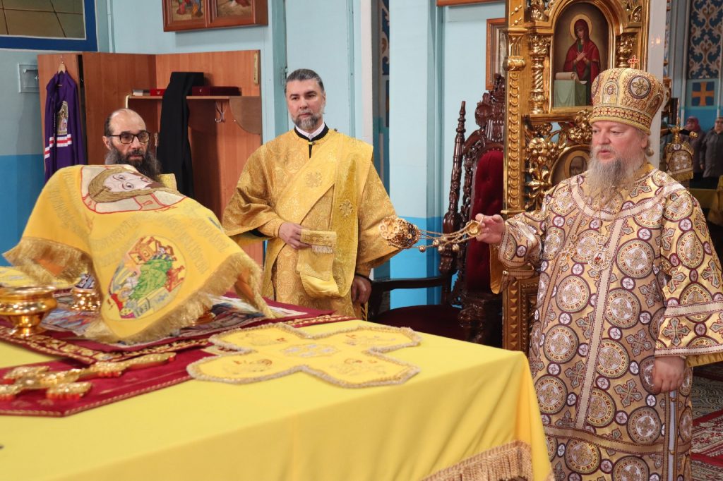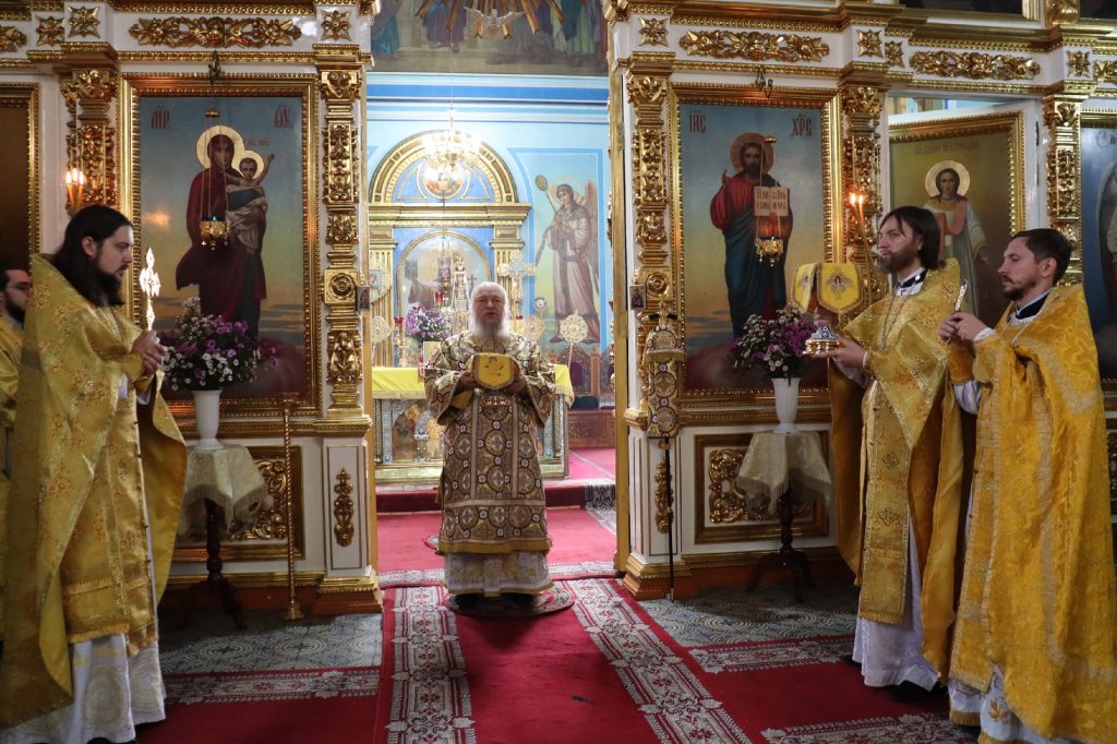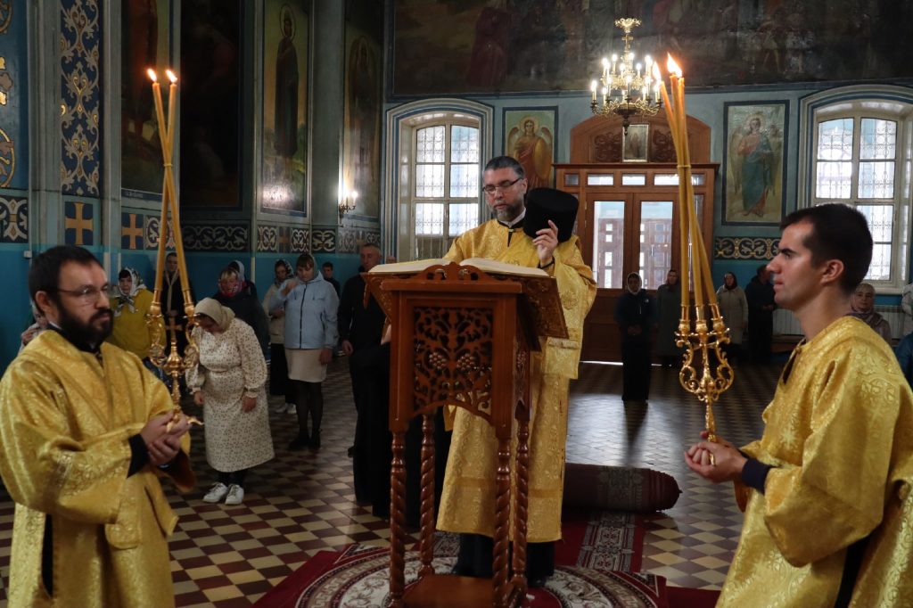 Его Преосвященству сослужили: иеромонах Амвросий (Макаров), врио. секретаря Епархиального Управления; клирик собора и руководитель епархиального отдела религиозного образования и катехизации иерей Александр Федин; иерей Михаил Клопов; иеродиакон Иннокентий (Ганин), диакон Владимир Эрекайкин.