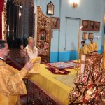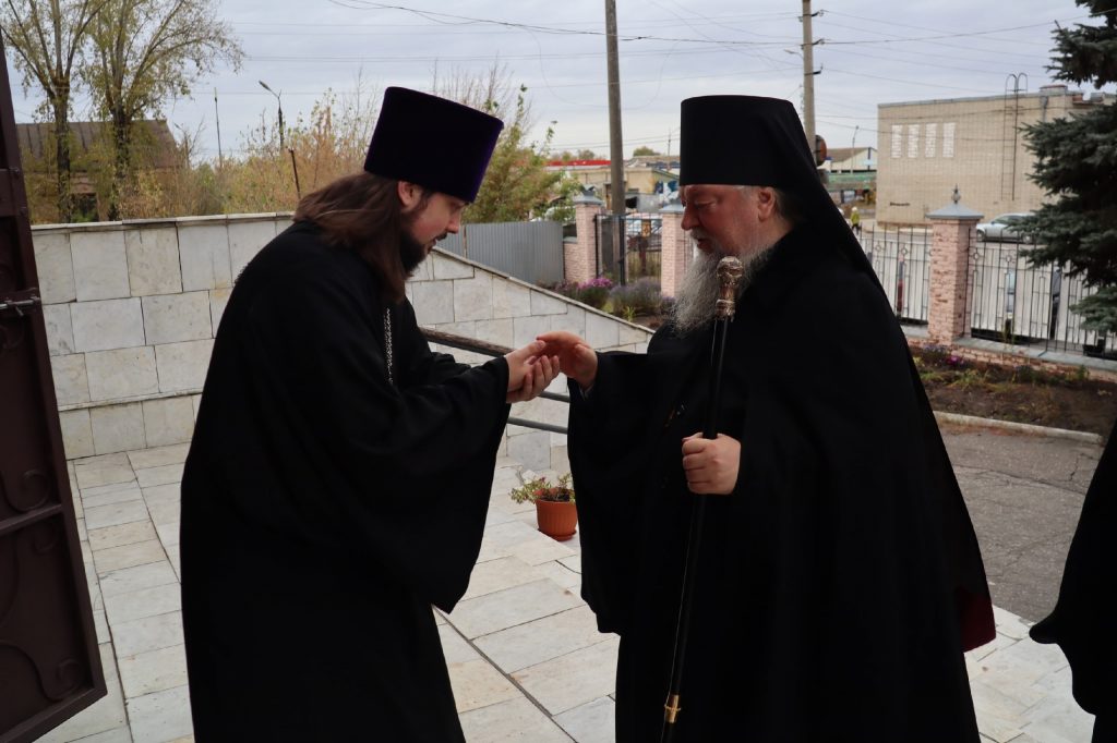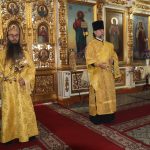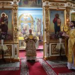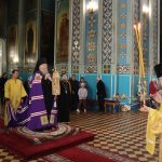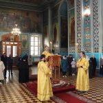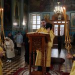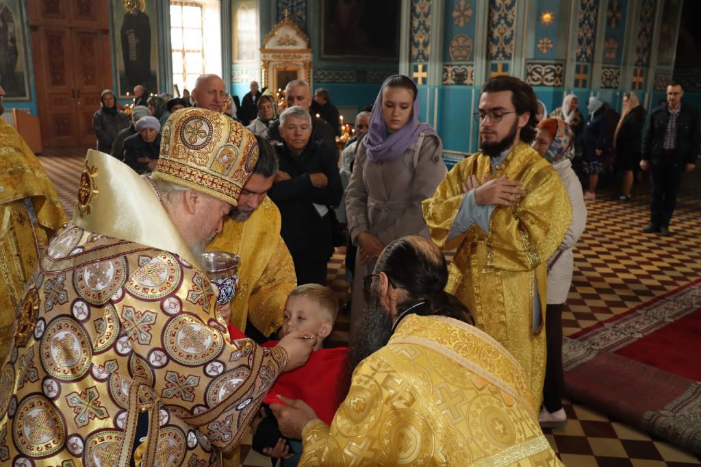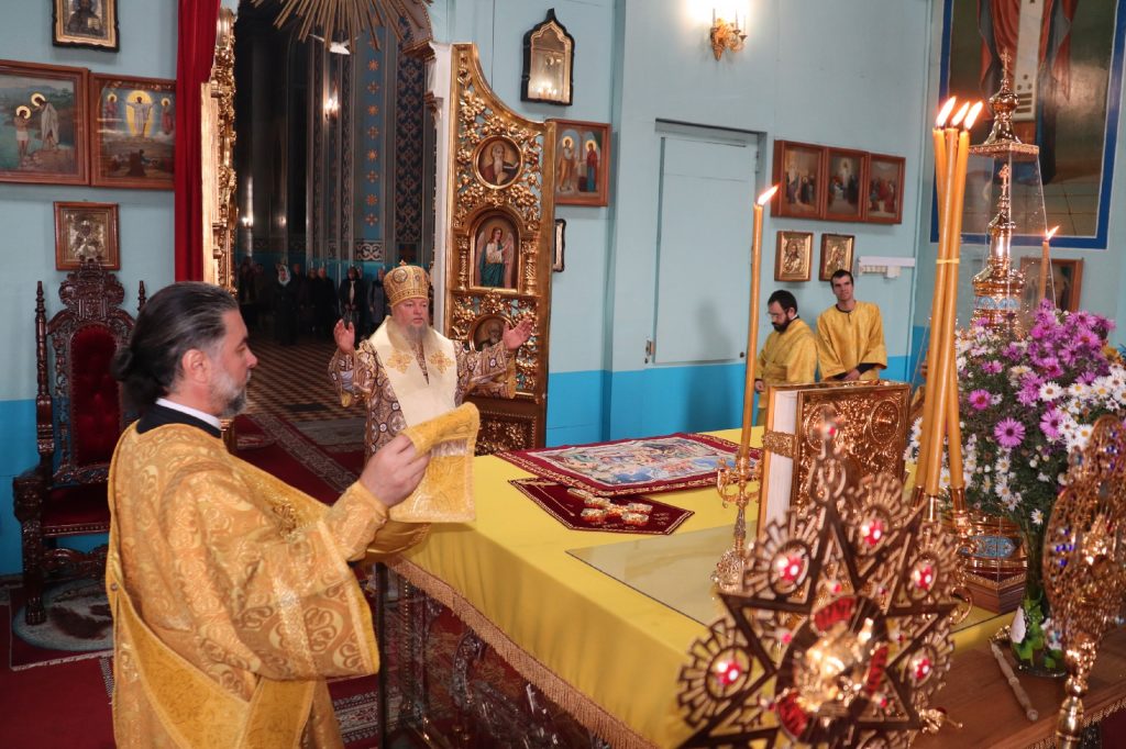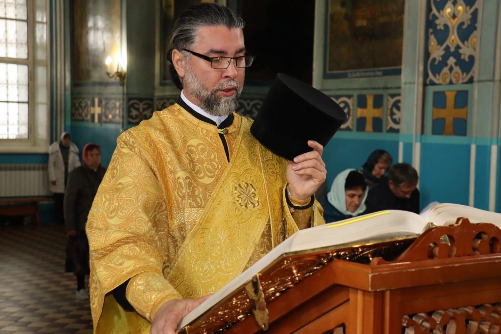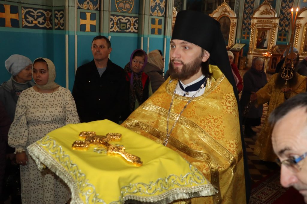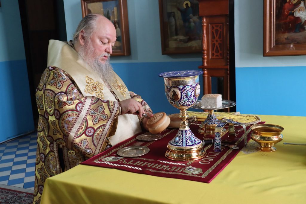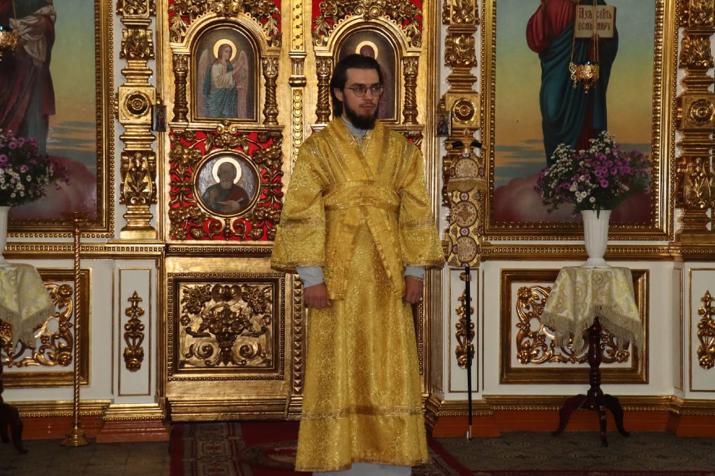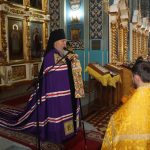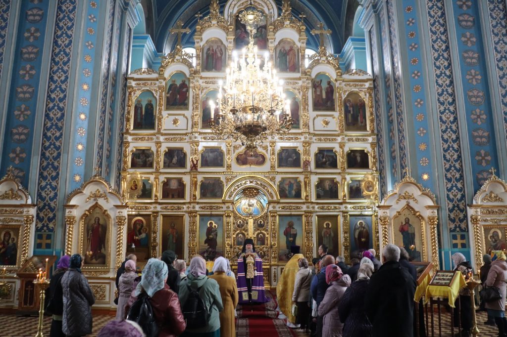 Его Преосвященству сослужили: иеромонах Амвросий (Макаров), врио. секретаря Епархиального Управления; клирик собора и руководитель епархиального отдела религиозного образования и катехизации иерей Александр Федин; иерей Михаил Клопов; иеродиакон Иннокентий (Ганин), диакон Владимир Эрекайкин.