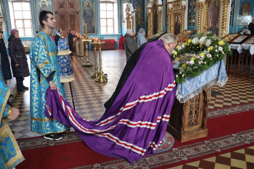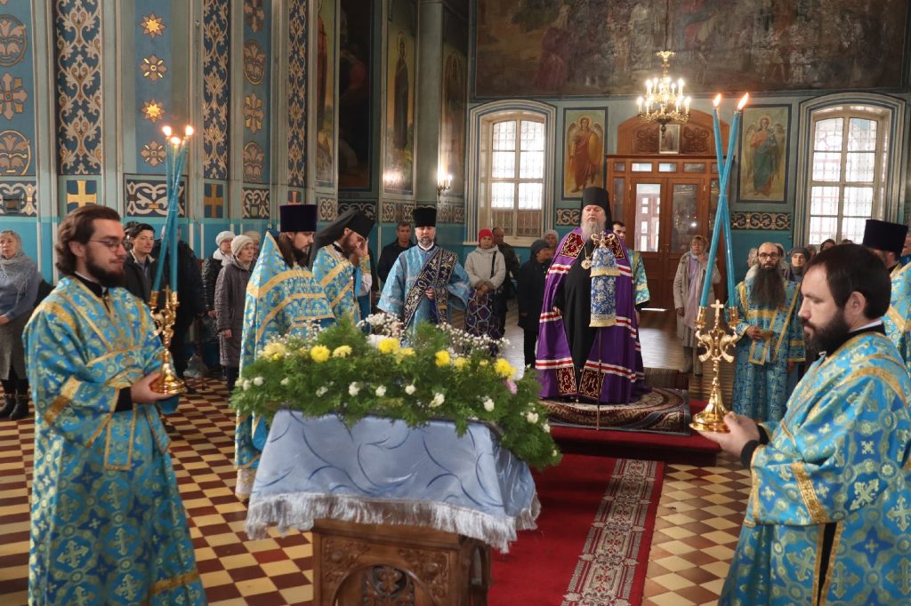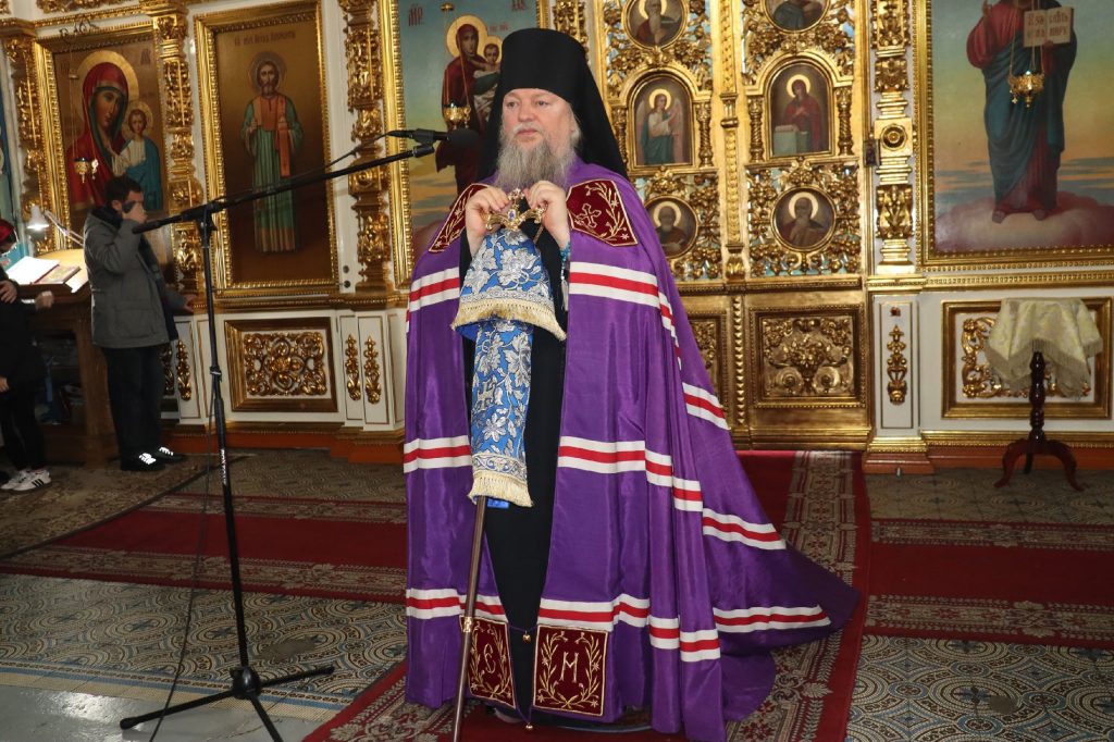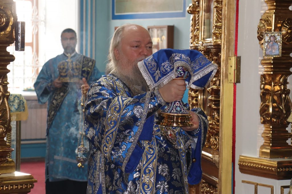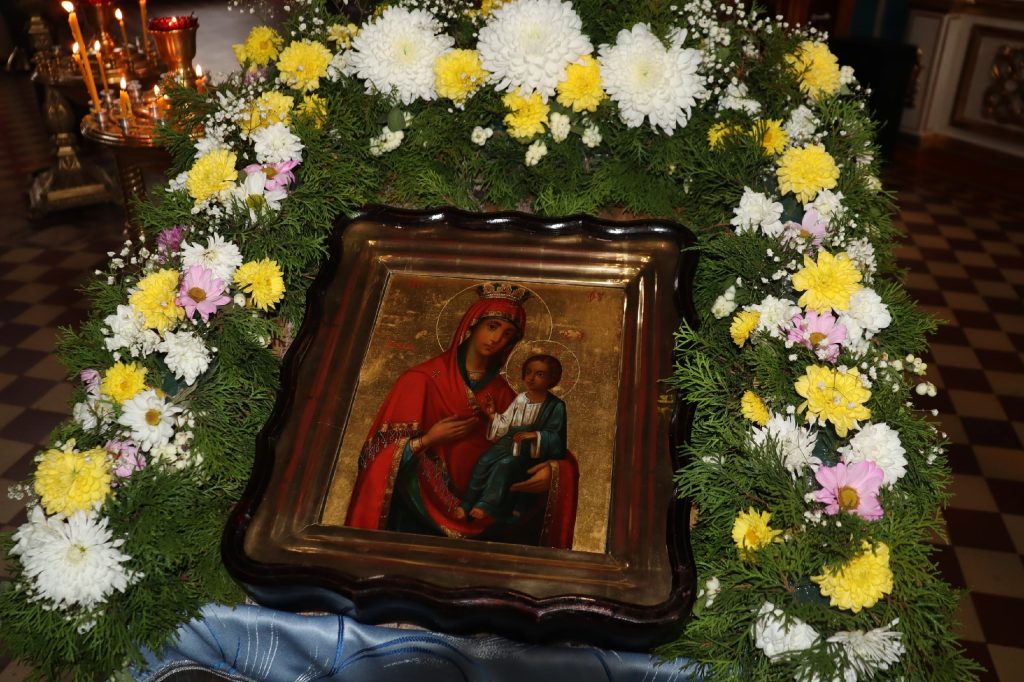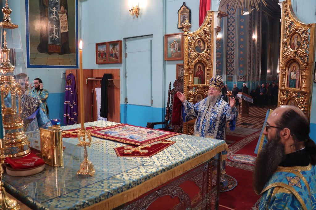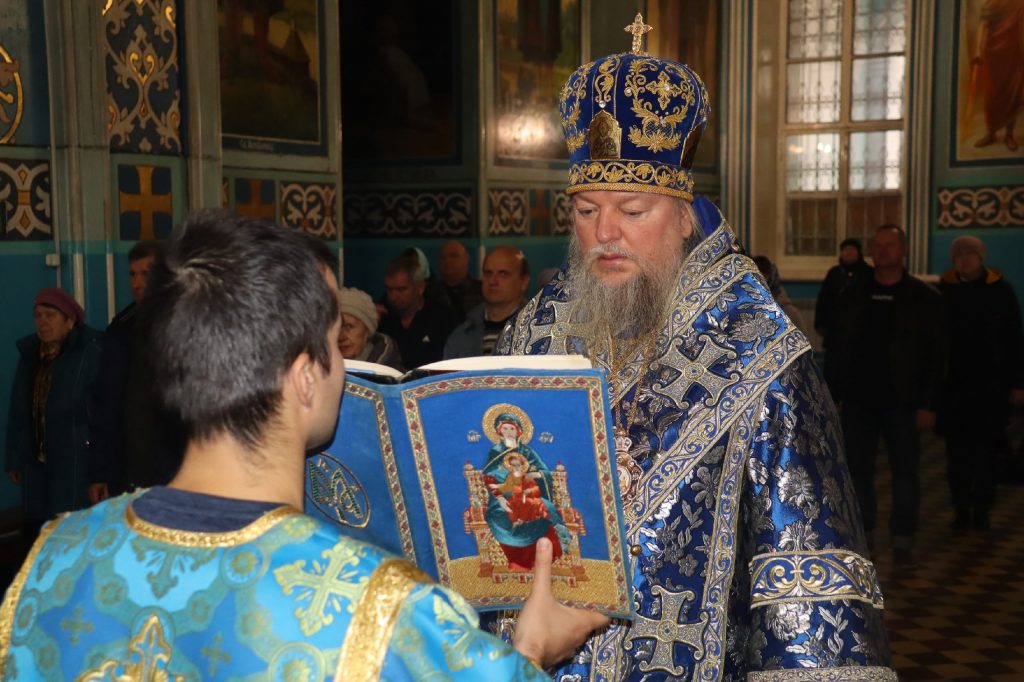 По окончании богослужения было совершено славление Пресвятой Богородице, епископ Митрофан прочитал молитву перед чтимым Иверским образом Божией Матери.