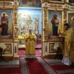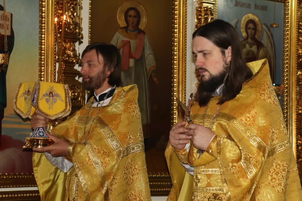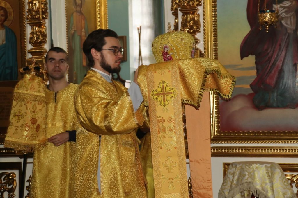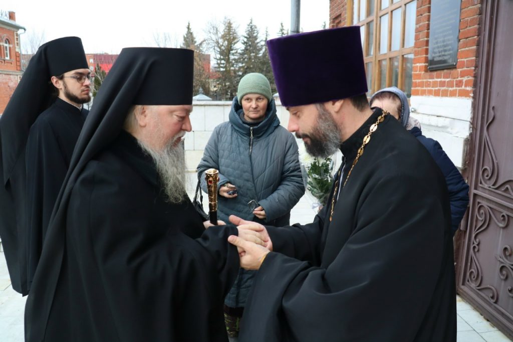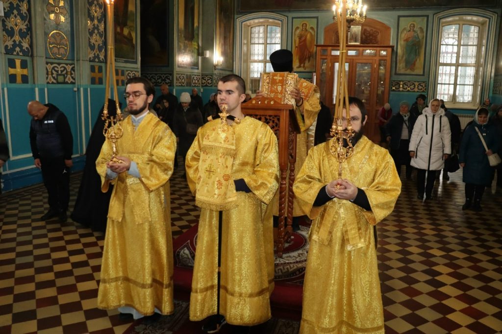 Его Преосвященству сослужили: иеромонах Амвросий (Макаров), врио. секретаря Епархиального Управления; ключарь кафедрального собора Архангела Михаила г.Сердобска, епархиальный древлехранитель иерей Роман Турецких; клирик собора и руководитель епархиального отдела религиозного образования и катехизации иерей Александр Федин; иеродиакон Иннокентий (Ганин), диакон Владимир Эрекайкин.