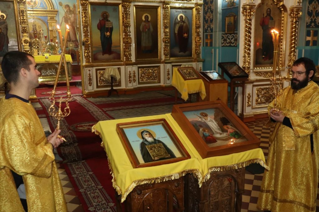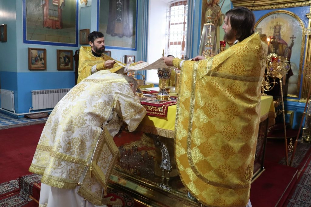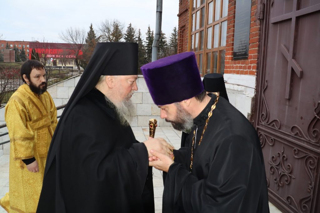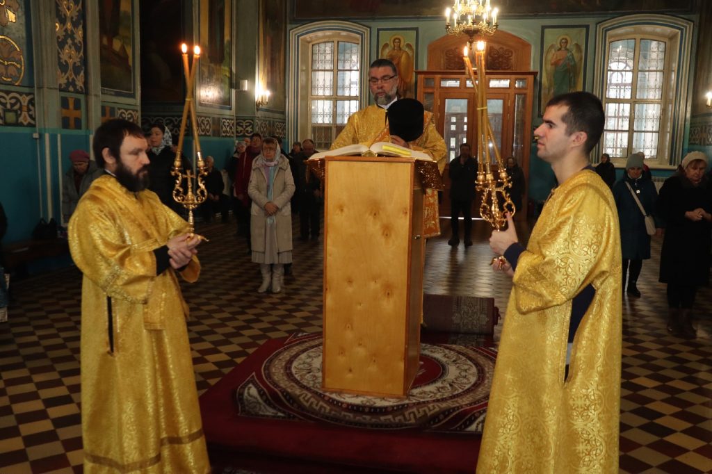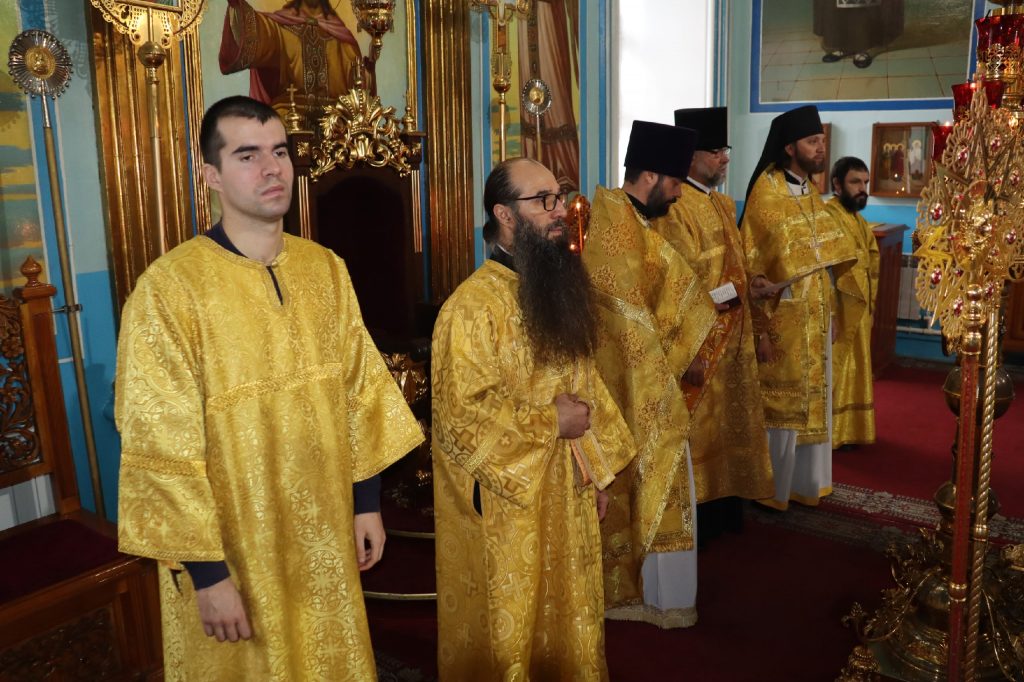 Его Преосвященству сослужили: иеромонах Амвросий (Макаров), врио. секретаря Епархиального Управления; ключарь кафедрального собора Архангела Михаила г.Сердобска, епархиальный древлехранитель иерей Роман Турецких; клирик собора и руководитель епархиального отдела религиозного образования и катехизации иерей Александр Федин; иеродиакон Иннокентий (Ганин), диакон Владимир Эрекайкин.