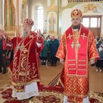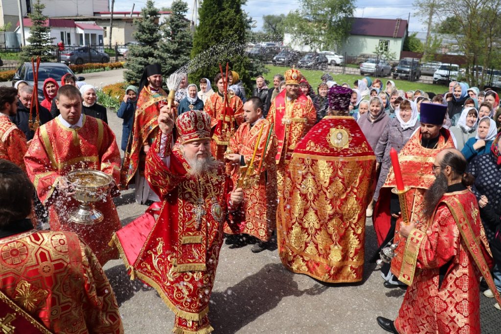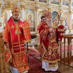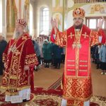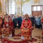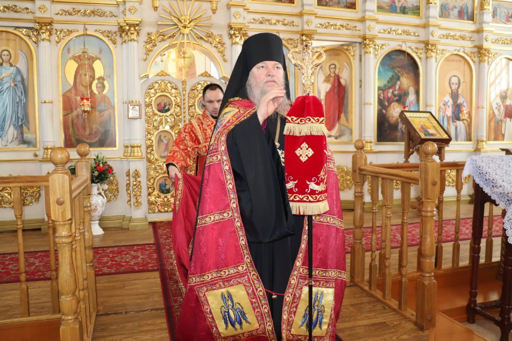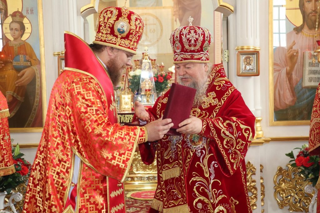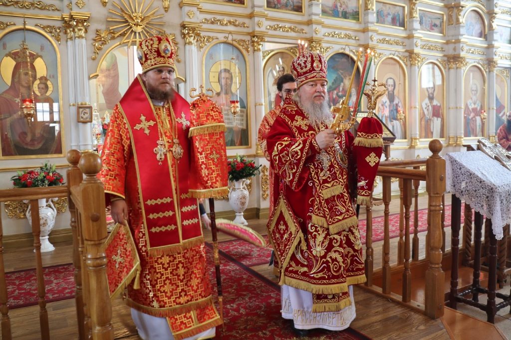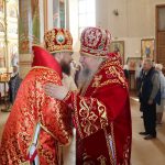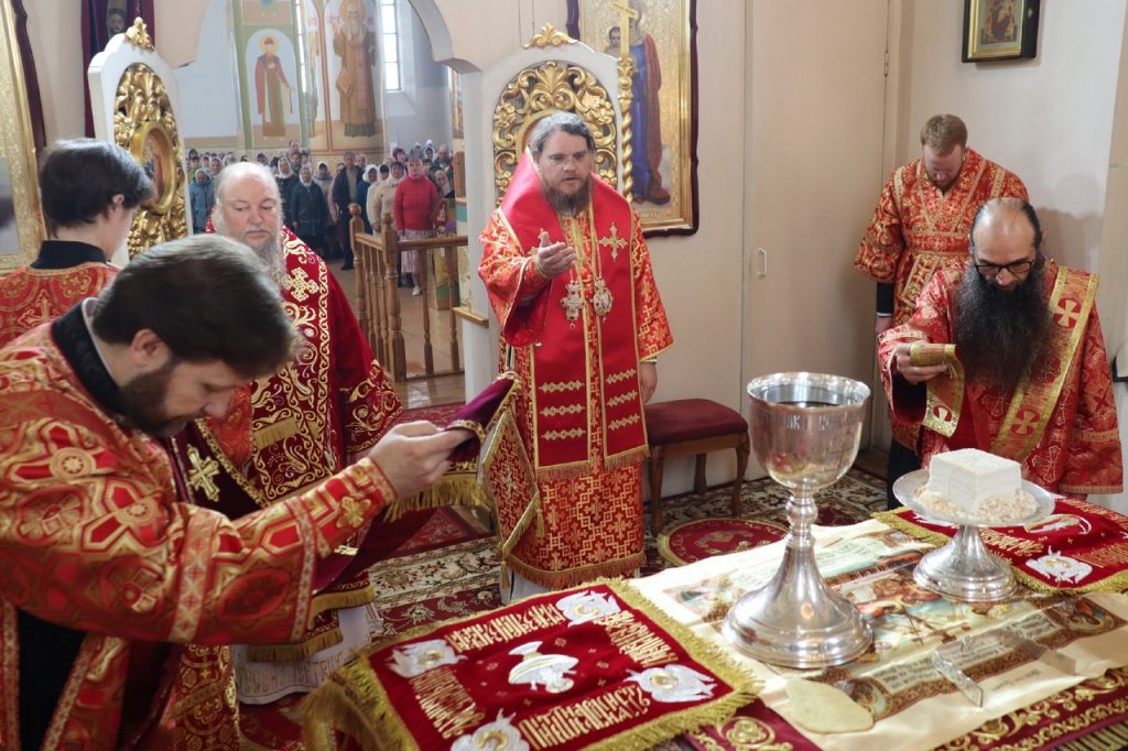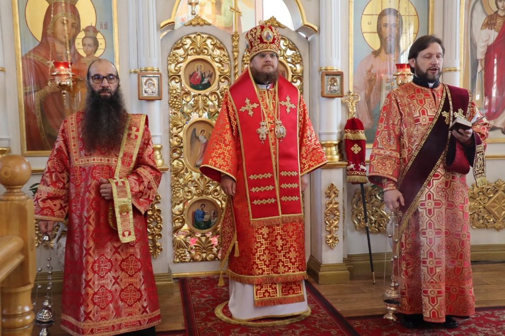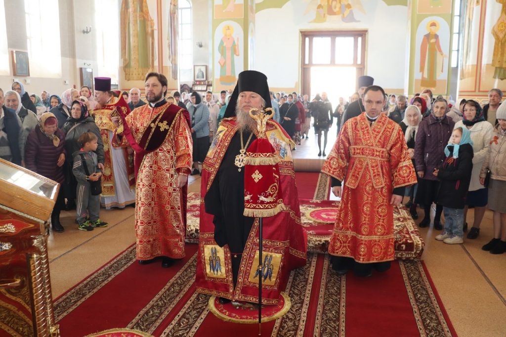 По отпусте Литургии епископ Митрофан поздравил молящихся с праздником Пасхи Христовой и обратился к епископу Сергию с приветственным словом. На память о совместном служении Владыка Митрофан преподнёс в дар наперсный крест и панагию с изображением Тихвинской Керенской иконы Божией Матери.