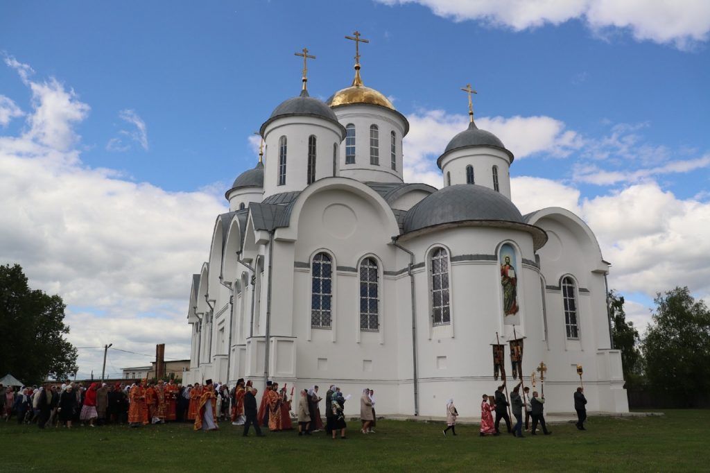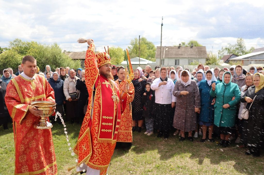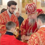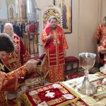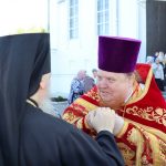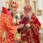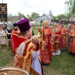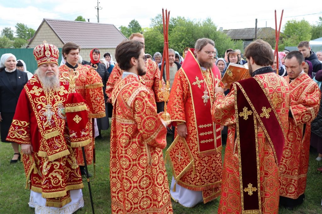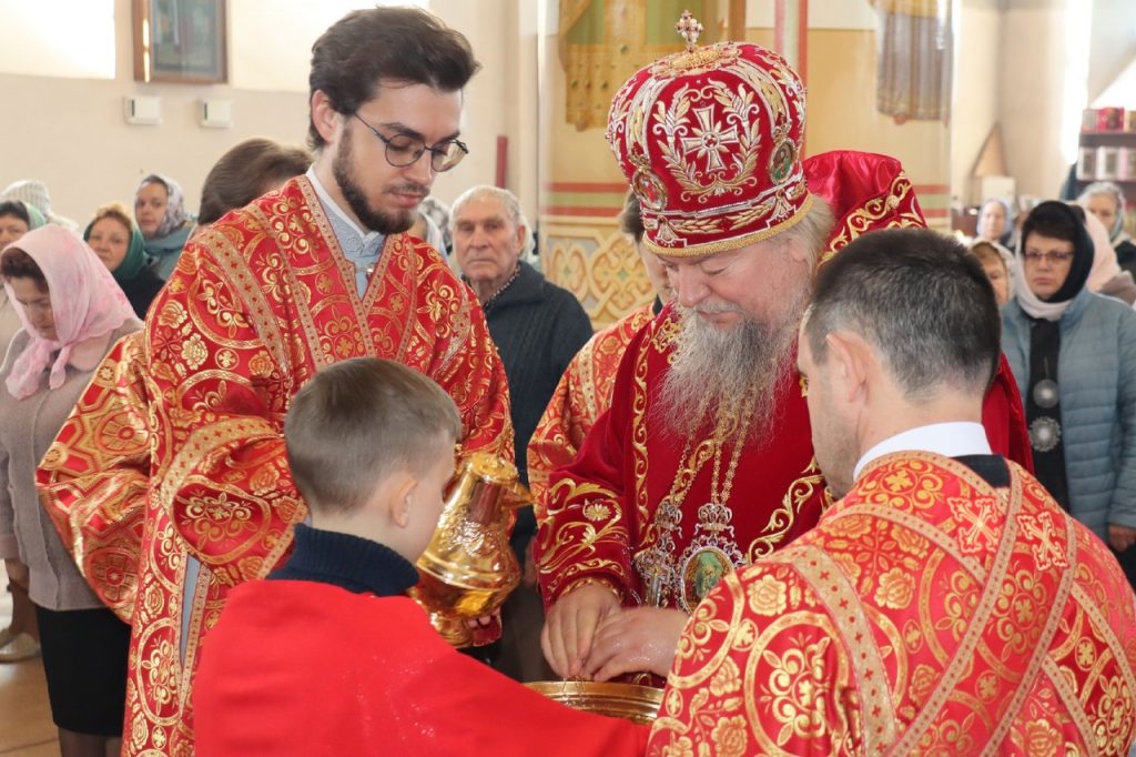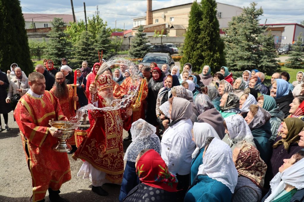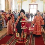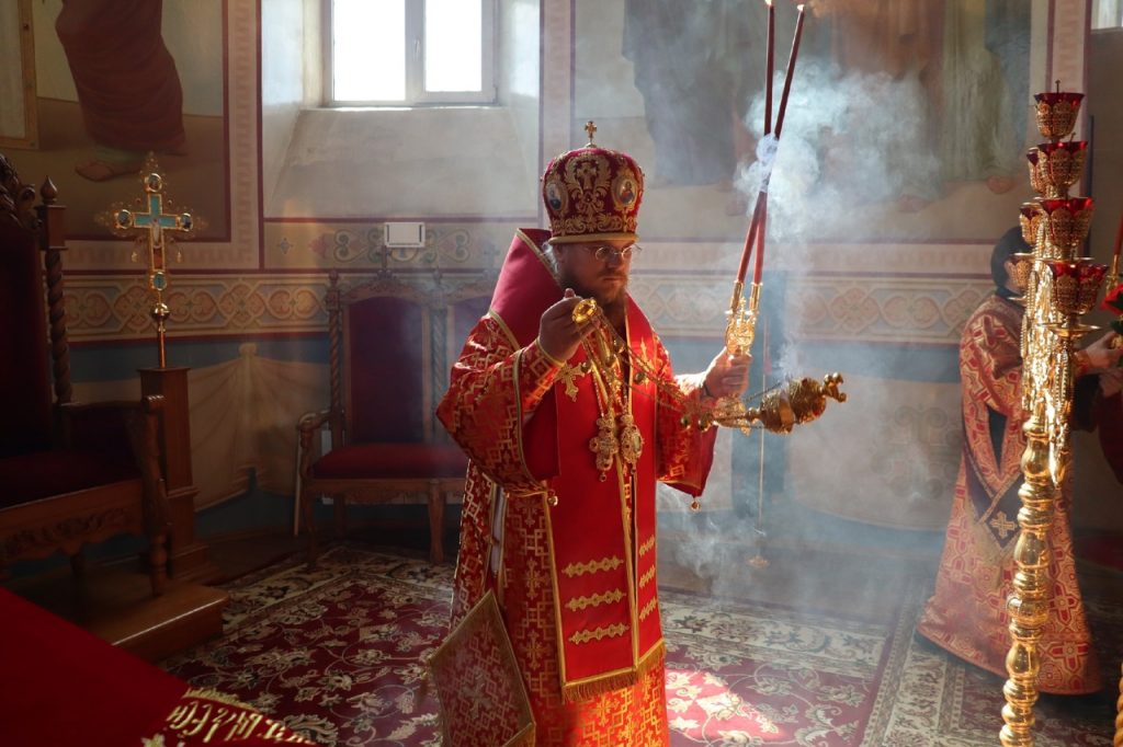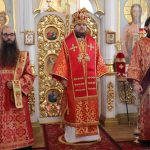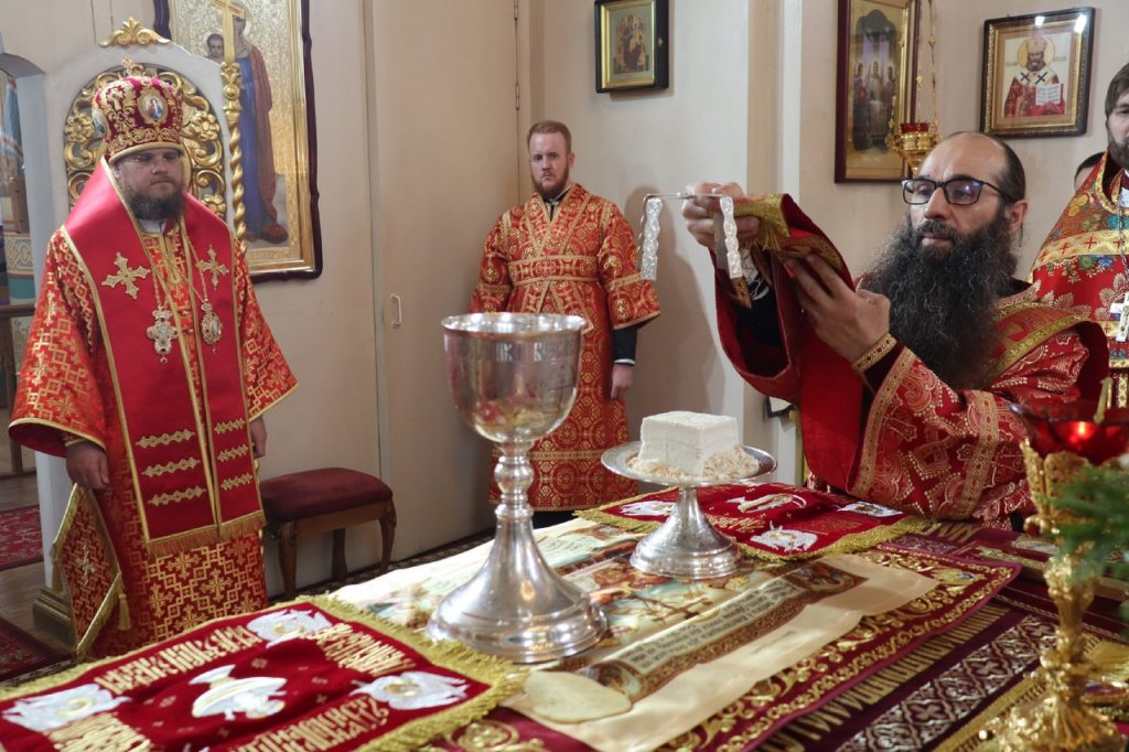 По отпусте Литургии епископ Митрофан поздравил молящихся с праздником Пасхи Христовой и обратился к епископу Сергию с приветственным словом. На память о совместном служении Владыка Митрофан преподнёс в дар наперсный крест и панагию с изображением Тихвинской Керенской иконы Божией Матери.