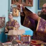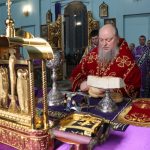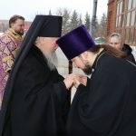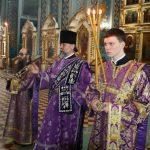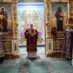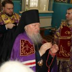 Его Преосвященству сослужили: иеромонах Амвросий (Макаров), врио. секретаря Епархиального Управления; клирик собора и руководитель епархиального отдела религиозного образования и катехизации иерей Александр Федин; иеродиакон Иннокентий (Ганин); диакон Владимир Эрекайкин, диакон Илия Кошолкин.