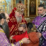 По отпусте Литургии Преосвященнейший Владыка Митрофан в сослужении духовенства совершил славление перед иконой 40 мучеников, в Севастийском озере мучившихся.