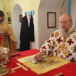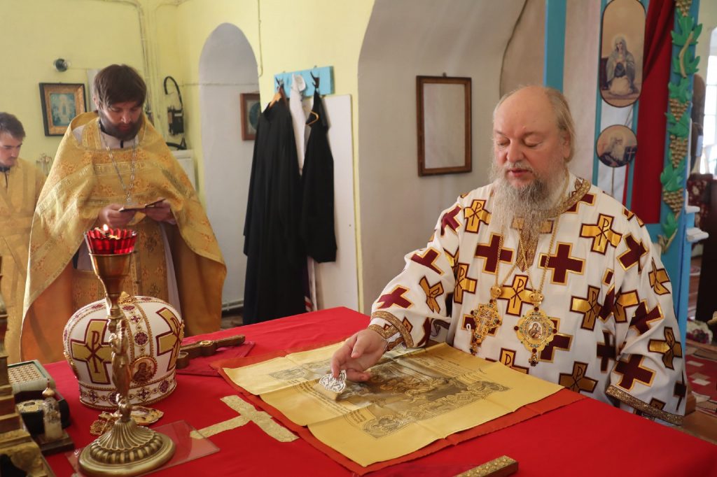 По окончании Литургии Преосвященнейший Владыка Митрофан поздравил паству с воскресным днем и с днем памяти преподобной Евдокии, в инокинях Евфросинии, великой княгини Московской, и обратился к верующим со словом проповеди.