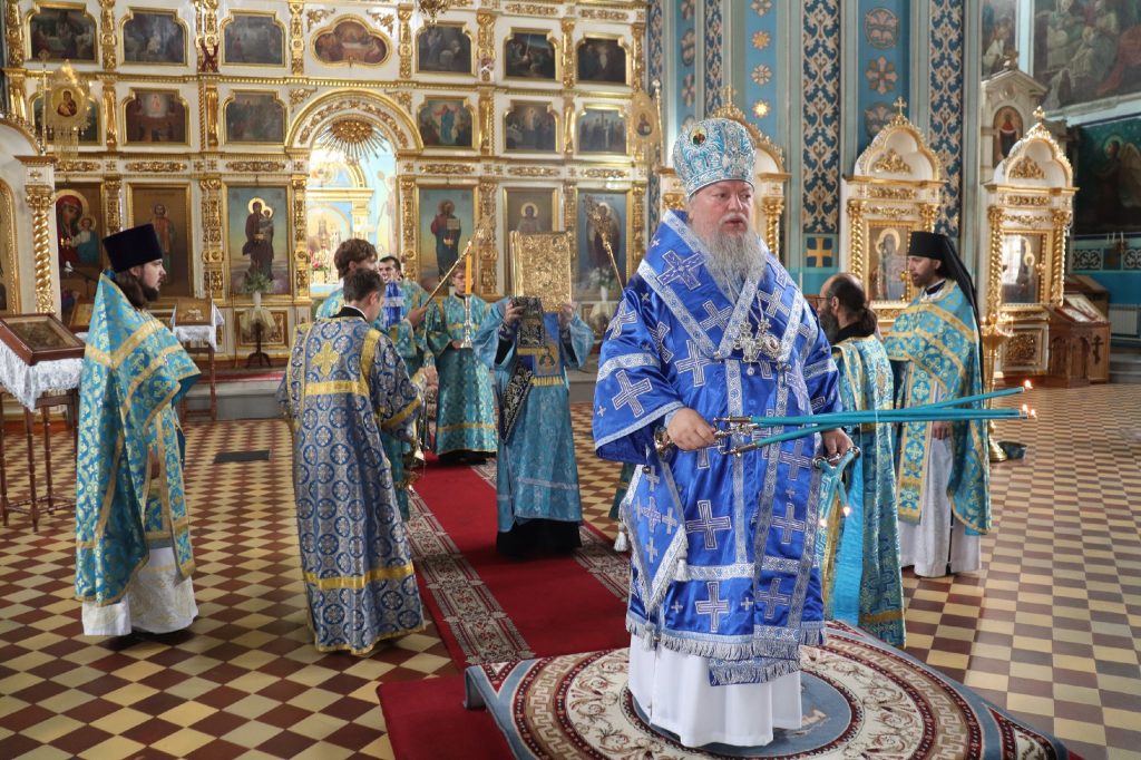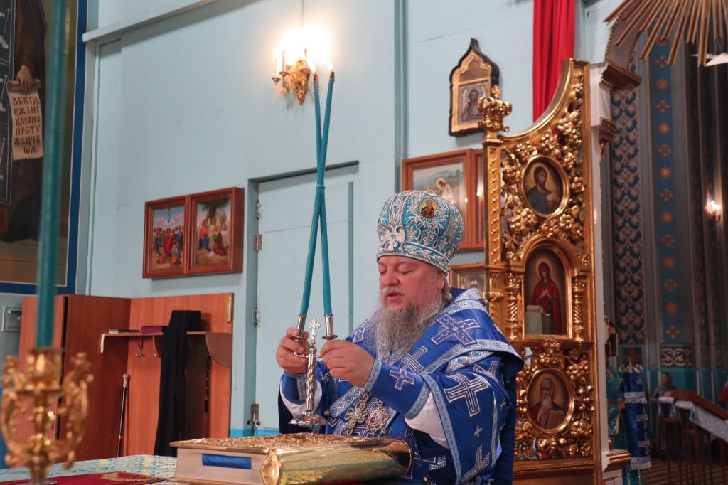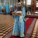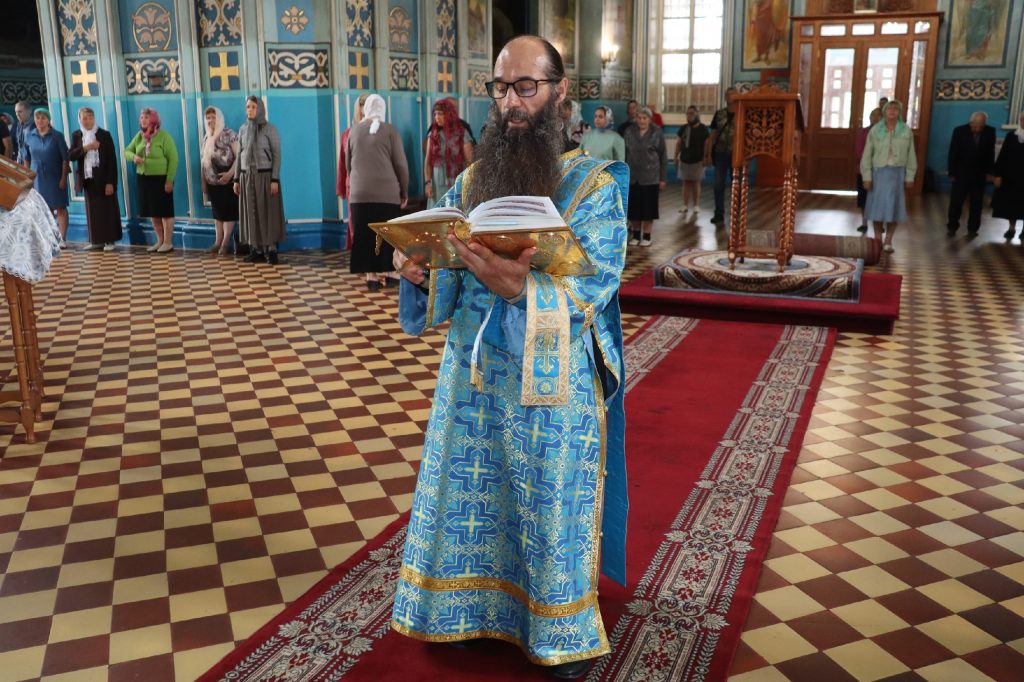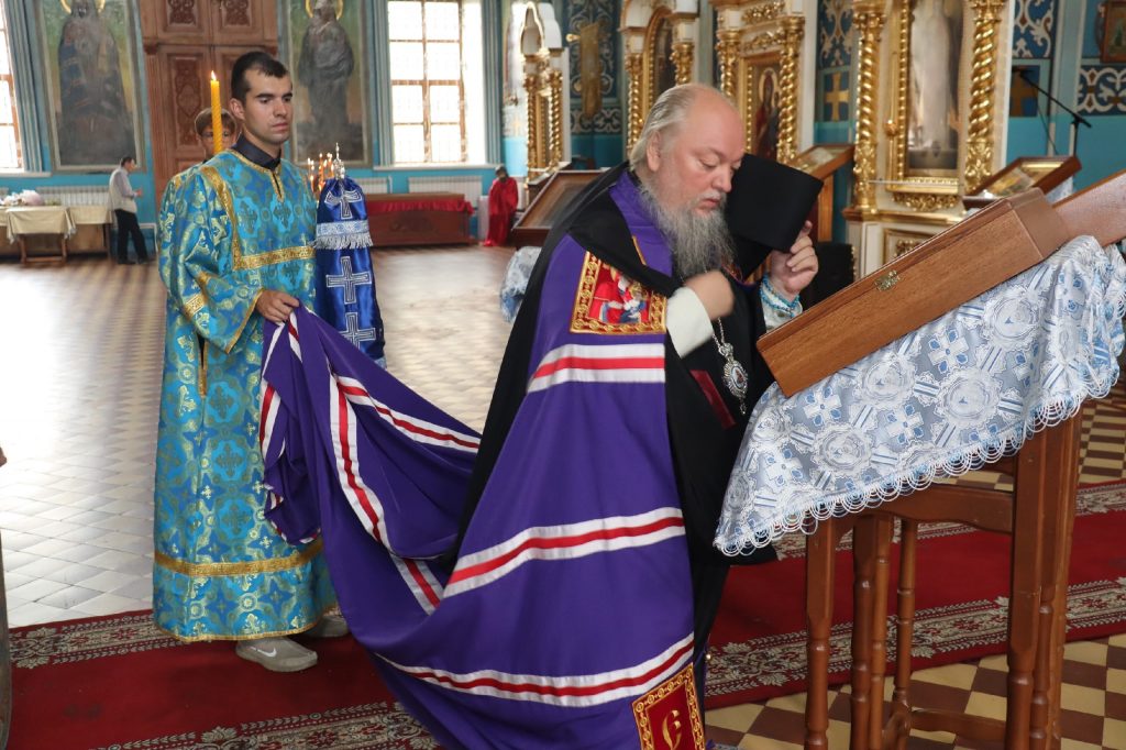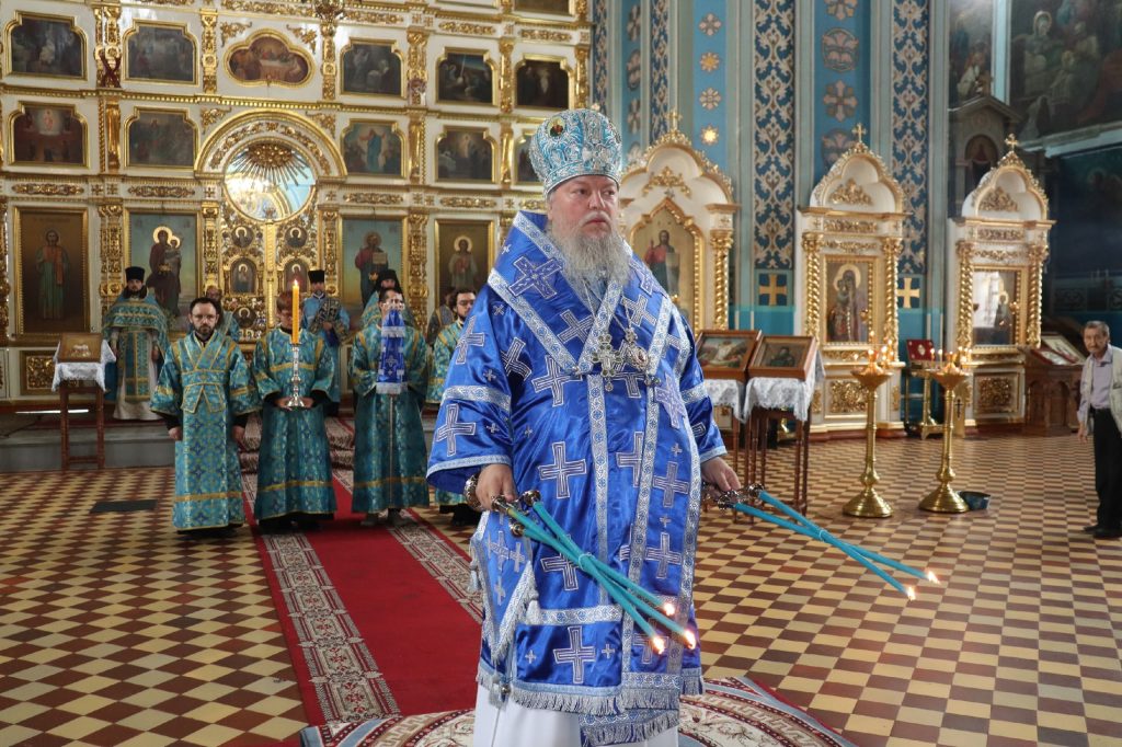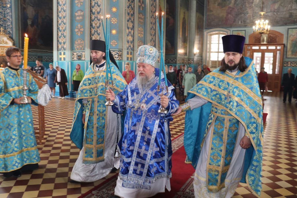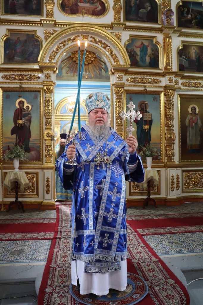Его Преосвященству сослужили: иеромонах Амвросий (Макаров), врио. секретаря Епархиального Управления; клирик собора и руководитель епархиального отдела религиозного образования и катехизации иерей Александр Федин; иеродиакон Иннокентий (Ганин), диакон Владимир Эрекайкин, диакон Михаил Клопов.