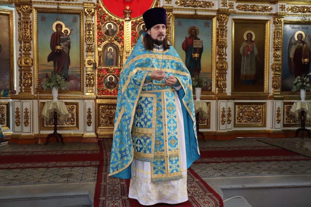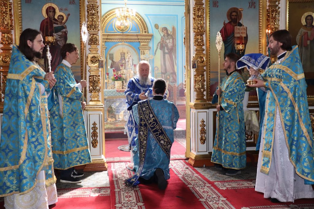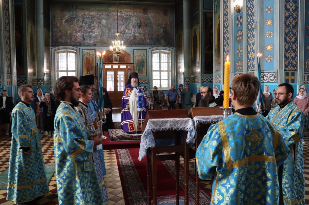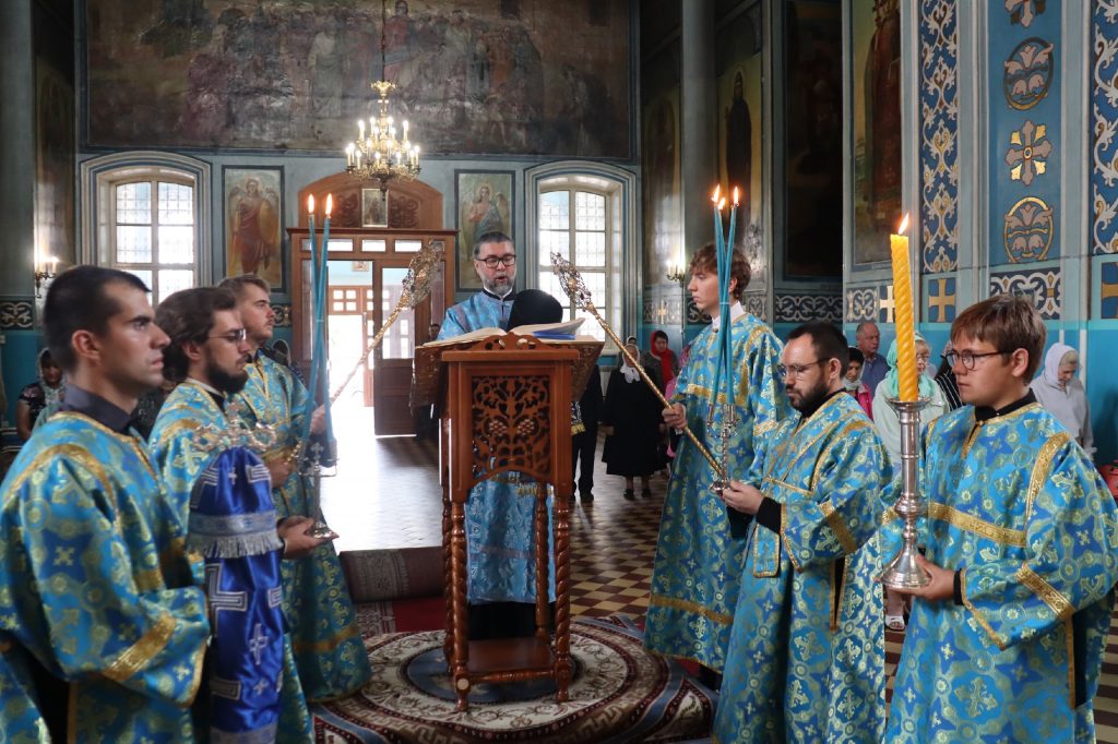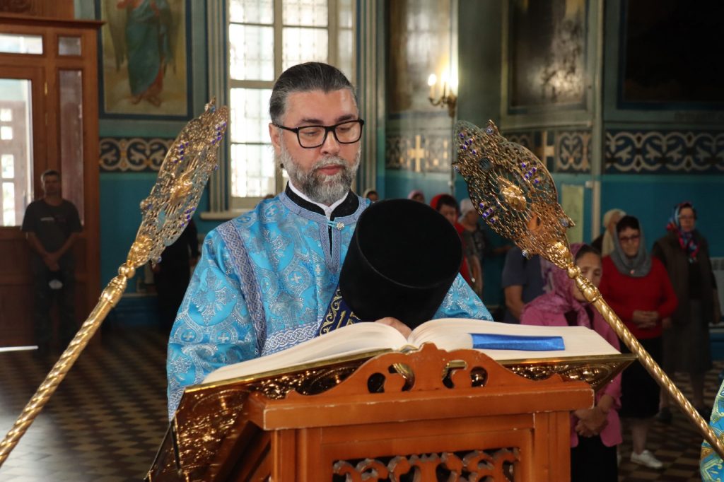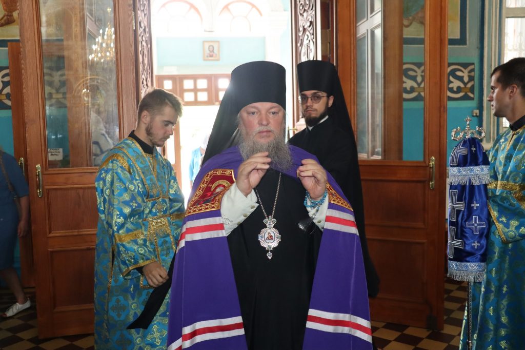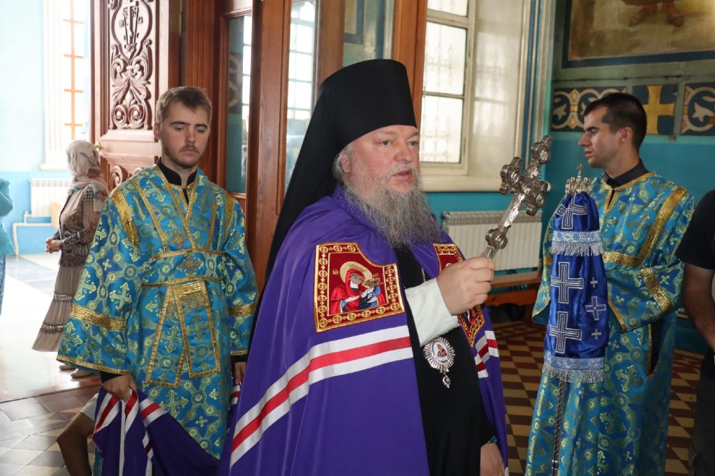 Его Преосвященству сослужили: иеромонах Амвросий (Макаров), врио. секретаря Епархиального Управления; клирик собора и руководитель епархиального отдела религиозного образования и катехизации иерей Александр Федин; иеродиакон Иннокентий (Ганин), диакон Владимир Эрекайкин, диакон Михаил Клопов.