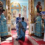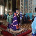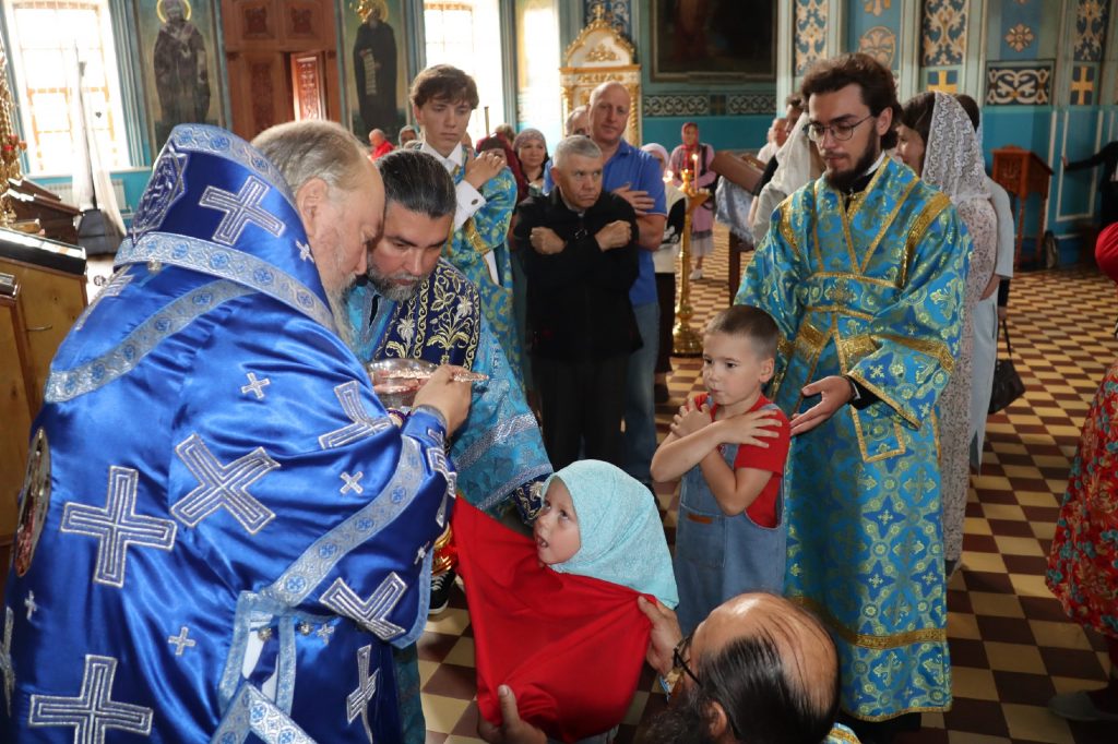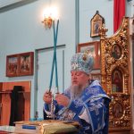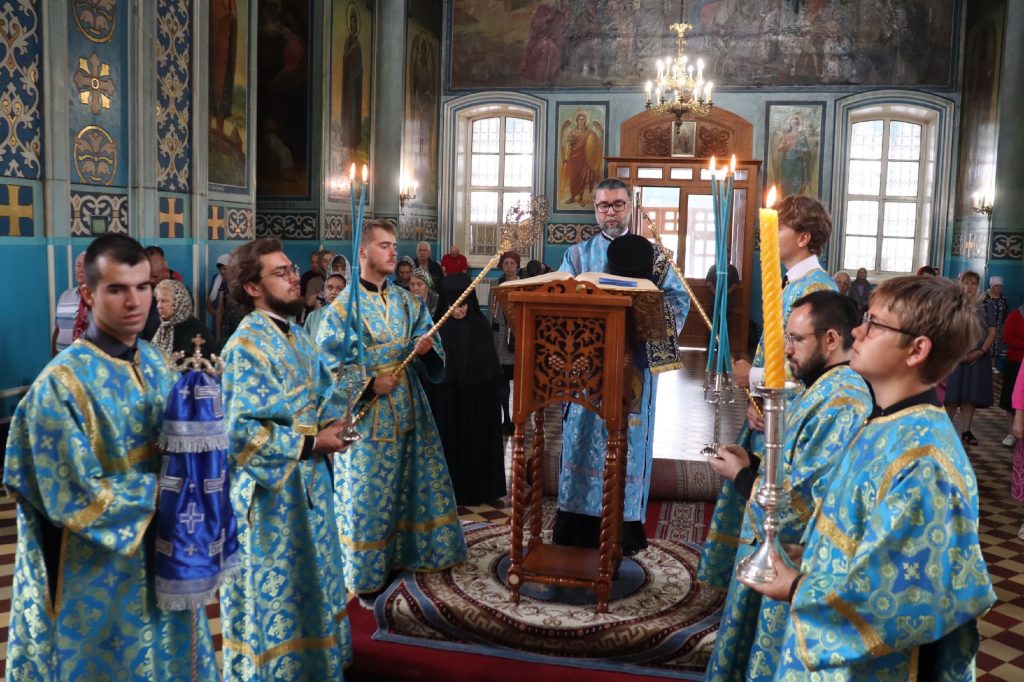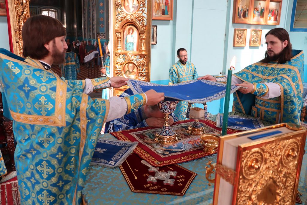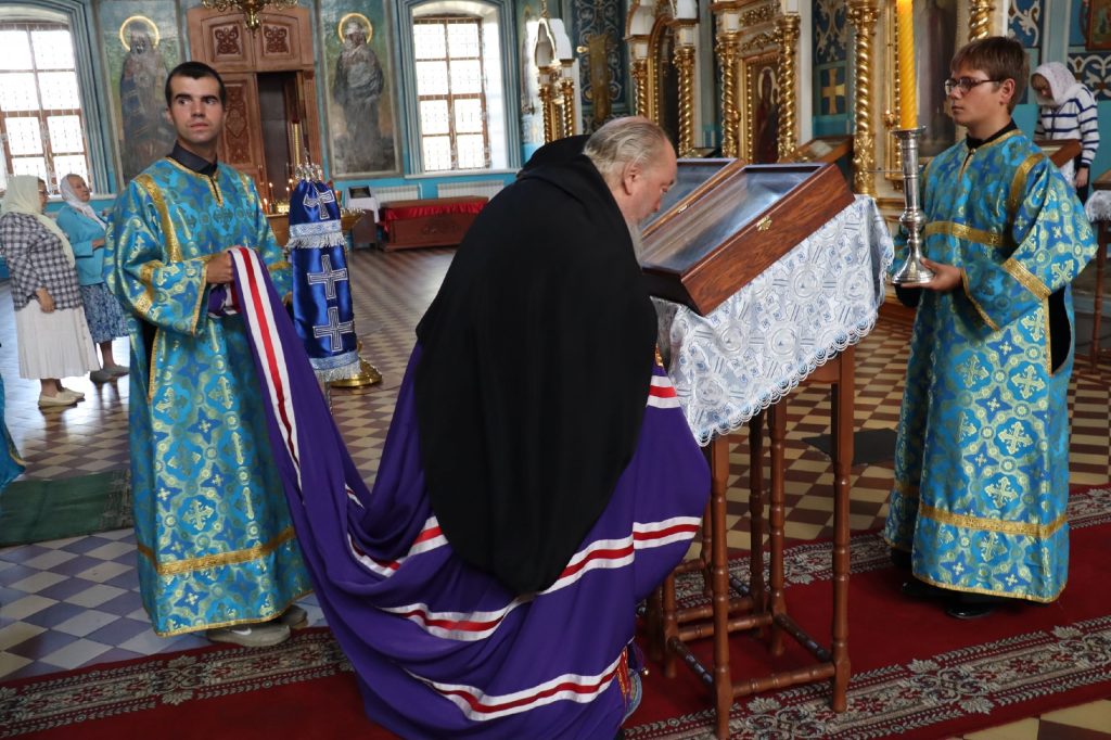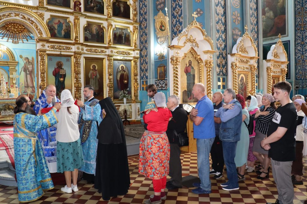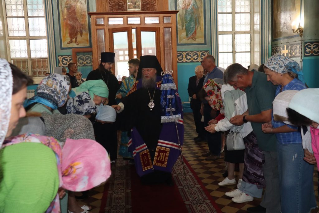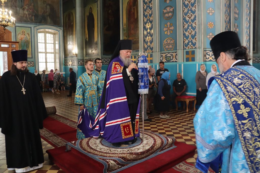 Его Преосвященству сослужили: иеромонах Амвросий (Макаров), врио. секретаря Епархиального Управления; клирик собора и руководитель епархиального отдела религиозного образования и катехизации иерей Александр Федин; иеродиакон Иннокентий (Ганин), диакон Владимир Эрекайкин, диакон Михаил Клопов.