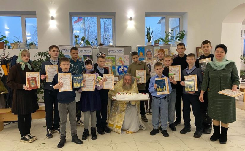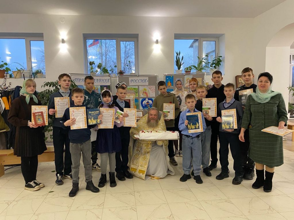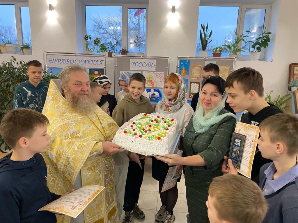 Настоятель иерей Иоанн Голованов наградил участников благодарственными письмами и памятными презентами. Главным сюрпризом стал впечатляющий масштабами десерт, который украсил собой праздничный стол воспитанников Центра.