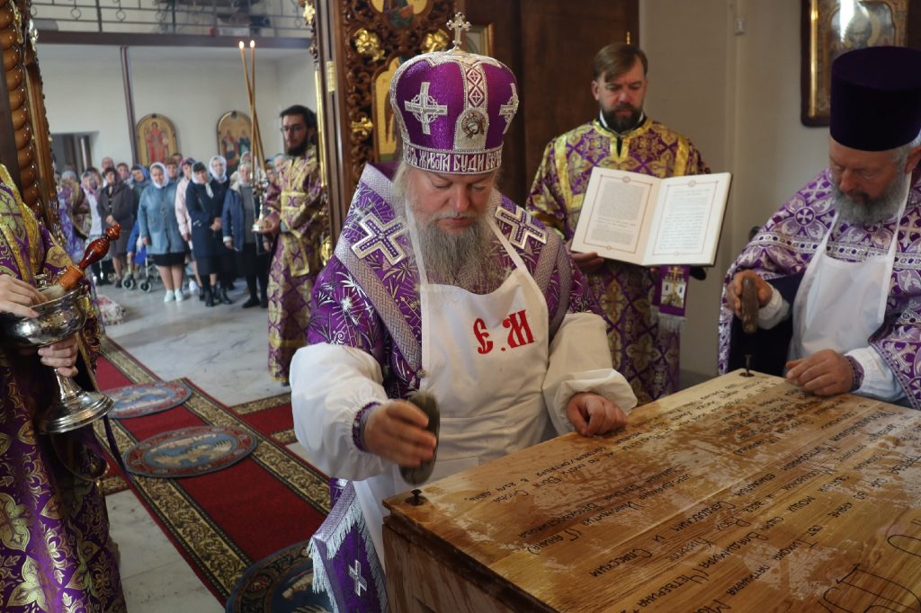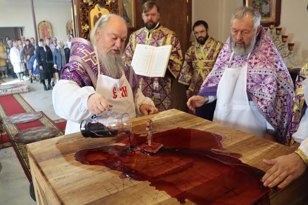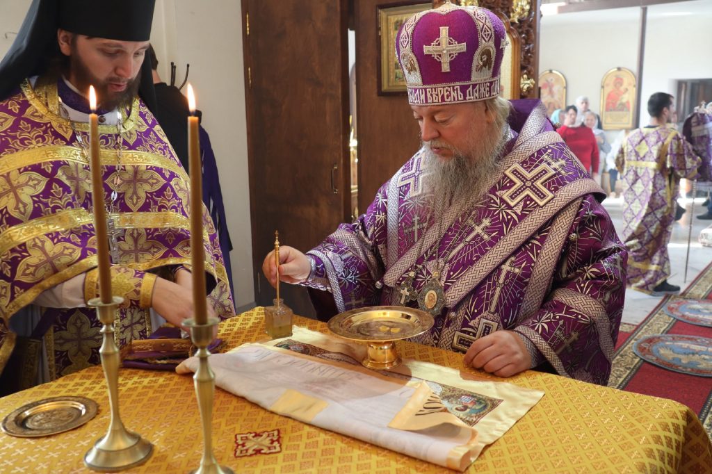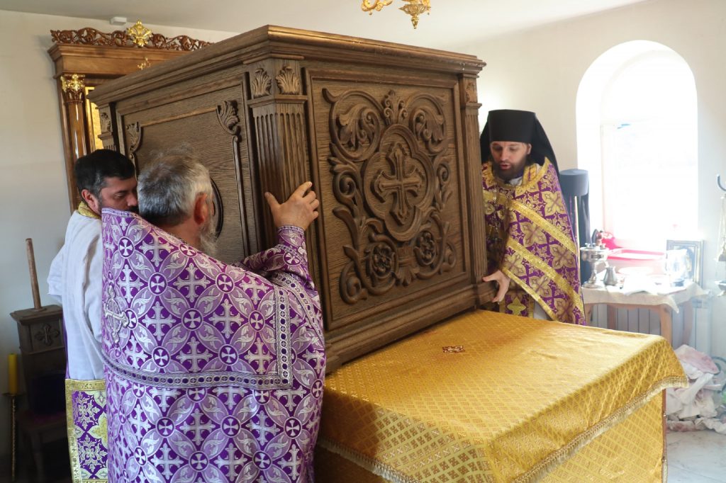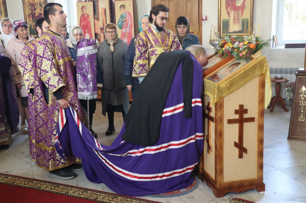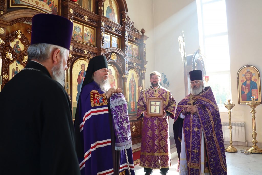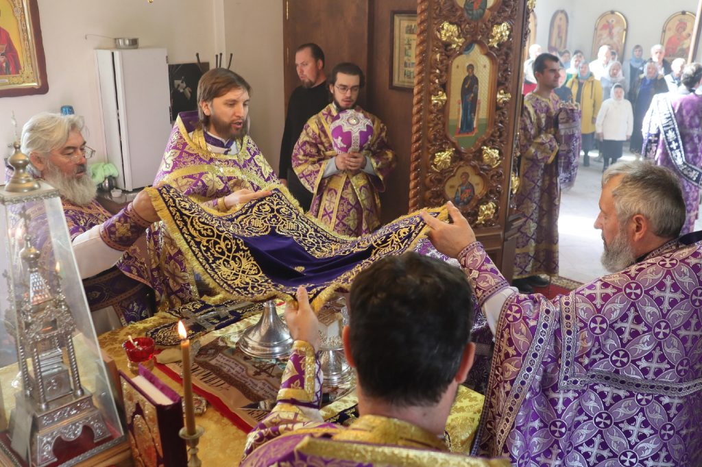 По отпусте Литургии епископ Митрофан внес Честный Крест в алтарь, где возложил его на престол. После закрытия царских врат и завесы Крест благоговейно был отнесен к месту его хранения.