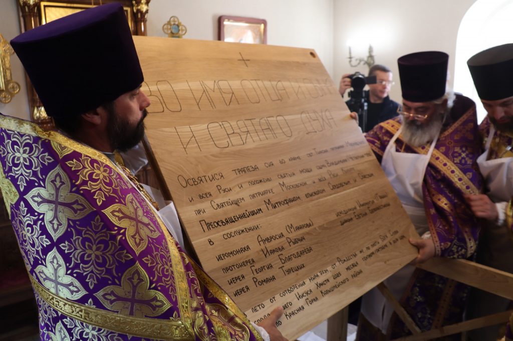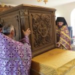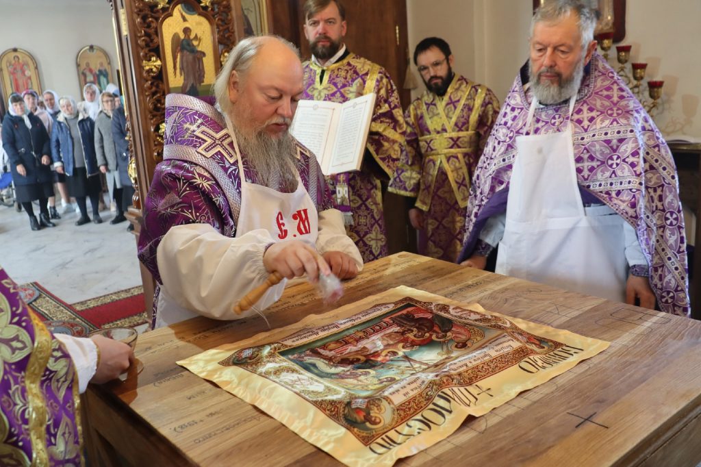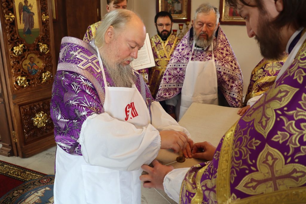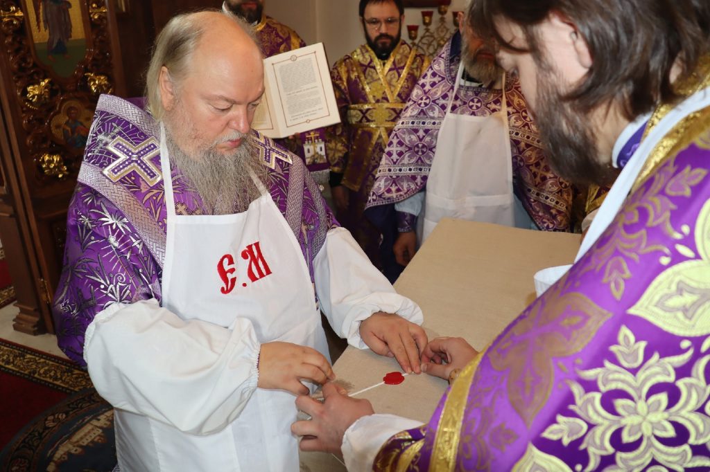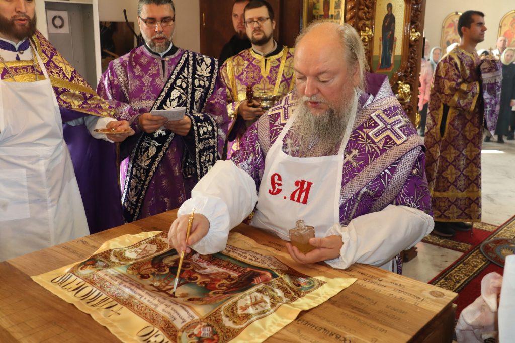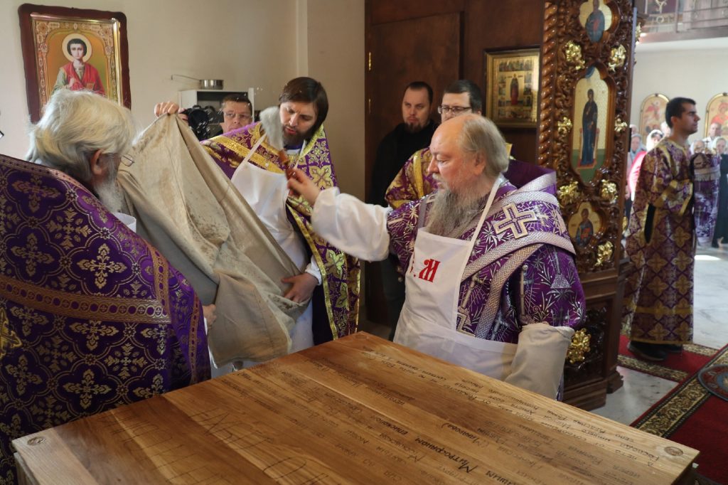 По отпусте Литургии епископ Митрофан внес Честный Крест в алтарь, где возложил его на престол. После закрытия царских врат и завесы Крест благоговейно был отнесен к месту его хранения.