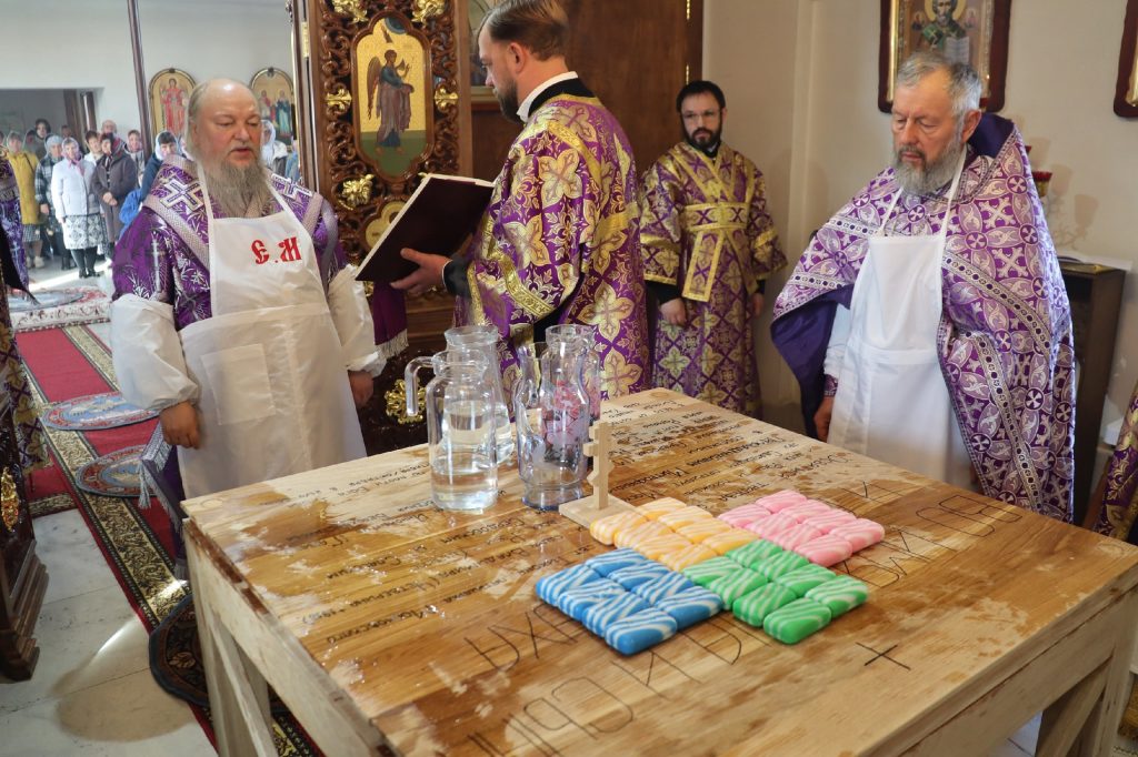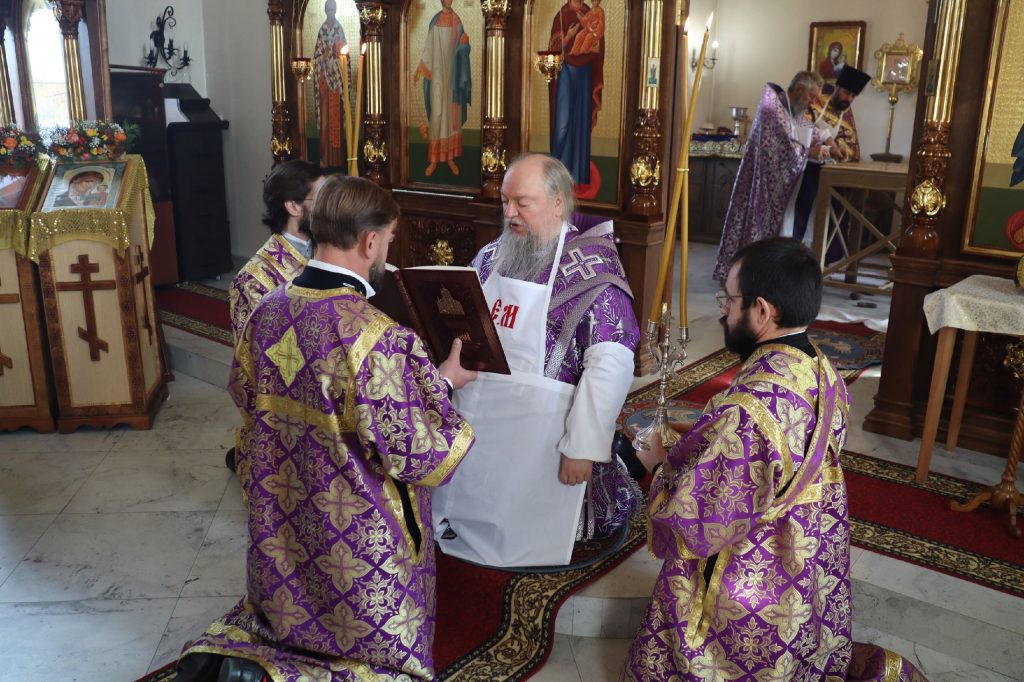 Его Преосвященству сослужили: иеромонах Амвросий (Макаров), врио. секретаря Епархиального Управления; настоятель храма свт.Тихона, Патриарха Московского и всея Руси, протоиерей Иаков Рыбчич; настоятель собора Покрова Пресвятой Богородицы г.Белинского иерей Георгий Благодарёв; ключарь кафедрального собора Архангела Михаила г.Сердобска, епархиальный древлехранитель иерей Роман Турецких; клирик кафедрального собора Архангела Михаила г. Сердобска иеродиакон Иннокентий (Ганин); клирик Преображенского монастыря г.Пензы диакон Евгений Белохвостиков.