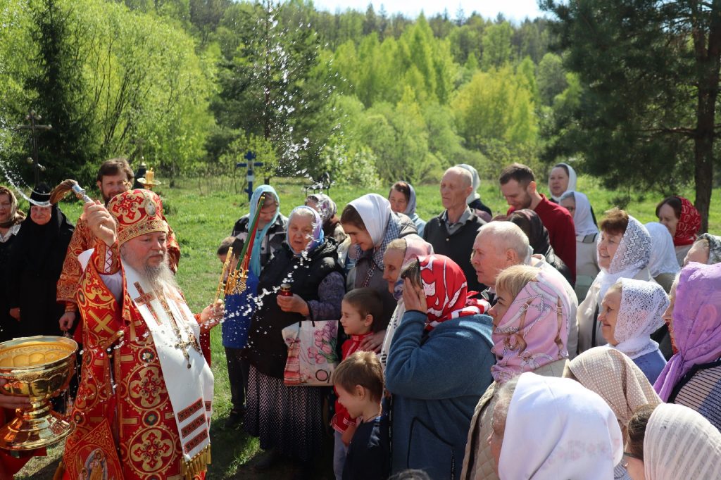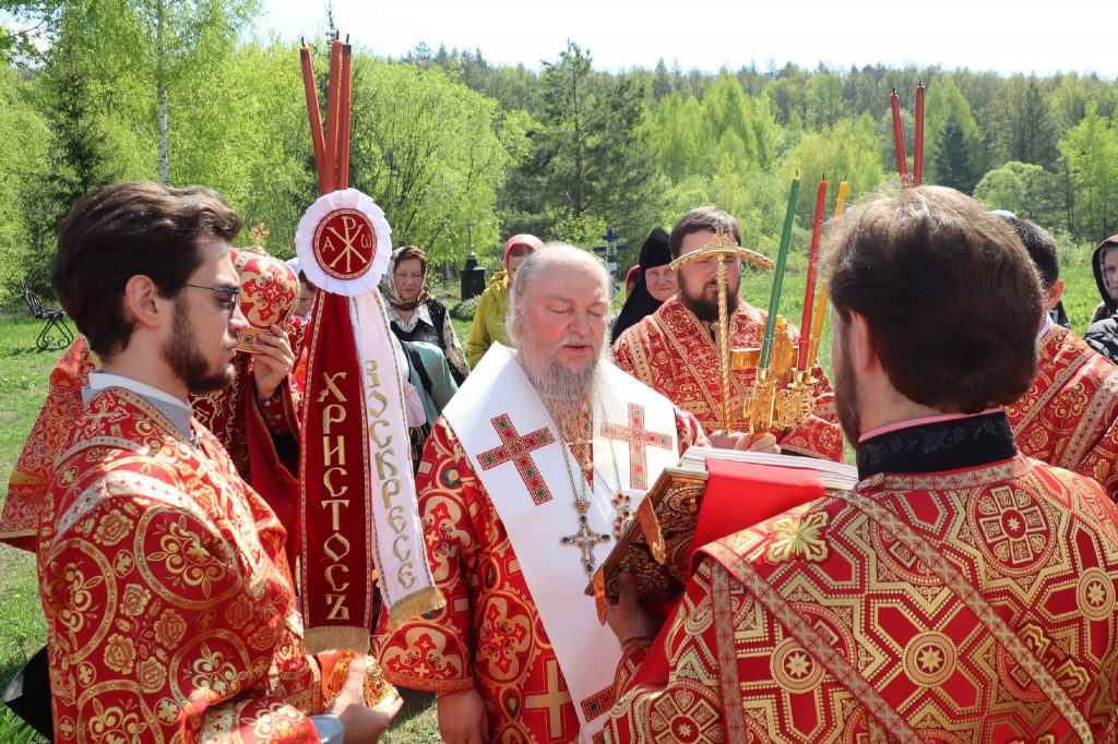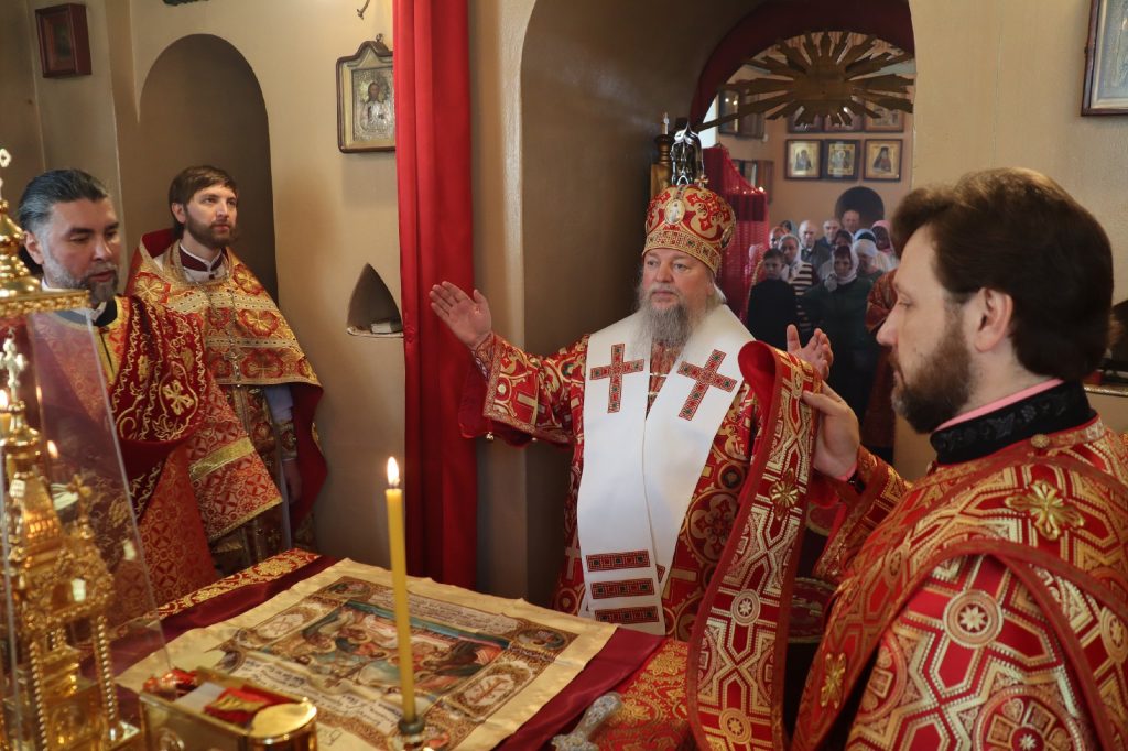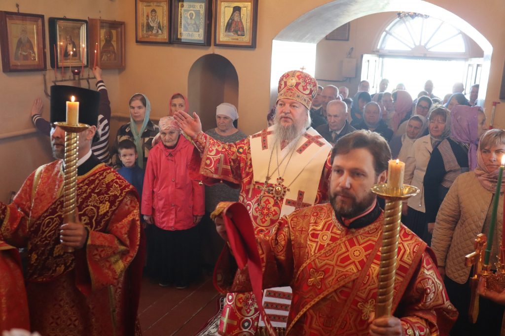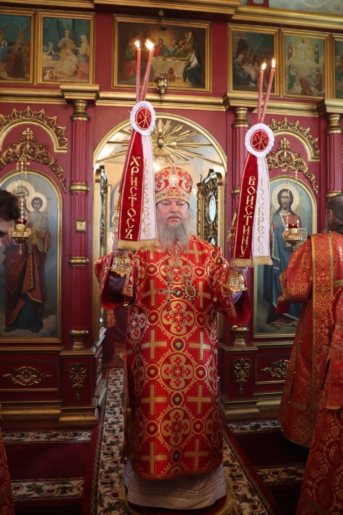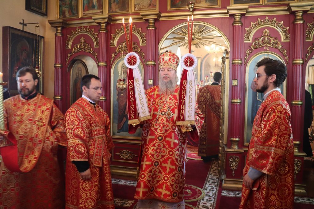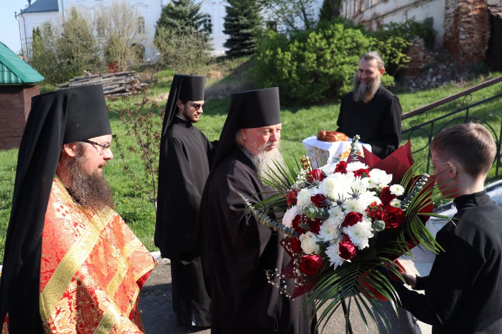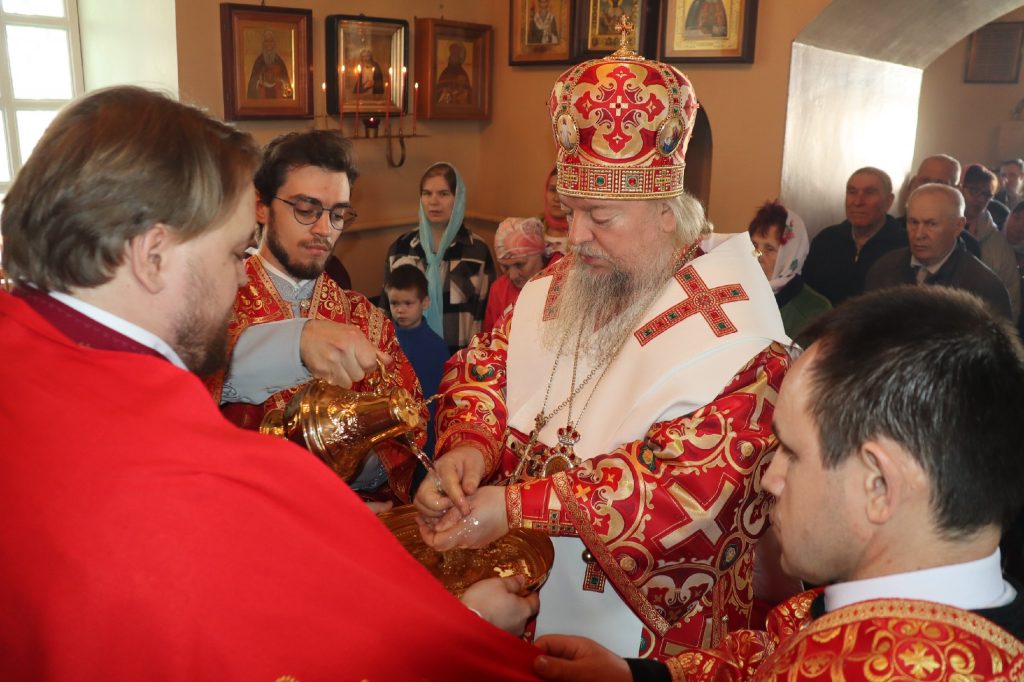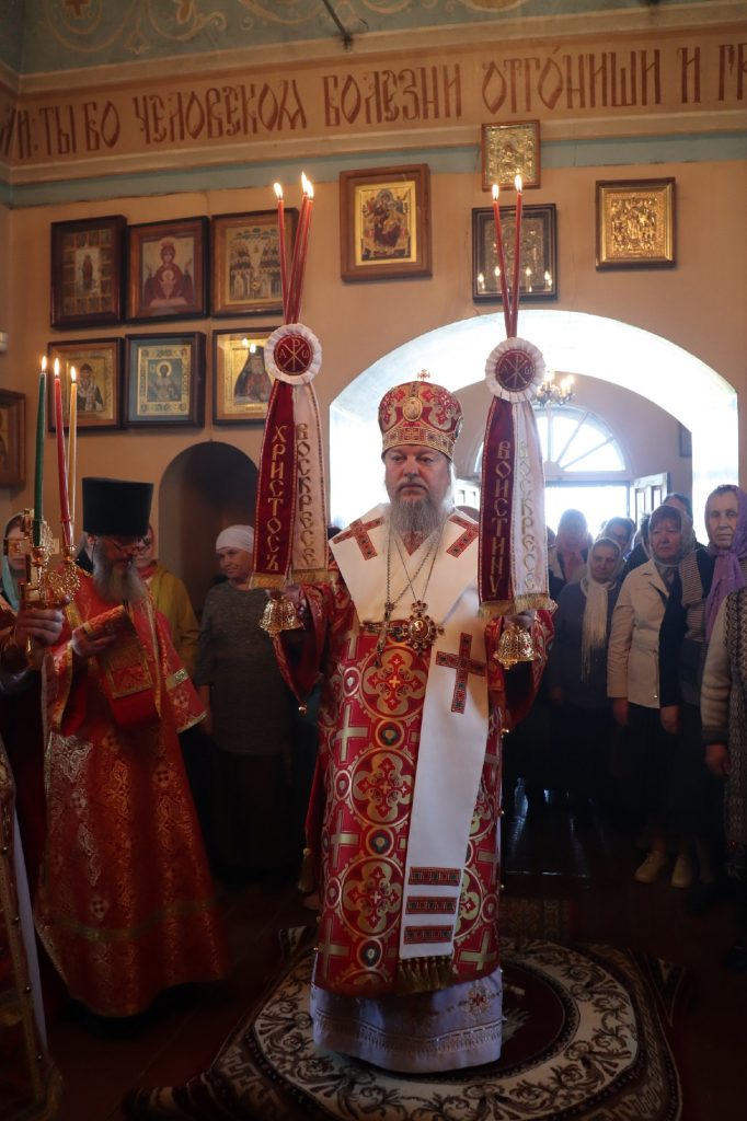 В завершение богослужения епископ Митрофан поздравил всех с праздником Воскресения Христова и престольным праздником — днем чествования чудотворной иконы Божией Матери «Живоносный Источник».