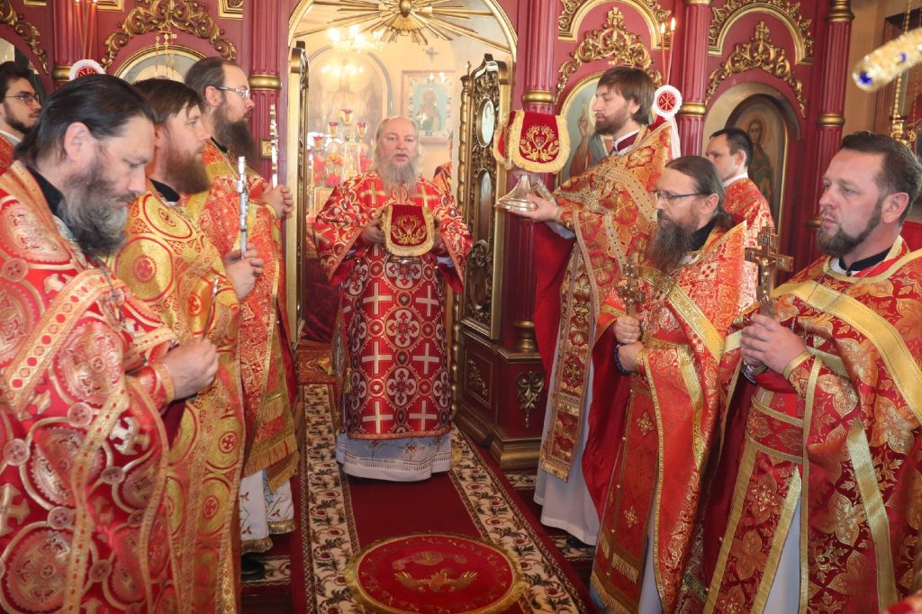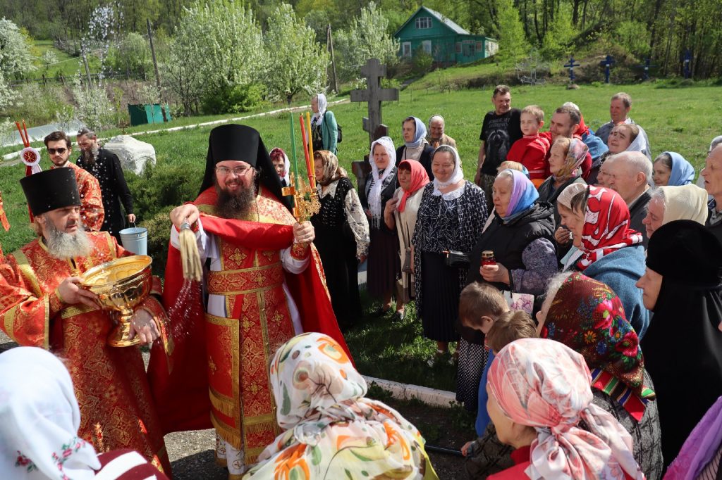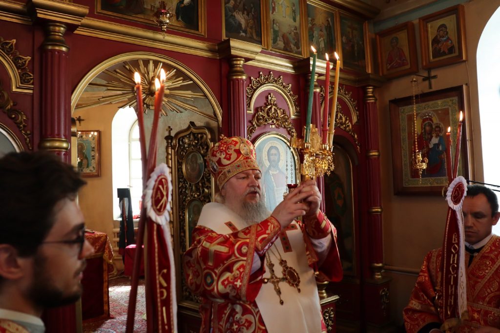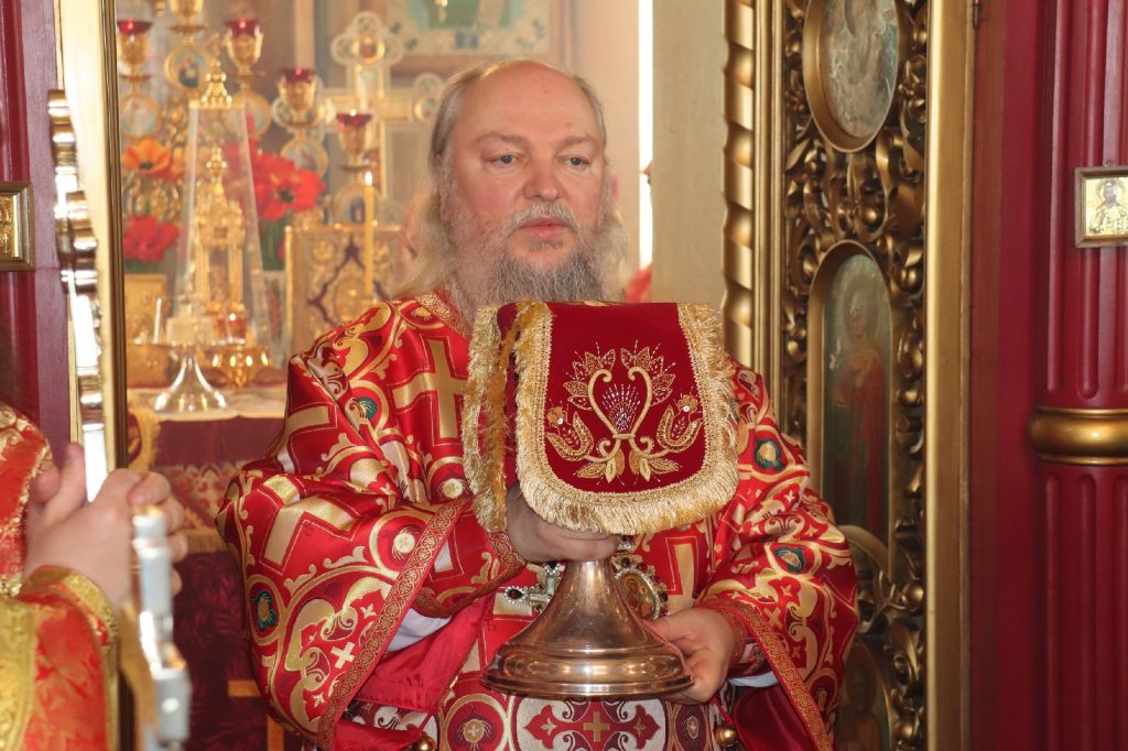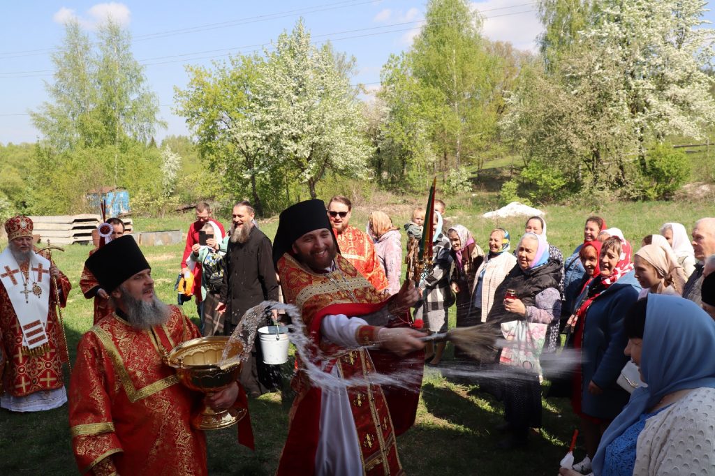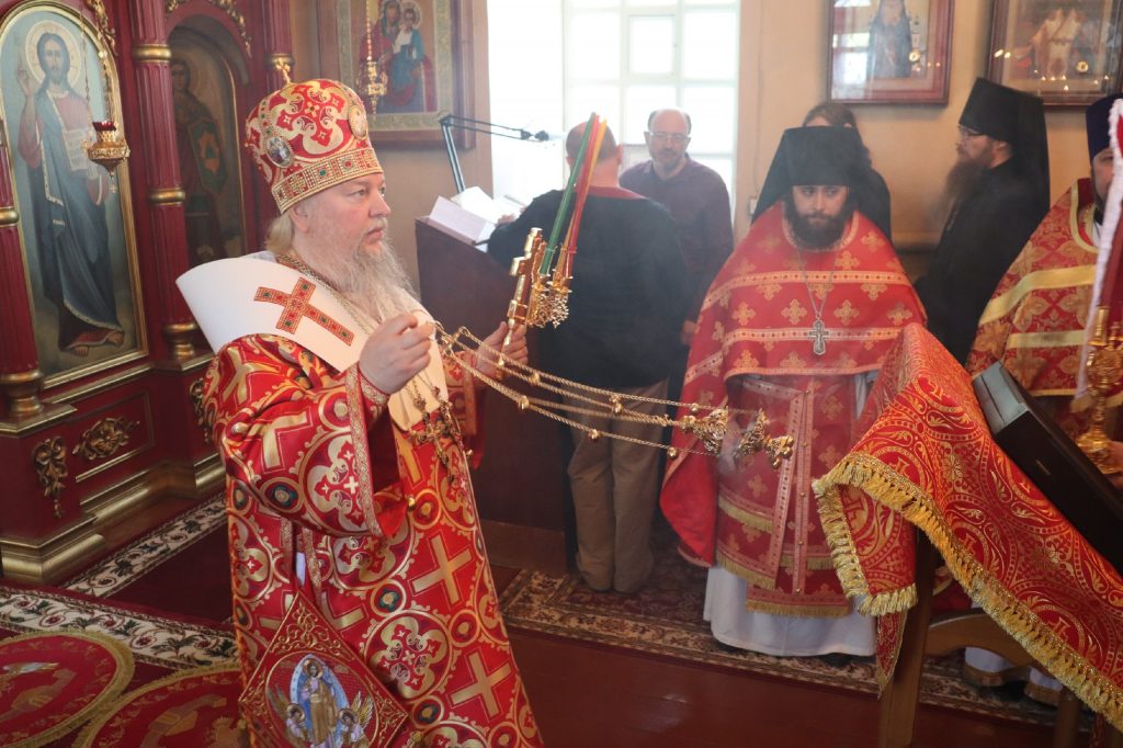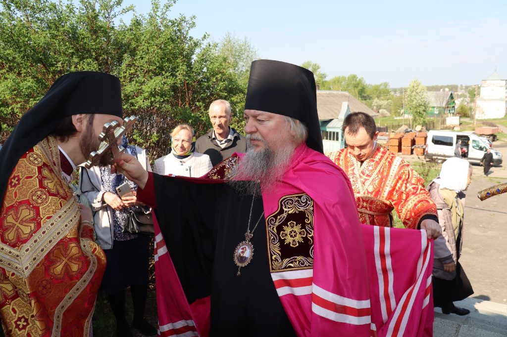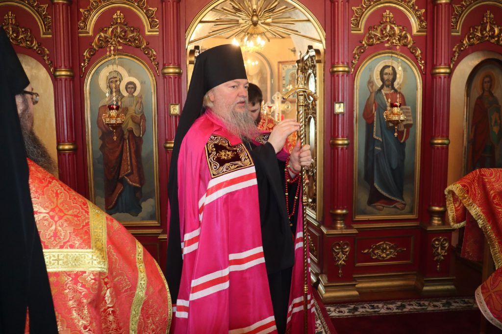В завершение богослужения епископ Митрофан поздравил всех с праздником Воскресения Христова и престольным праздником — днем чествования чудотворной иконы Божией Матери «Живоносный Источник».