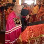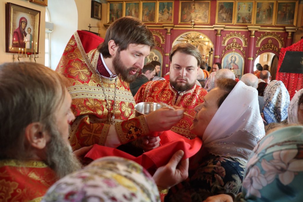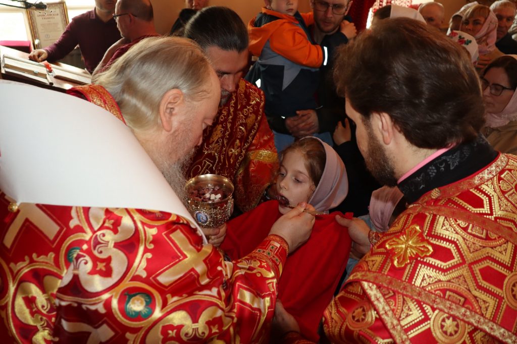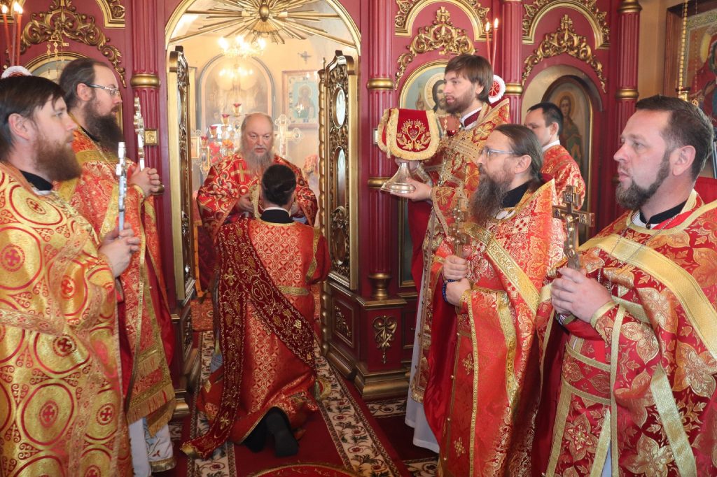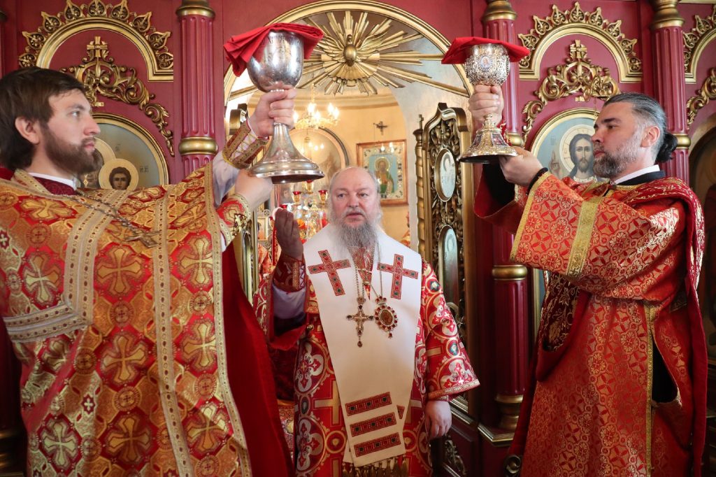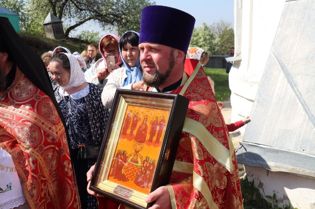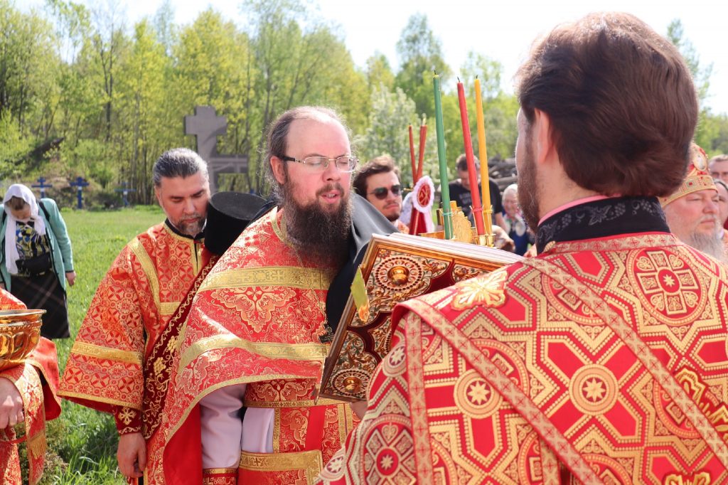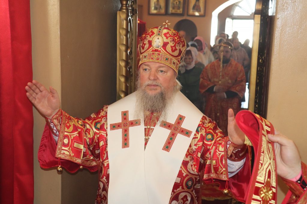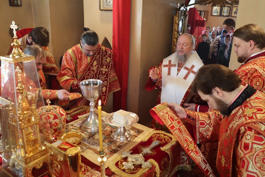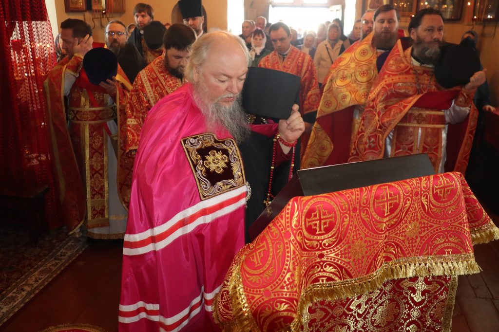 В завершение богослужения епископ Митрофан поздравил всех с праздником Воскресения Христова и престольным праздником — днем чествования чудотворной иконы Божией Матери «Живоносный Источник».