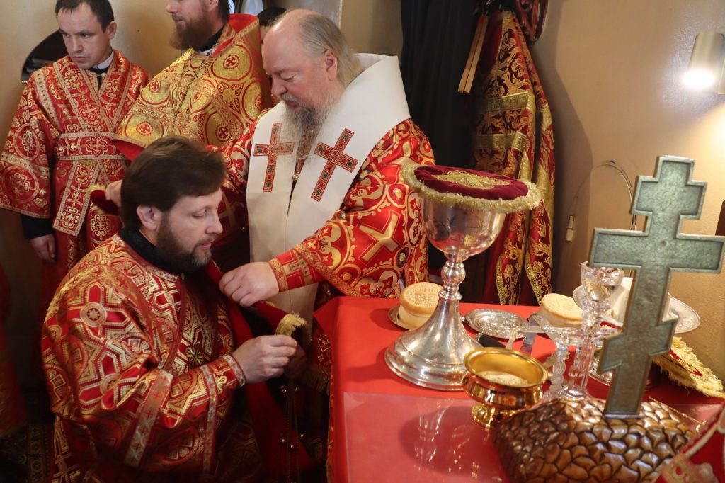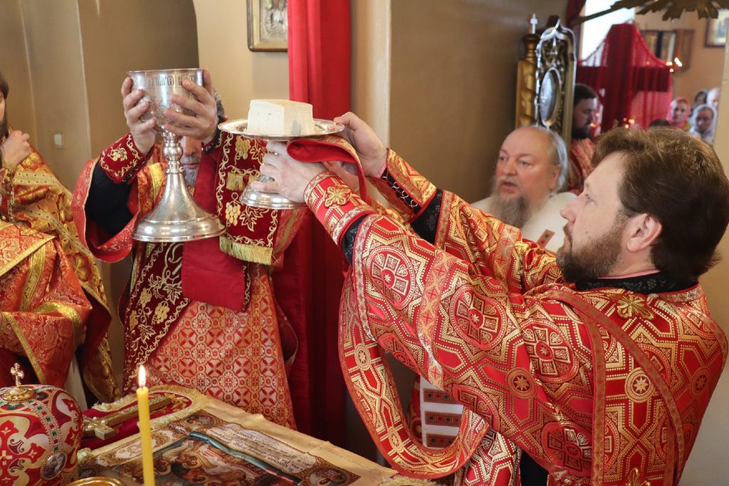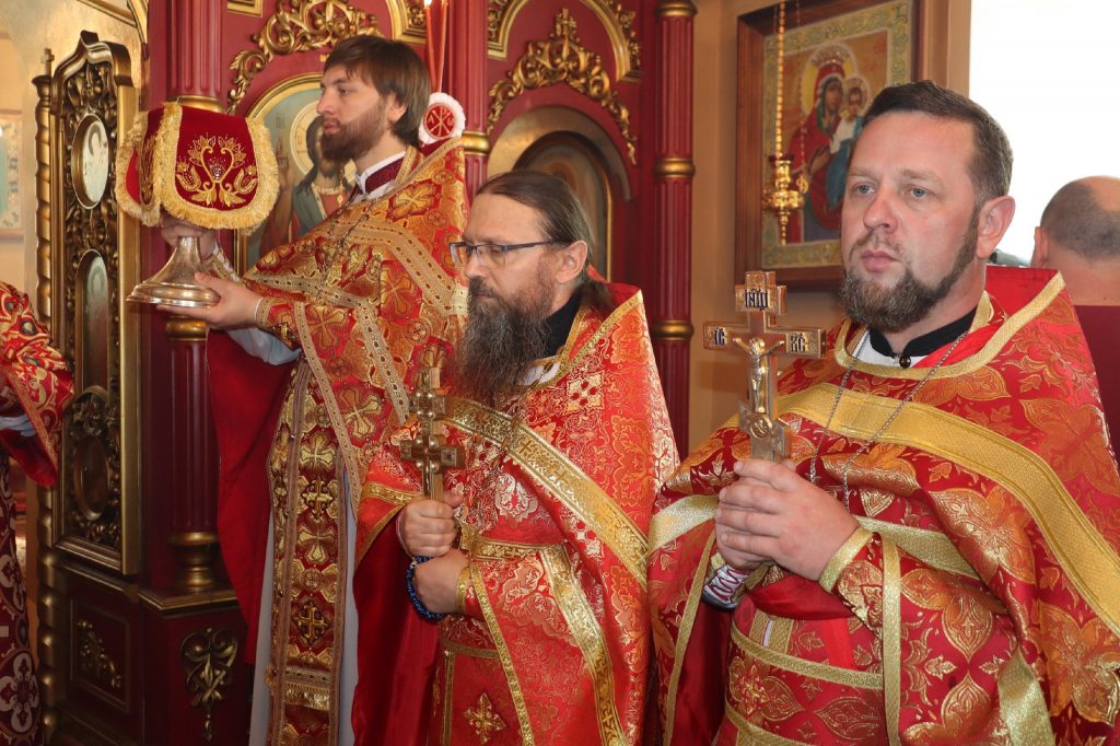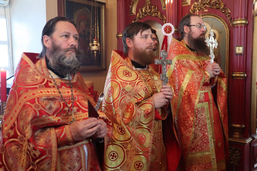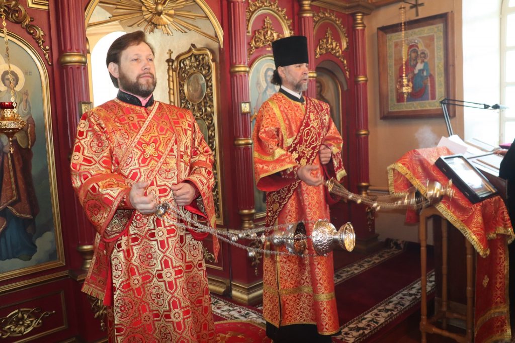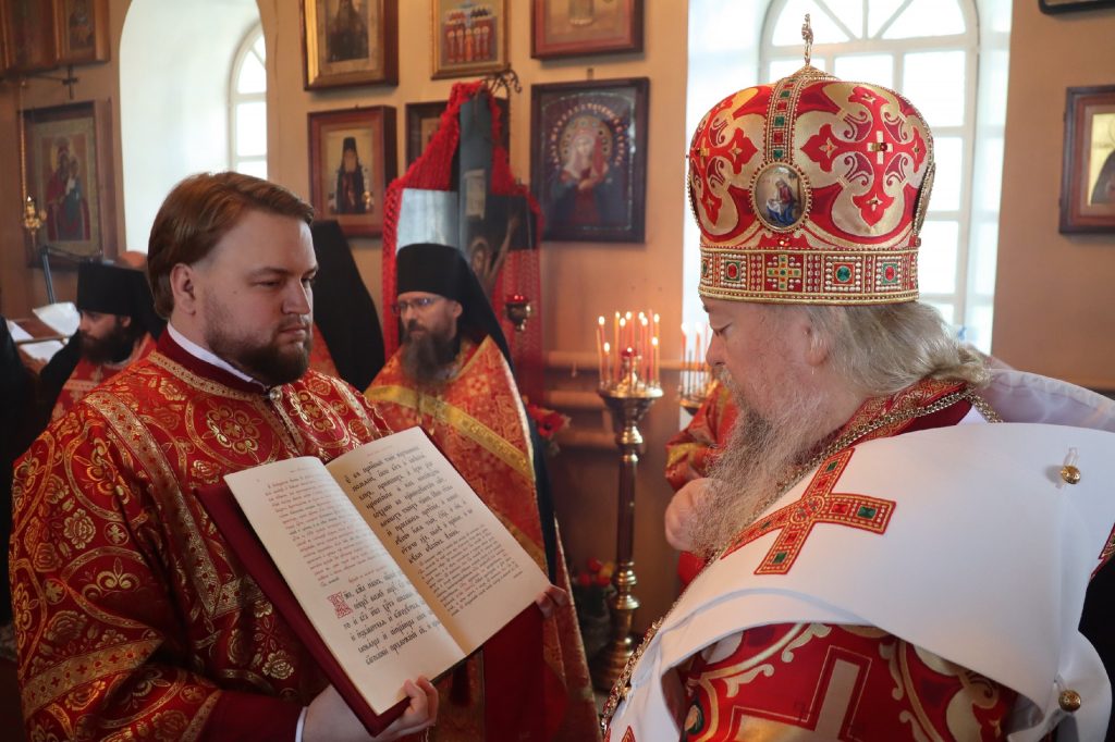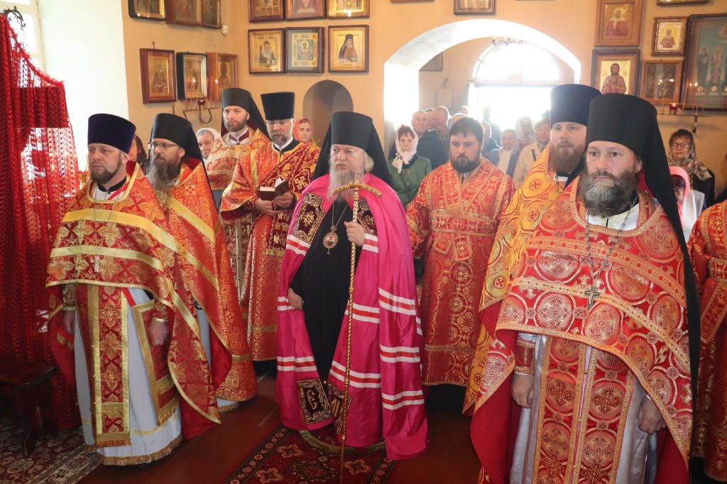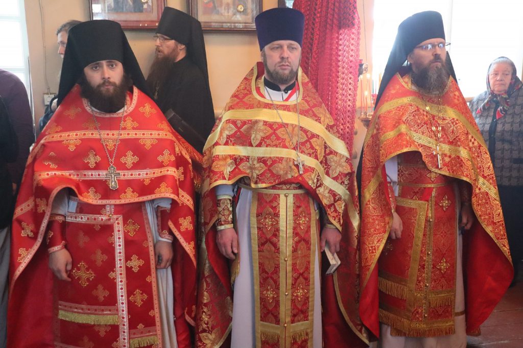 Его Преосвященству сослужили: иеромонах Амвросий (Макаров), врио. секретаря Епархиального Управления; благочинный Вадинского округа иерей Сергий Третьяков; и. о. наместника Епархиального Тихвинского Керенского мужского монастыря с.Вадинска иеромонах Питирим (Толмачев); насельник Епархиального Тихвинского Керенского мужского монастыря с.Вадинска игумен Серафим (Попов); настоятель церкви Богоявления Господня с. Вадинска иерей Павел Куликов; иеромонах Аверкий (Захаров); и.о.наместника Сканова Пещерного мужского монастыря прпп. Антония и Феодосия Печерских с. Сканово Наровчатского района иеромонах Ювеналий (Жучков); клирик кафедрального собора Архангела Михаила г. Сердобска иеродиакон Иннокентий (Ганин), клирик храма Рождества Христова р.п. Земетчино диакон Сергий Сурков; насельник Епархиального Тихвинского Керенского мужского монастыря р.ц. Вадинска иеродиакон Василий (Семенов).
