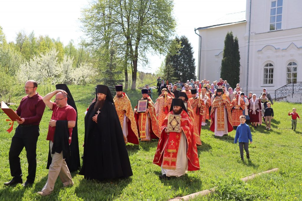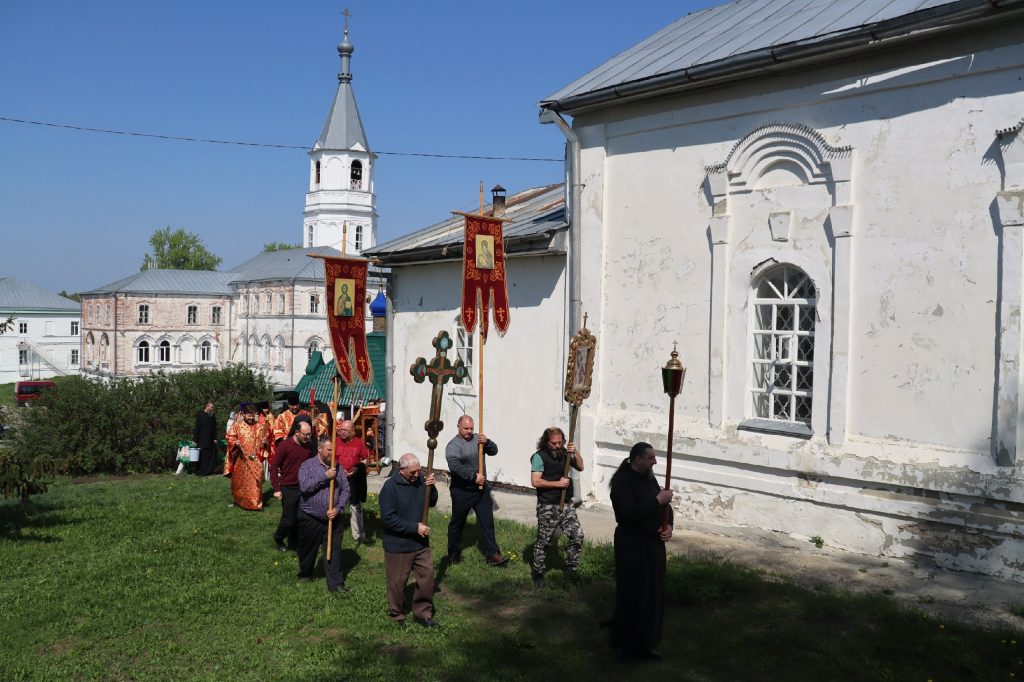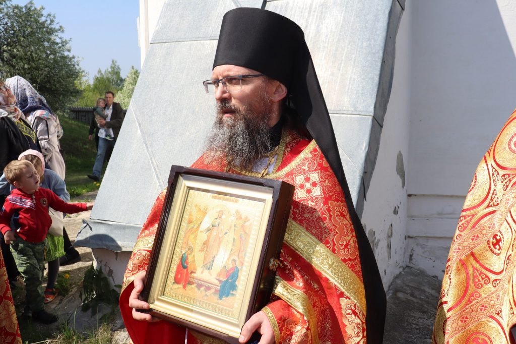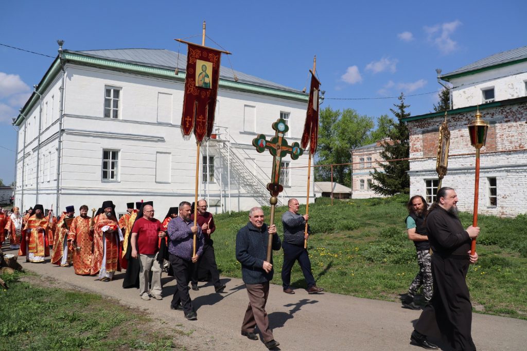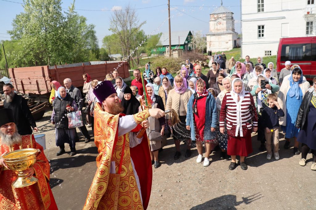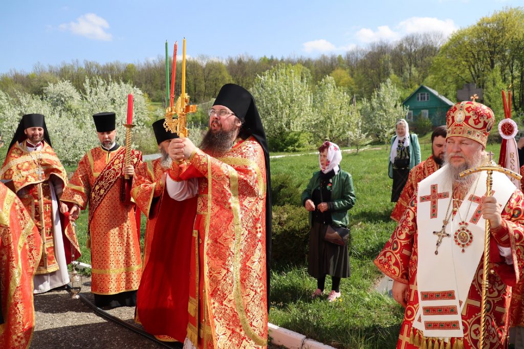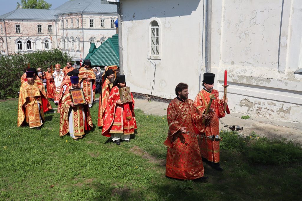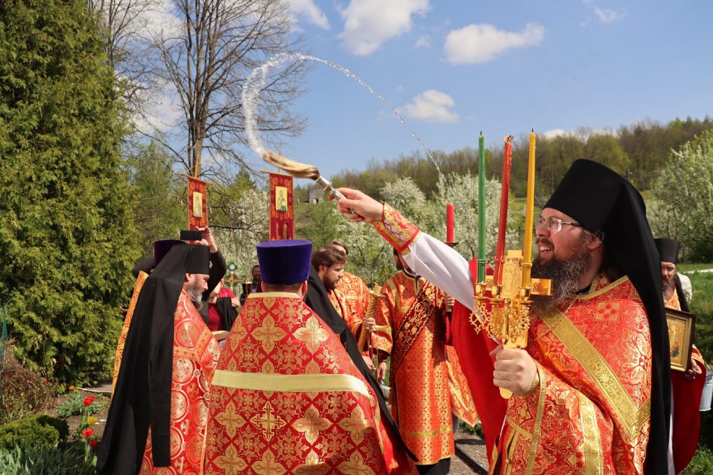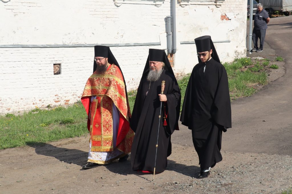 Епископ Митрофан, завершая богослужение, совершил водосвятный молебен, после чего возглавил крестный ход вокруг монастыря: под пение ирмосов и припевов пасхального канона, священнослужители и прихожане обошли обитель, восклицая торжественное приветствие «Христос Воскресе!».