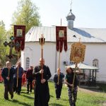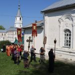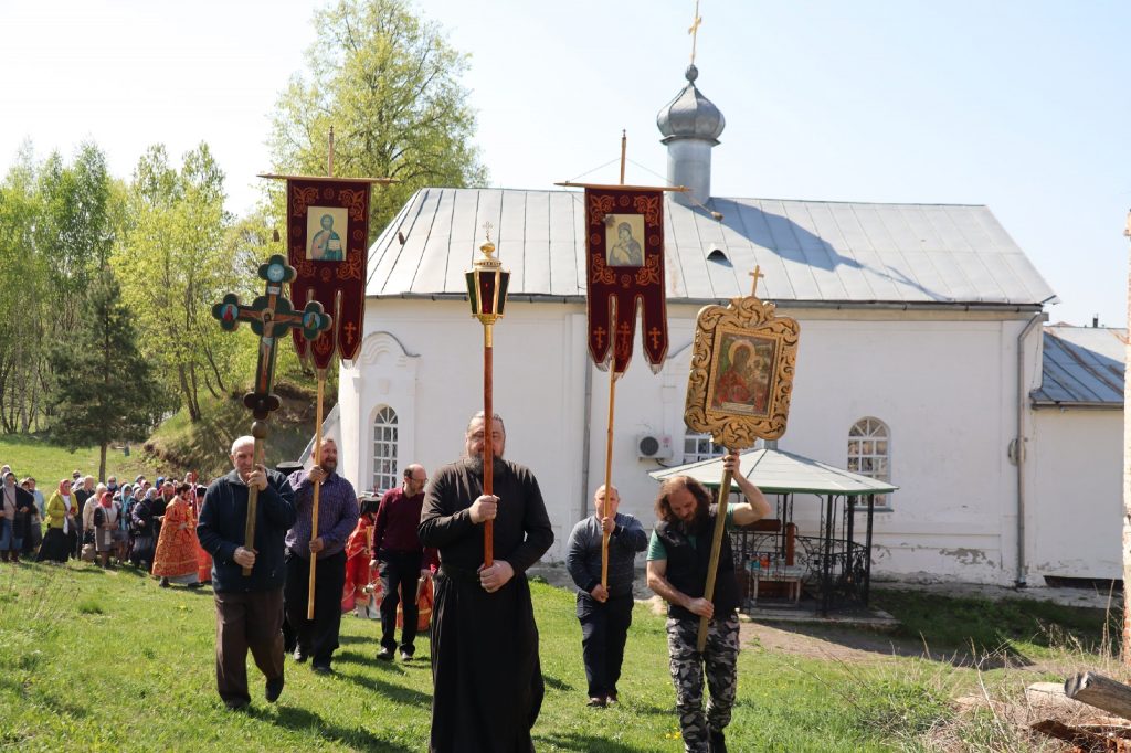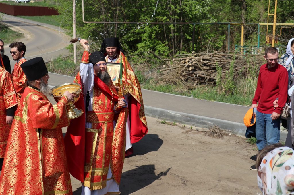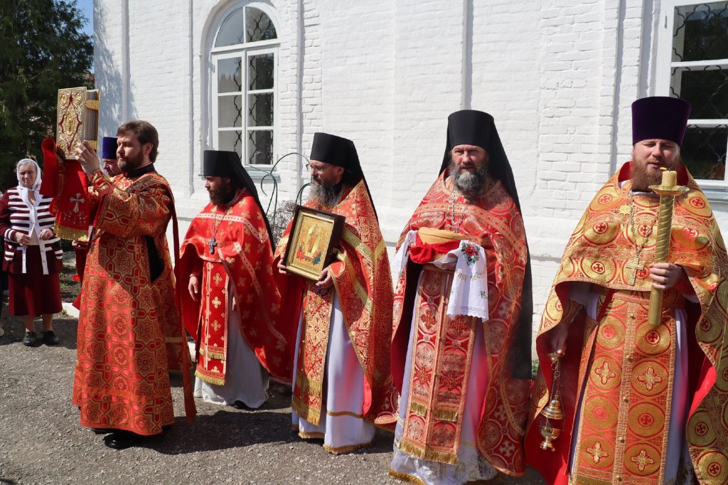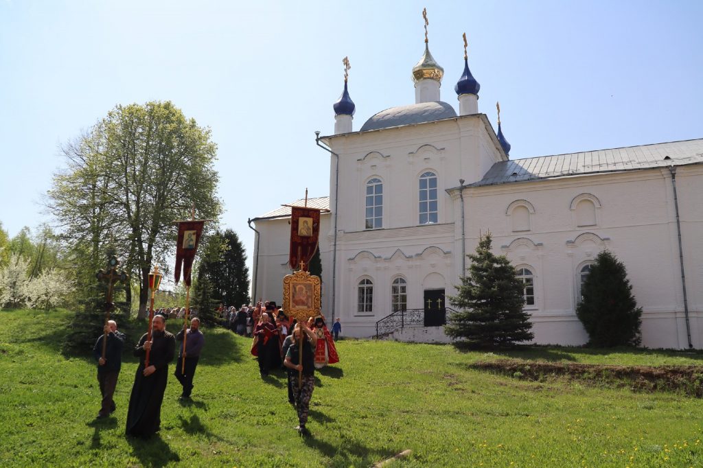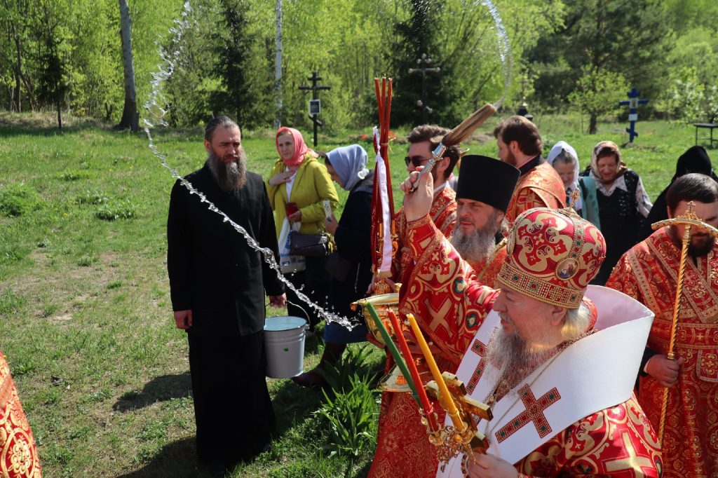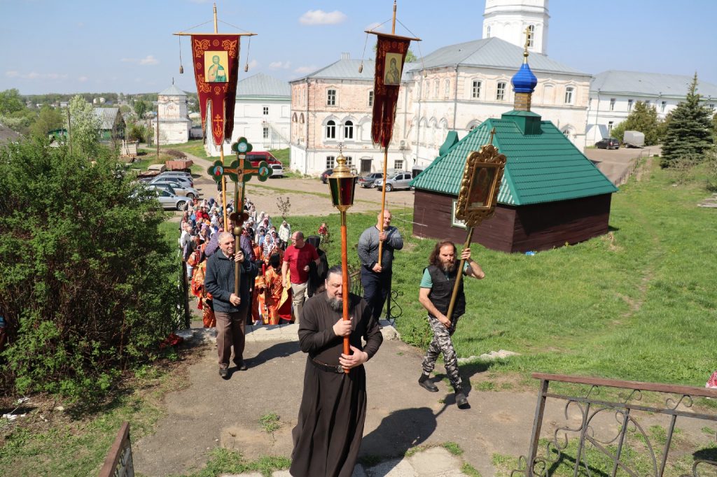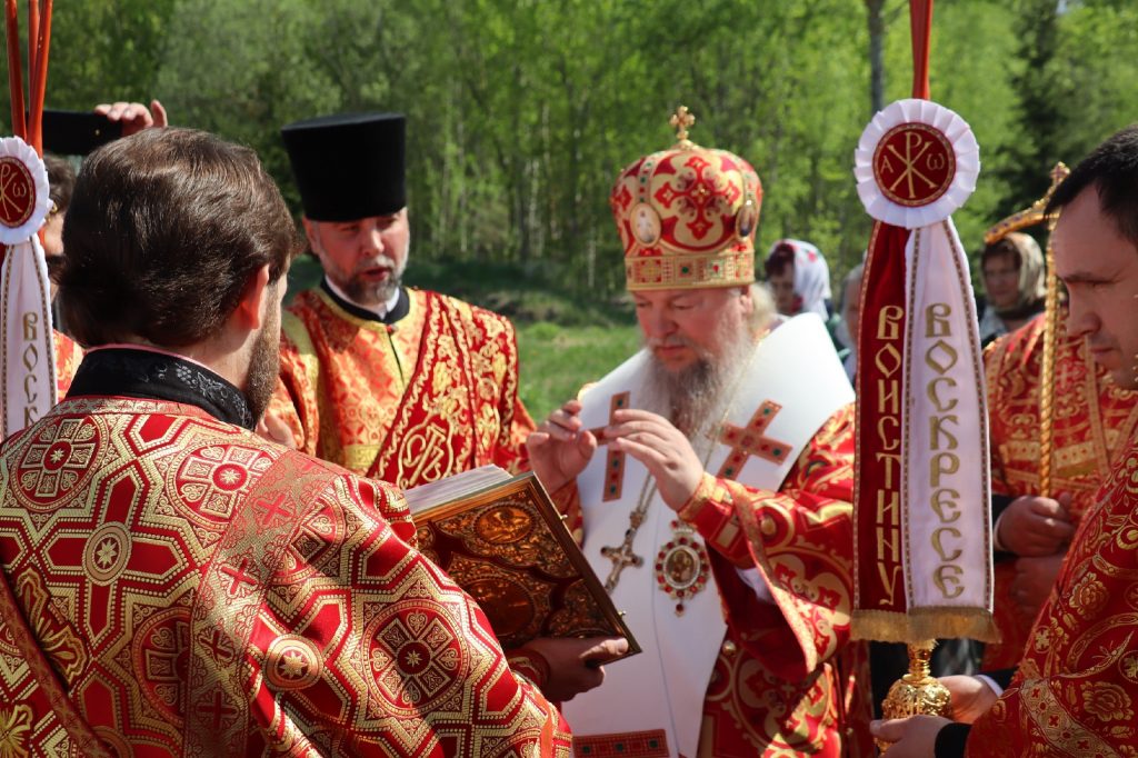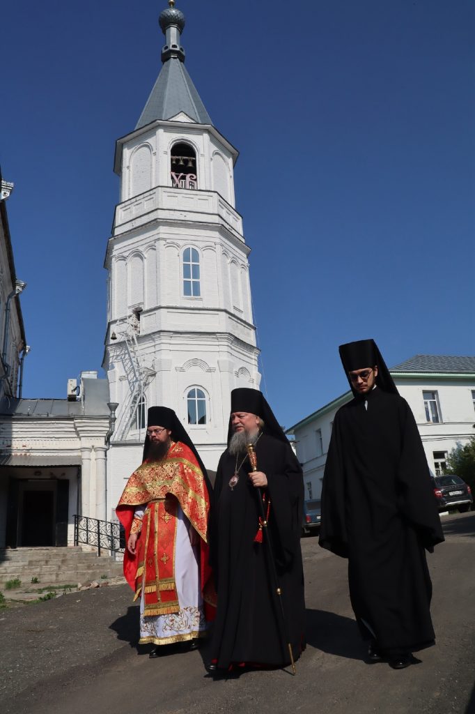 Епископ Митрофан, завершая богослужение, совершил водосвятный молебен, после чего возглавил крестный ход вокруг монастыря: под пение ирмосов и припевов пасхального канона, священнослужители и прихожане обошли обитель, восклицая торжественное приветствие «Христос Воскресе!».