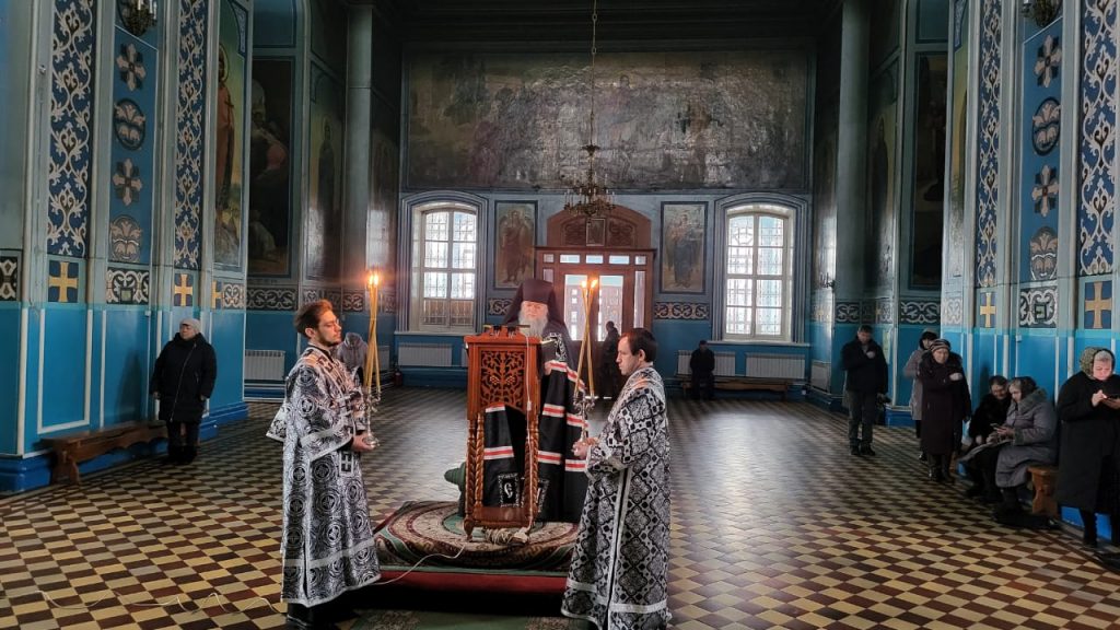 Во время великопостной утрени епископ Митрофан прочитал шестопсалмие, а также совершил чтение канона утрени.