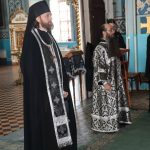 Уставное богослужение совершил иеромонах Амвросий (Макаров), врио. секретаря Епархиального Управления.