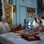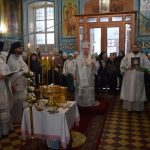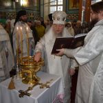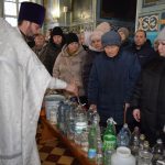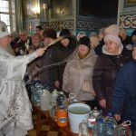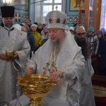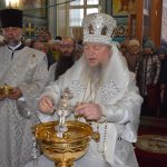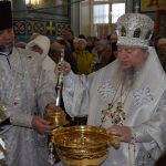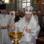 По заамвонной молитве епископ Митрофан в сослужении духовенства совершил чин великого освящения воды.