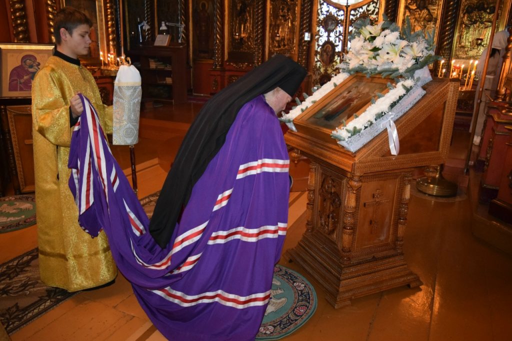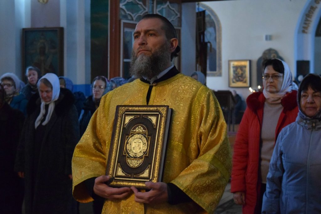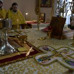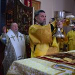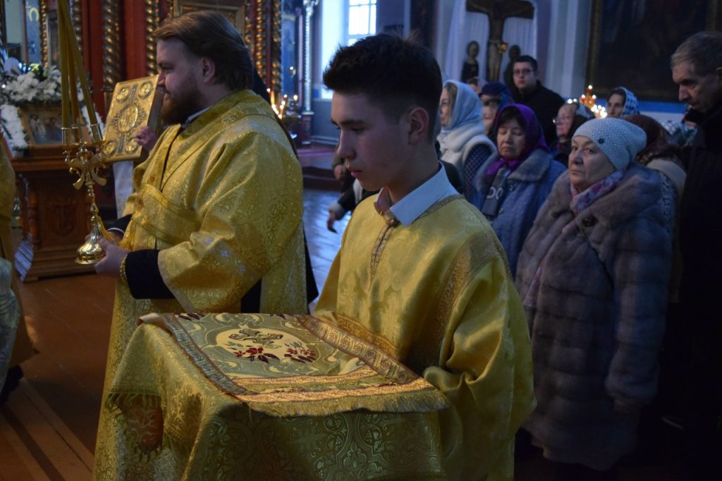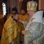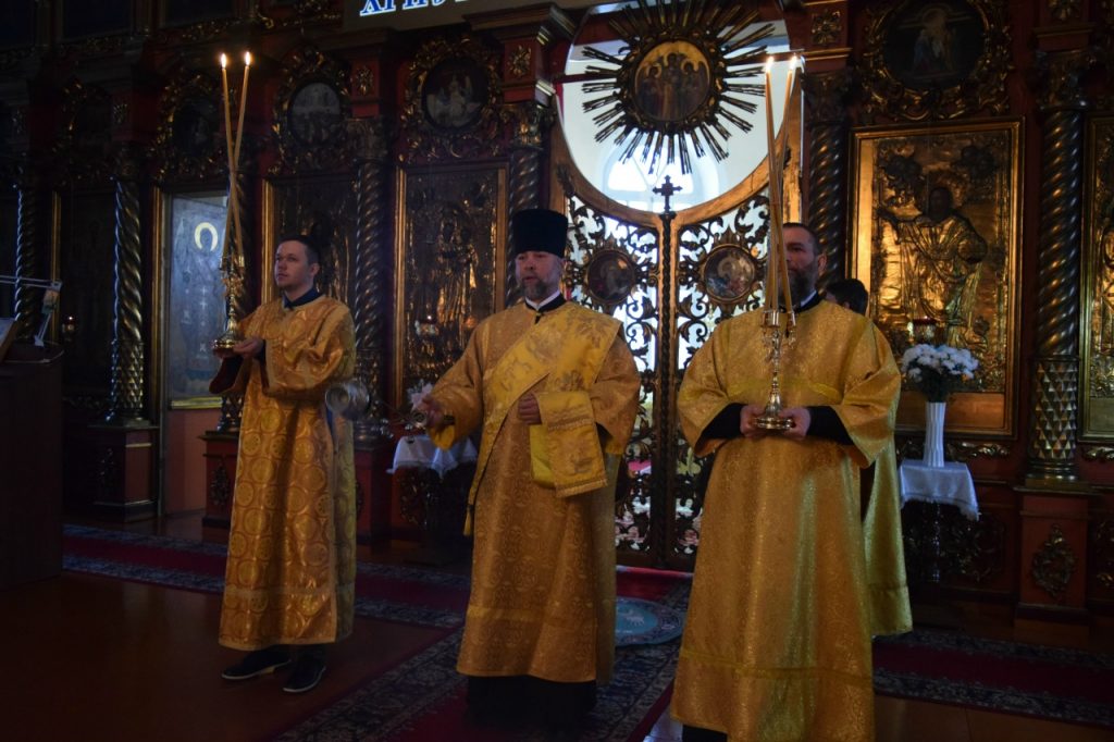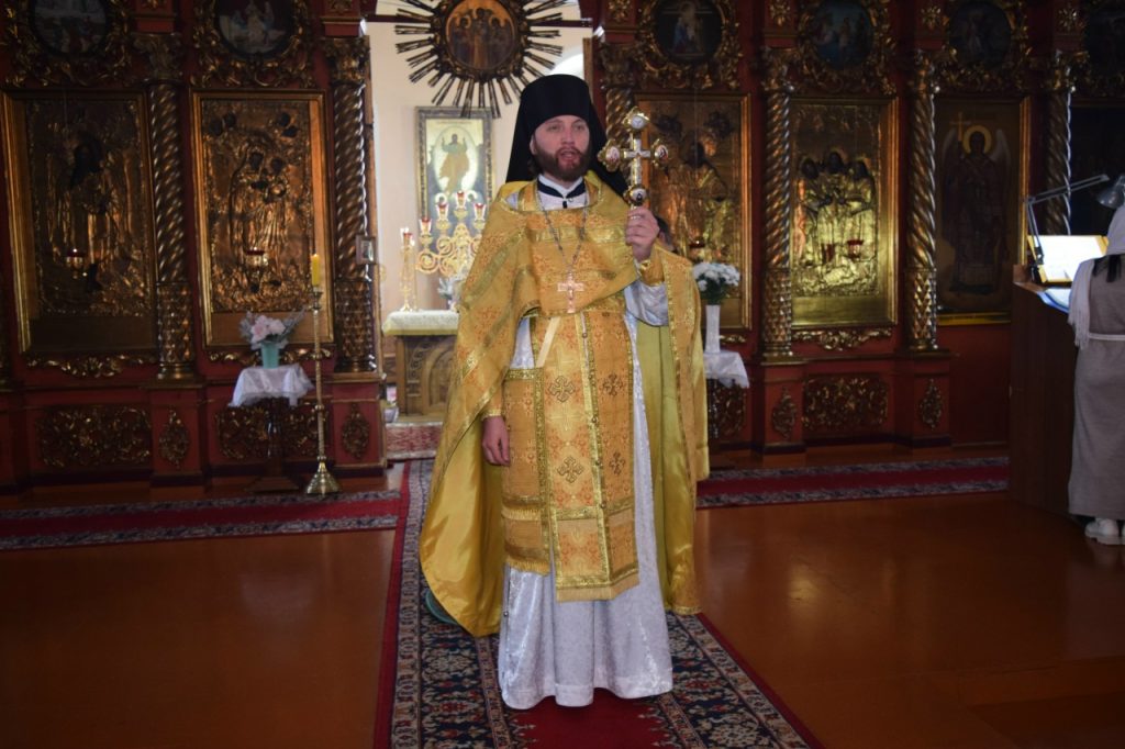 На малом входе епископ Сердобский и Спасский Митрофан за ревностное служение Святой Церкви благословил настоятеля иерея Святослава Бобко и возложил на него его первую награду – набедренник. Этот элемент богослужебного облачения священников символизирует духовный меч, то есть слово Божие.