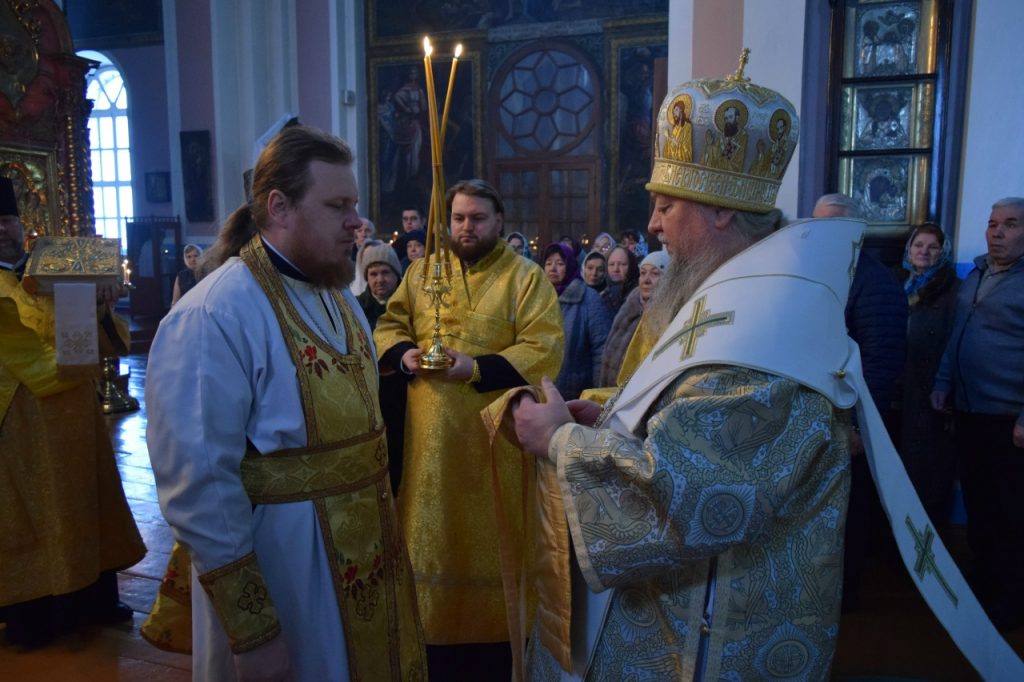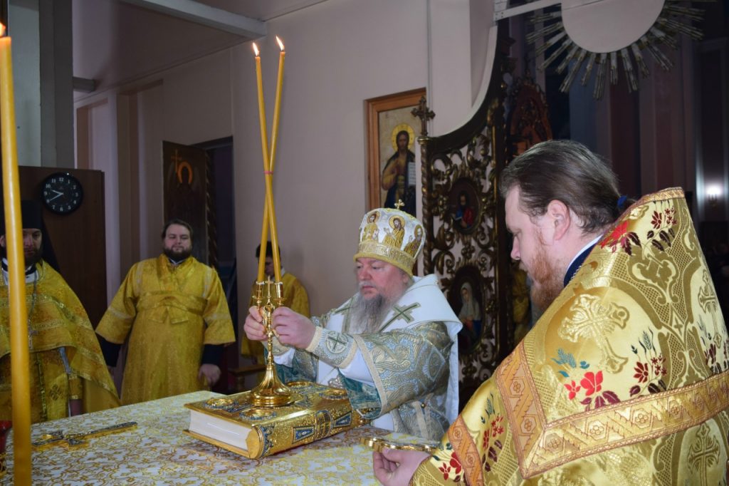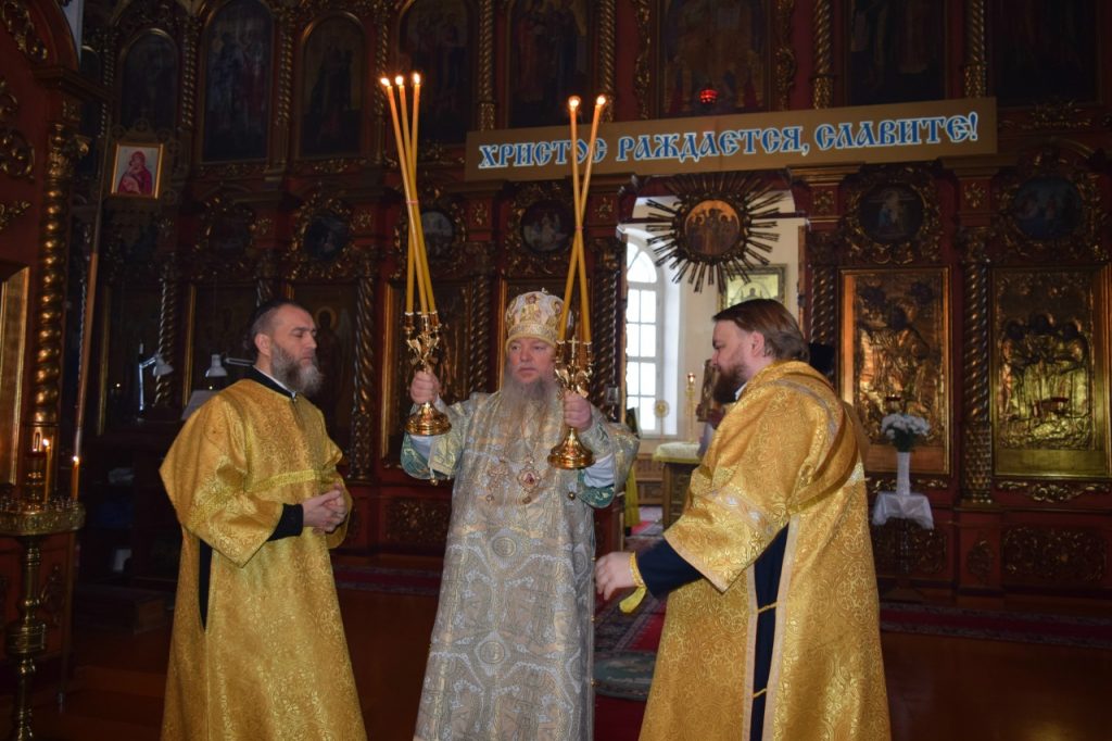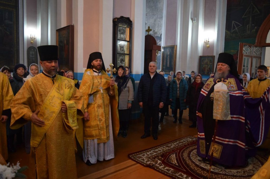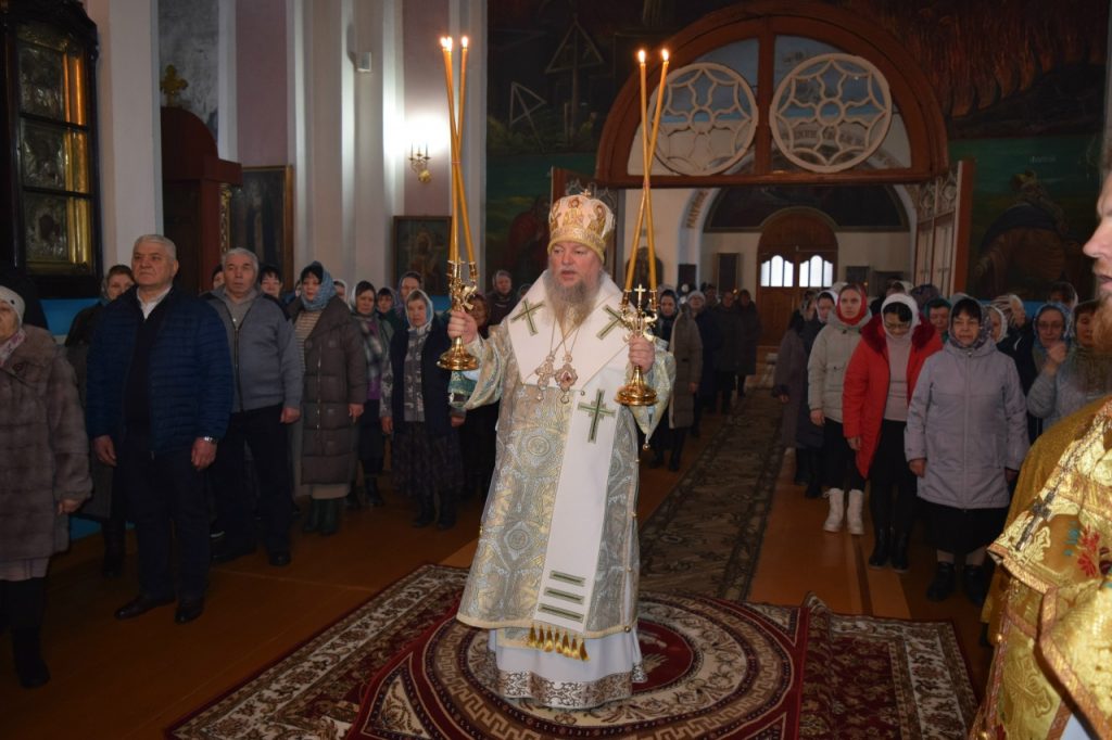 После этого Преосвященнейший епископ Митрофан поздравил верующих с днем памяти святителя Василия Великого и с праздником Обрезания Господня и обратился с архипастырским словом.