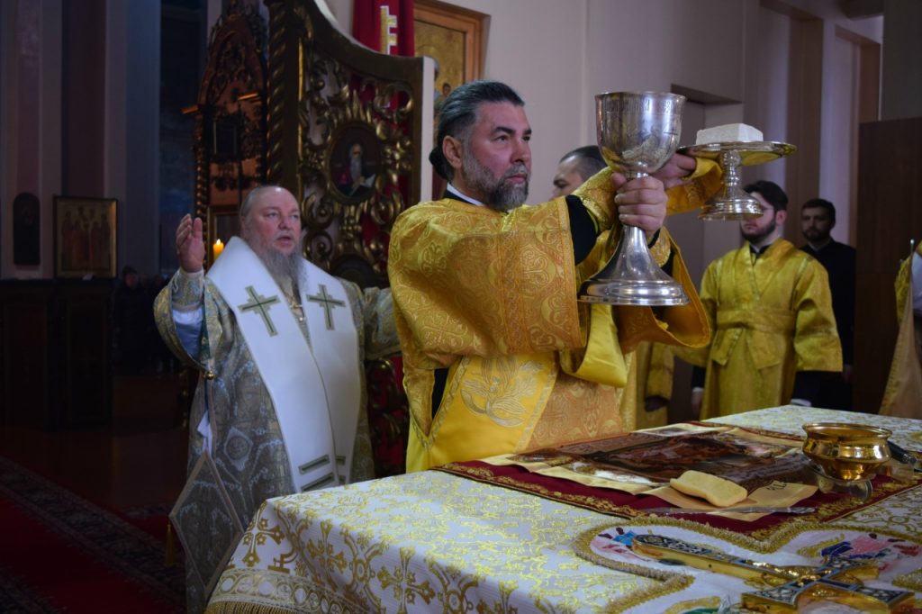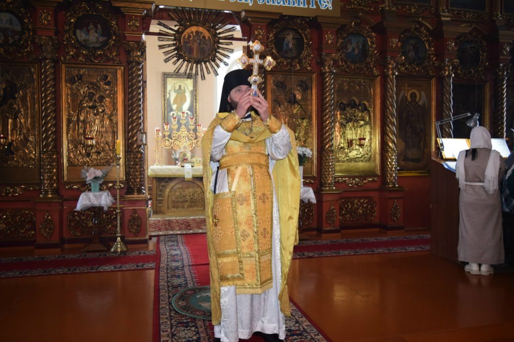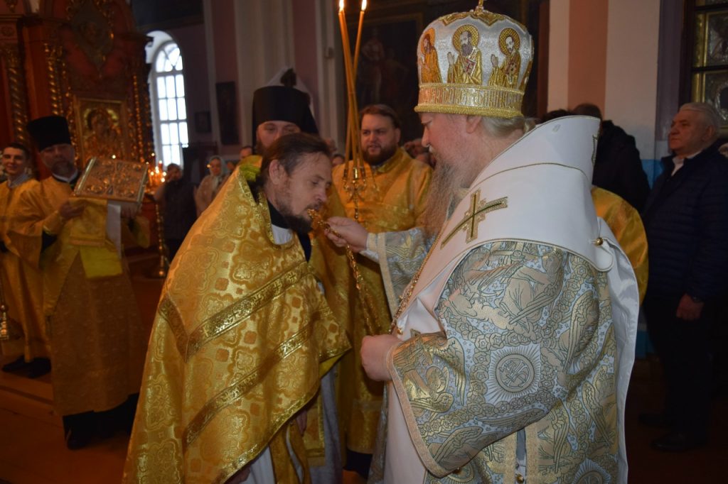 Во внимание к усердным трудам во славу Святой Церкви клирик собора Вознесения Господня иерей Георгий Кузнецов удостоен очередной архиерейской награды – права ношения Креста золотого цвета. Преосвященнейший Владыка Митрофан возложил на иерея Георгия Кузнецова наперсный крест золотого цвета.