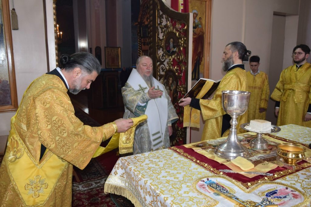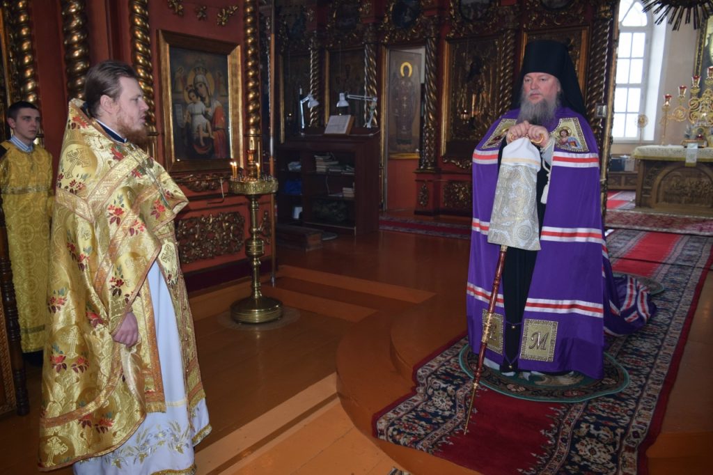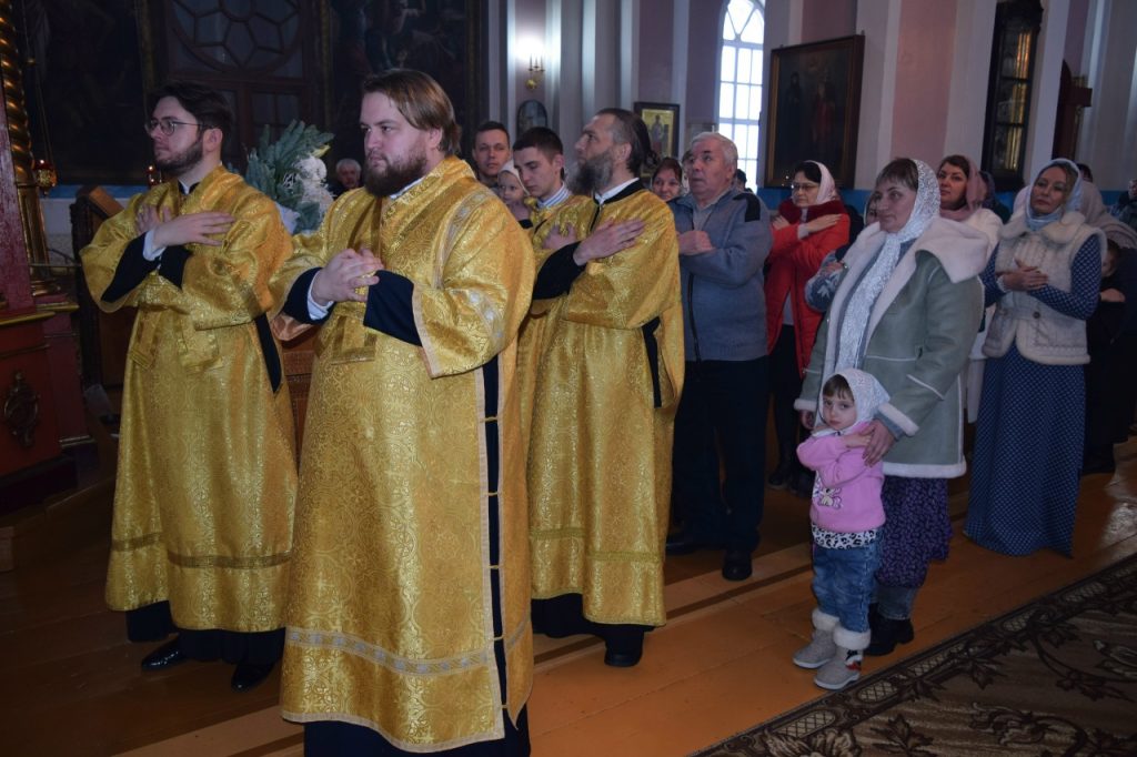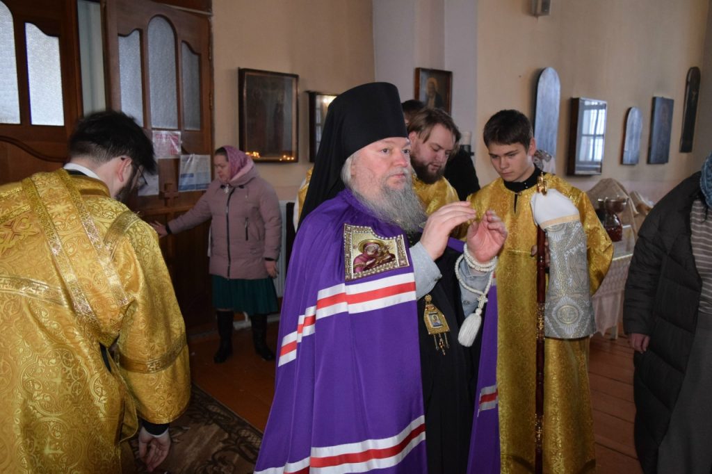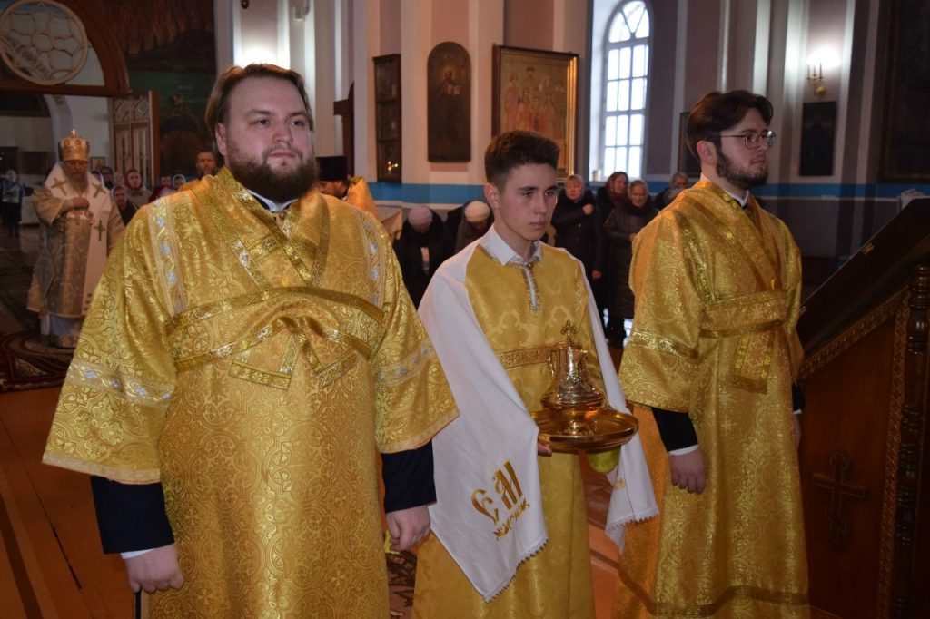 Его Преосвященству сослужили: иеромонах Амвросий (Макаров), врио. секретаря Епархиального Управления; благочинный Спасского округа, руководитель епархиального миссионерского отдела, настоятель собора Вознесения Господня г.Спасска иерей Святослав Бобко; клирики собора Вознесения Господня иерей Георгий Кузнецов и иерей Павел Куликов; клирик кафедрального собора Архангела Михаила г. Сердобска иеродиакон Иннокентий (Ганин).