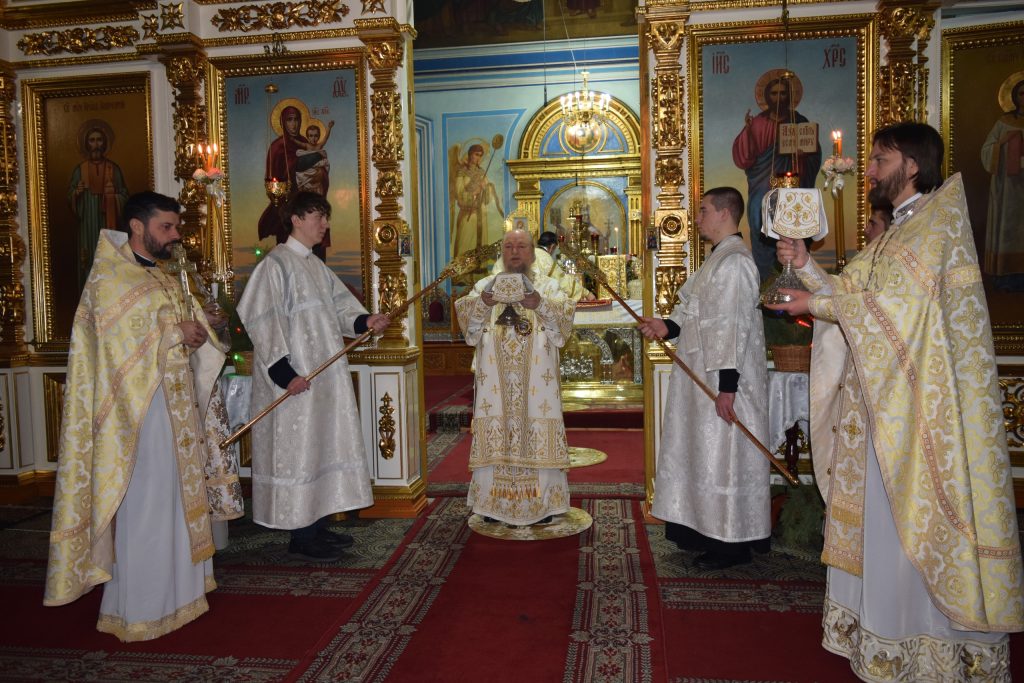 По окончании Литургии было совершено славление празднику Рождества Христова.