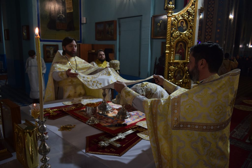Его Преосвященству сослужили: иеромонах Амвросий (Макаров), врио. секретаря Епархиального Управления; ключарь кафедрального собора Архангела Михаила г.Сердобска, епархиальный древлехранитель иерей Роман Турецких; иеродиакон Иннокентий (Ганин), диакон Владимир Эрекайкин.