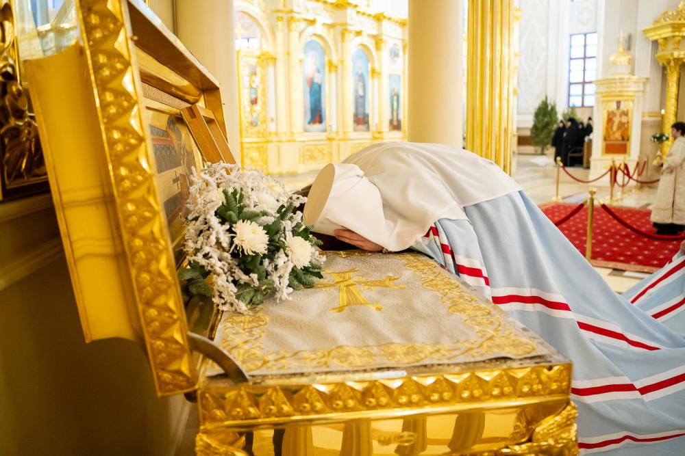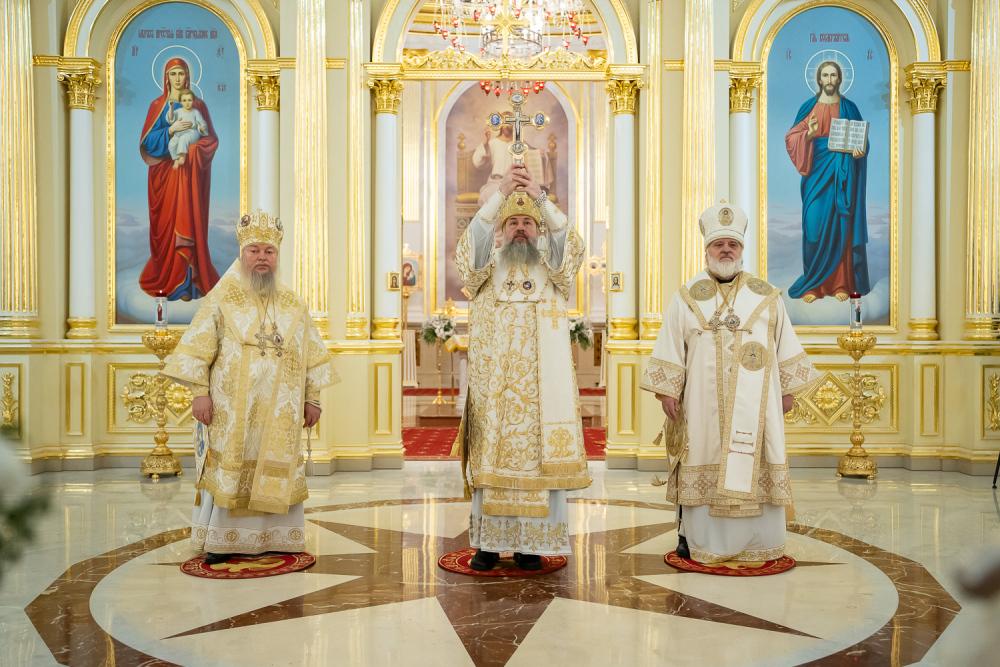 Примите, Ваше Высокопреосвященство, нашу искреннюю благодарность за те великие труды, которые Вы вместе с Вашими добрыми помощниками полагаете на благоукрашение этого собора. Мы верим: как благоукрашаются стены этого храма, так по молитвам в доме Божием благоукрашаются и души верующих людей, получая ту благодатную силу, которую Господь дарует каждому молящемуся.